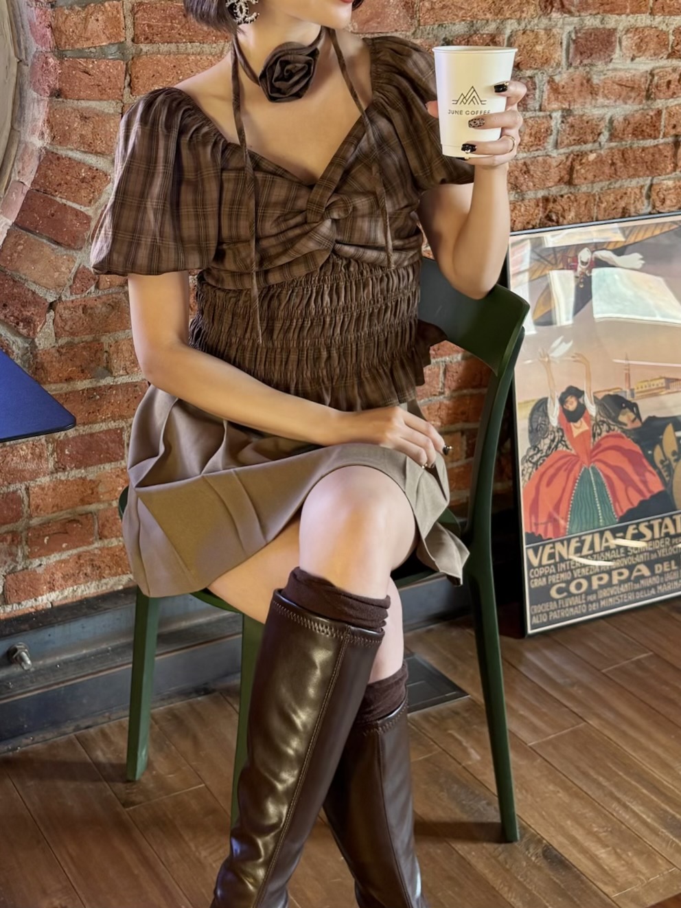 ※こちらの商品を単体で1点のみご注文頂いた場合、ネコポス配送(385円)にて発送が可能です。 ご希望の方はご注文時にメッセージ欄にネコポス希望とご記入をお願い致します。送料の金額変更をさせていただきます。ブラウンのチェックがシックなパフスリーブトップス。背中はギャザー仕様で伸縮する為綺麗に身体にフィットします。オフショルダーとしても着用可能。フラワーのチョーカーがセットになった遊び心溢れる1枚。STAFF:158cm【サイズ】(平置き採寸/約)着丈47cm 身幅35cm 袖丈23cm【素材】ポリエステル100% ■クロネコ代金後払いをご利用のお客様■商品到着後に請求書(払込用紙)が到着します。14日以内にお支払いをお願いします。全国の主要なコンビニで、請求書をレジに持っていくだけでお支払いが可能です。全国の郵便局でも同じ請求書でお支払いできます。※ご請求書が圧着ハガキタイプの場合、郵便局でのお支払いはできません。※弊社の銀行口座宛にお振込頂くものでは御座いません。ご注意下さい。