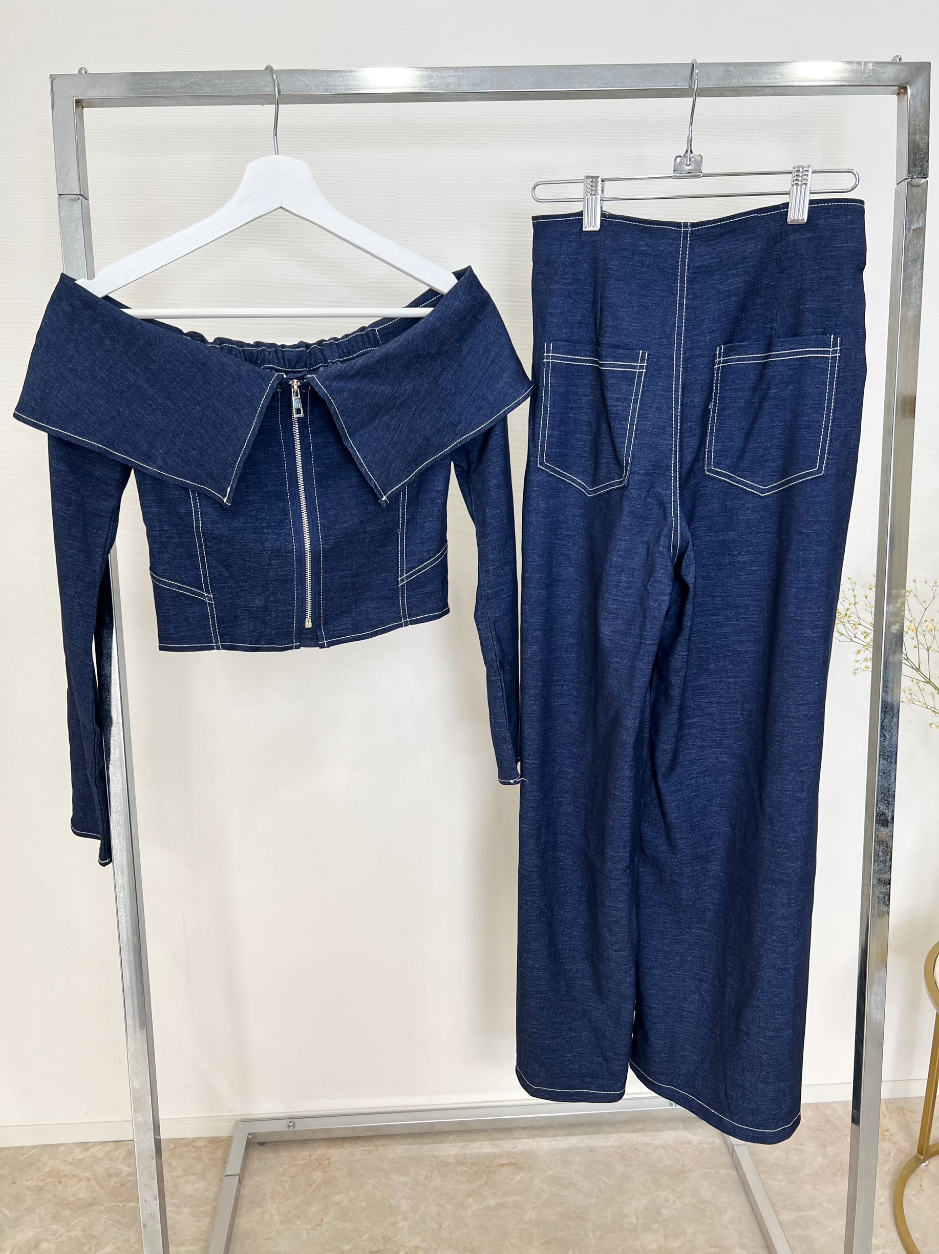 個性的なデザインが目を引くこと間違いなしのデニムセットアップ。