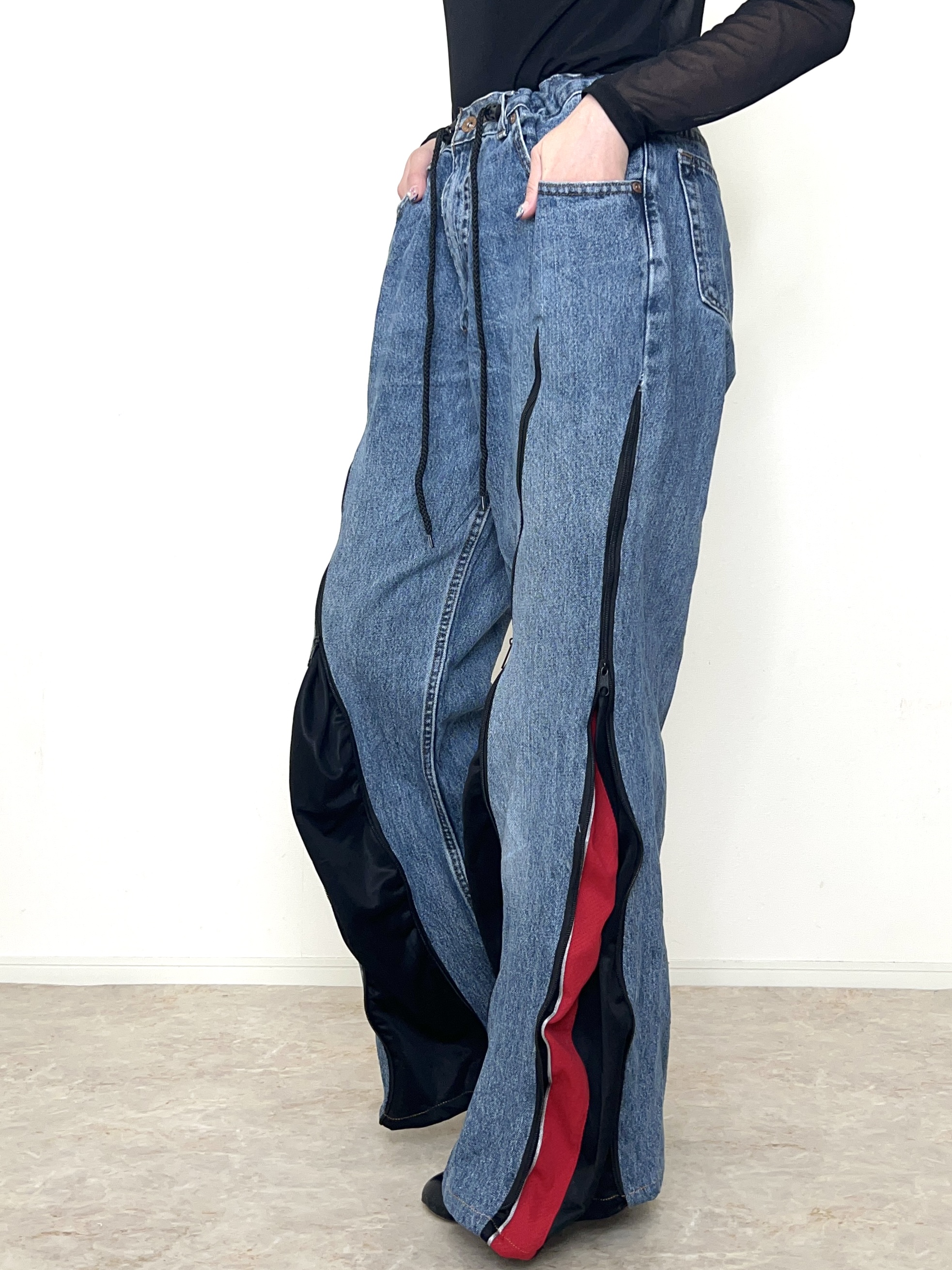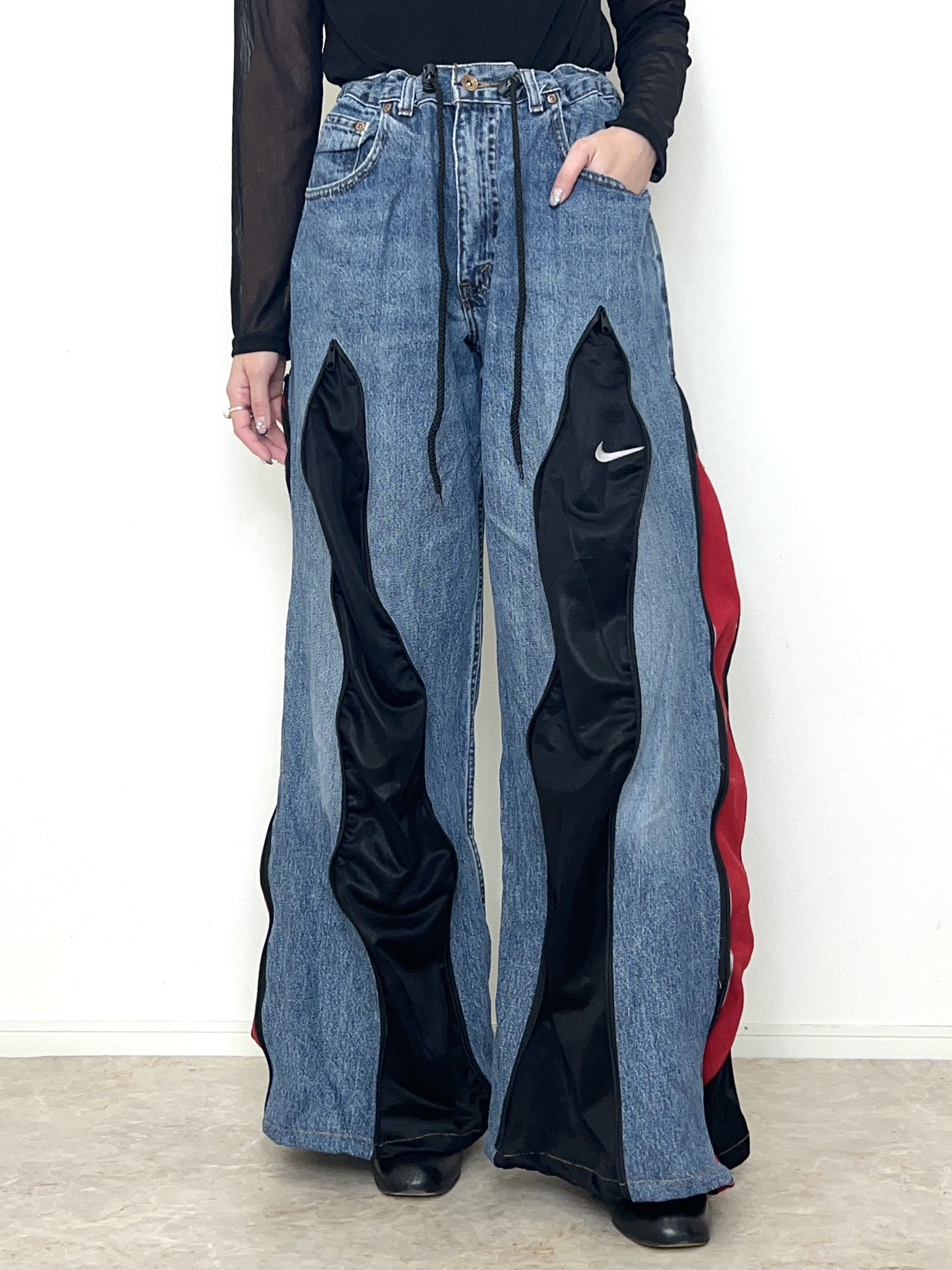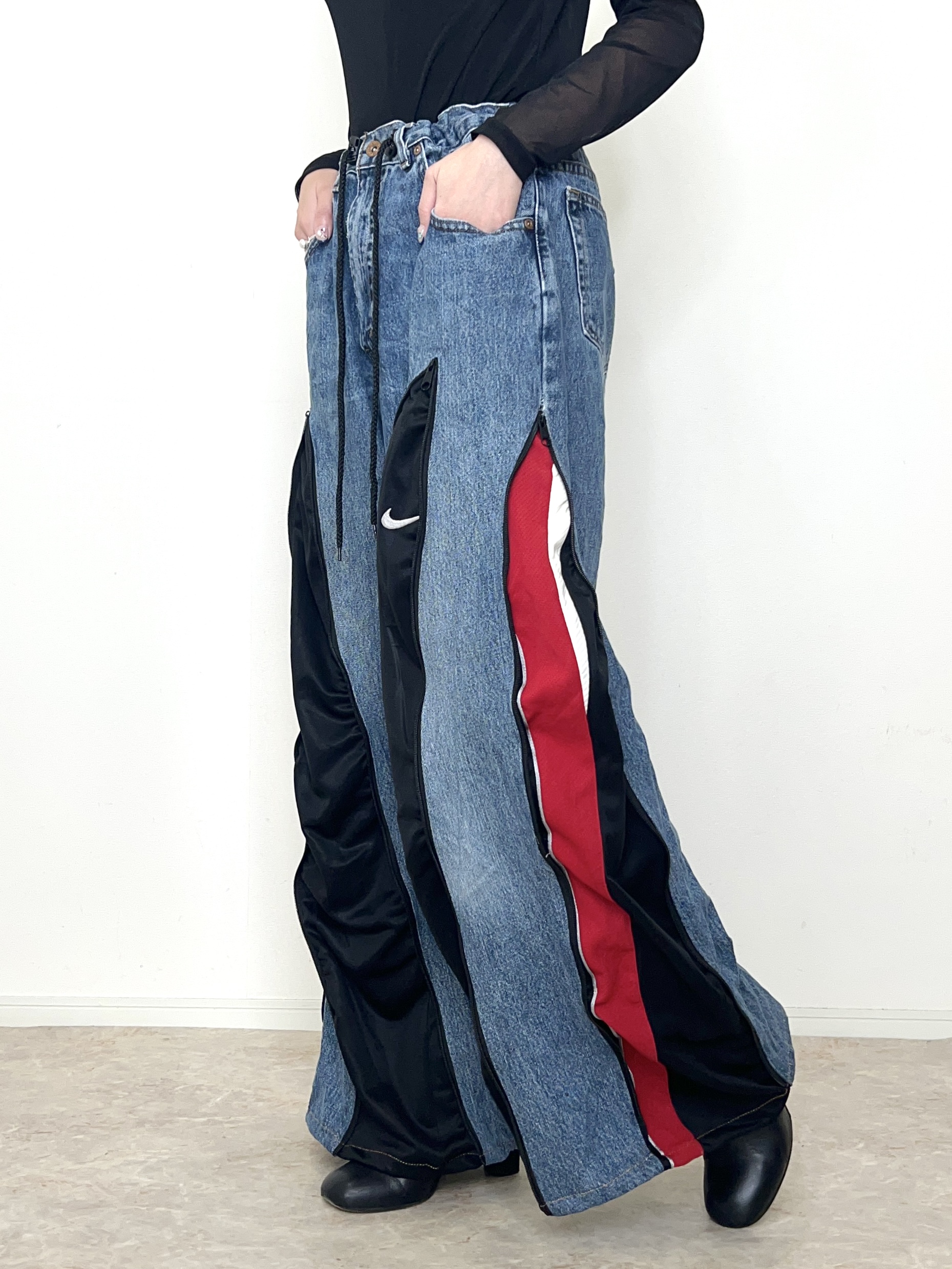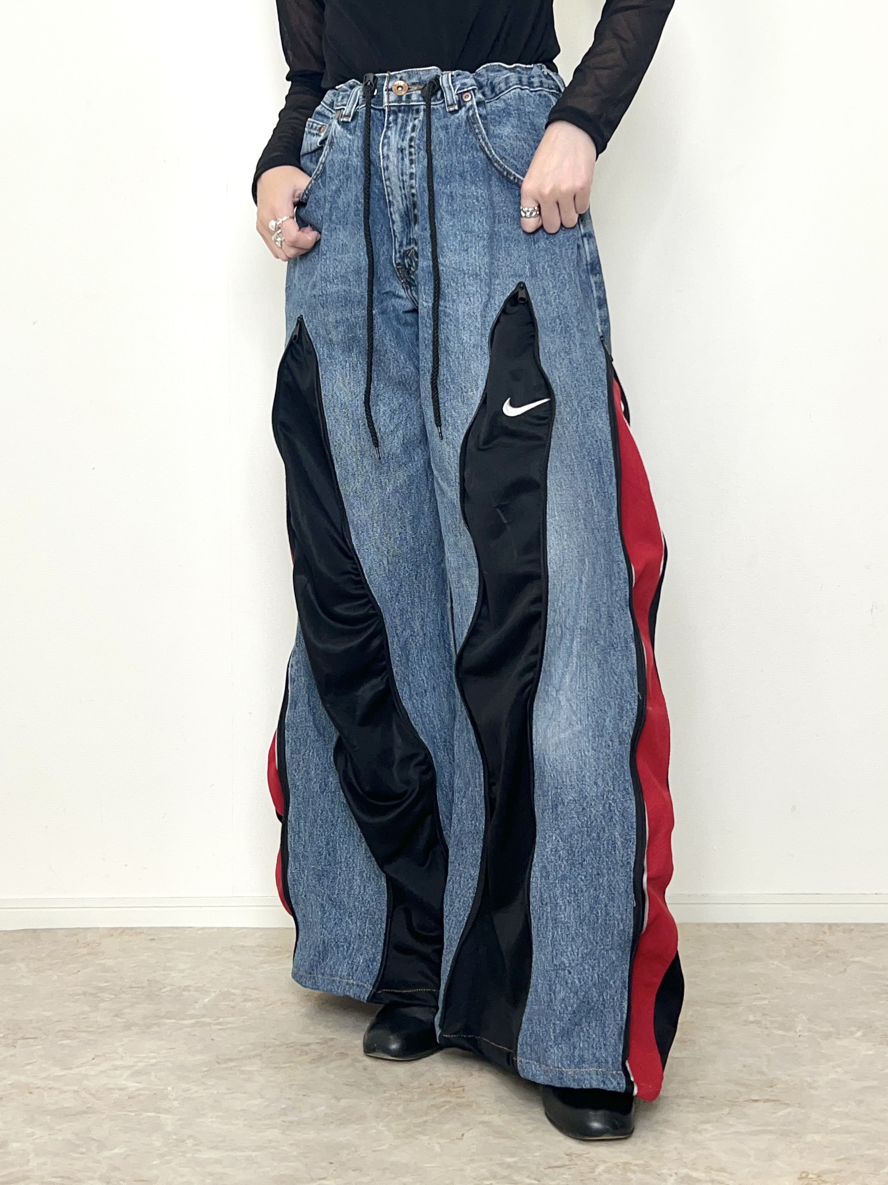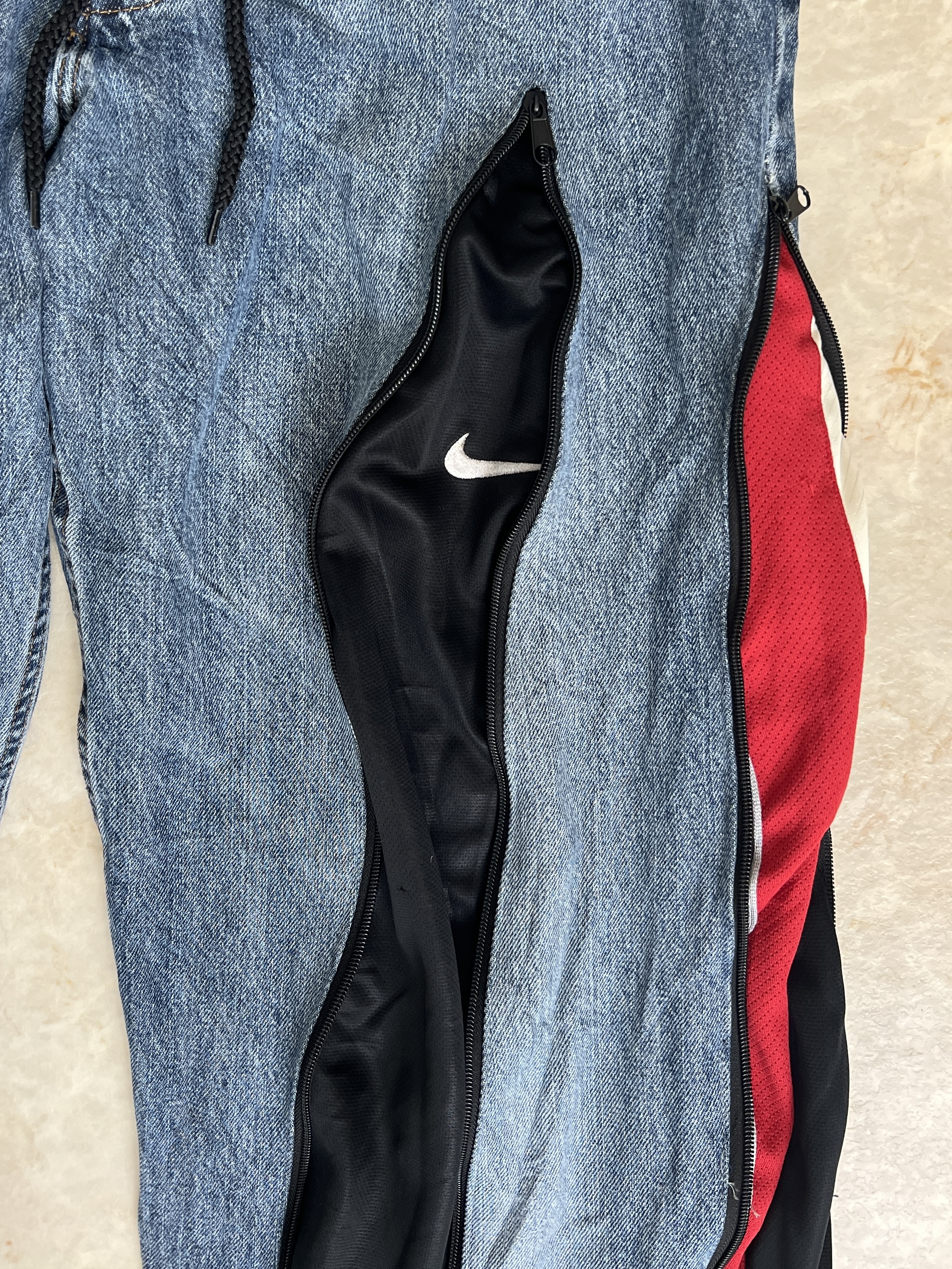 米大手百貨店チェーンJ.C.PennyのプライベートブランドARIZONA JEAN COMPANYのデニムにNIKEのジャージを組合せたリメイクデニム。