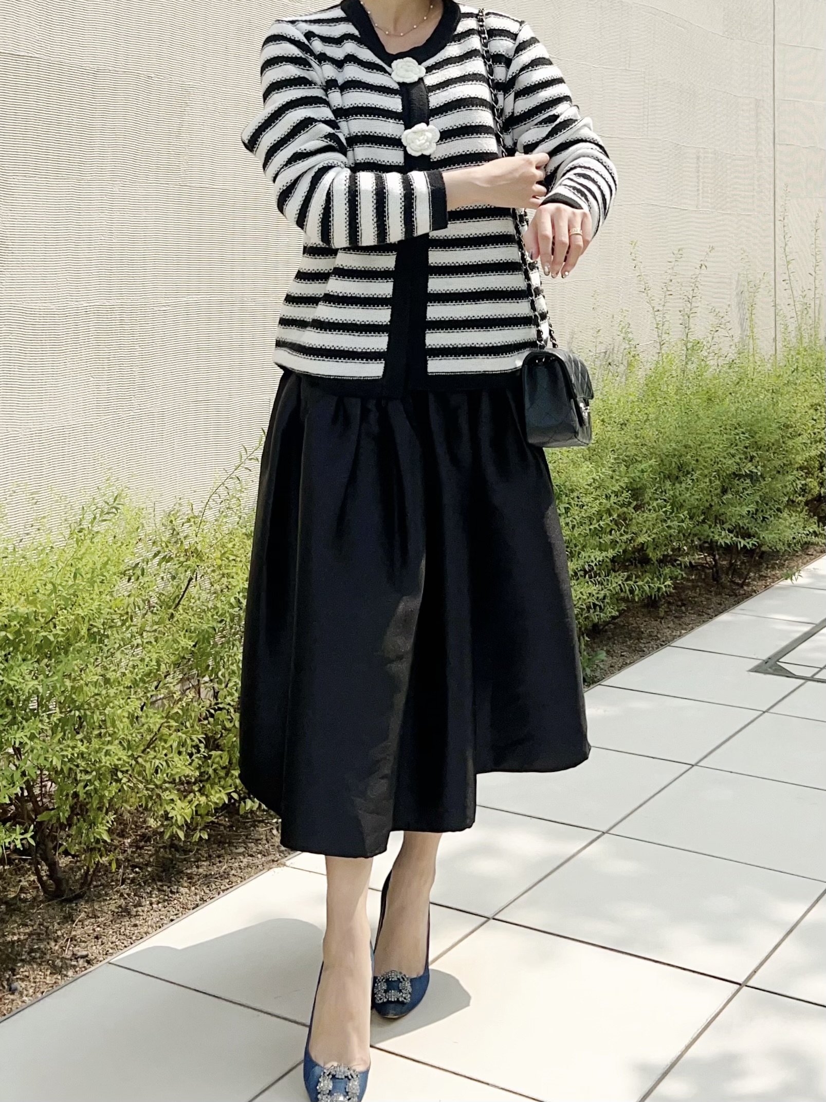 立体的なフラワーが目を引くボーダーカーディガン。カジュアルにはもちろん、フェミニンなスタイリングにもマッチ。ゆったりとしたサイズ感でコンサバ感を抑えた1枚です。フロントを開けても閉じても素敵に決まります。スタイリングしているスカートとパンツも発売中です♪▼【50%OFF】Volume flare skirt▼Frill biker shorts(BLK/WHT)STAFF:158cm【サイズ】(平置き採寸/約)着丈59cm 肩幅44cm 身幅55cm 袖丈65cm【素材】ポリエステル100% ■クロネコ代金後払いをご利用のお客様■商品到着後に請求書(払込用紙)が到着します。14日以内にお支払いをお願いします。全国の主要なコンビニで、請求書をレジに持っていくだけでお支払いが可能です。全国の郵便局でも同じ請求書でお支払いできます。※ご請求書が圧着ハガキタイプの場合、郵便局でのお支払いはできません。※弊社の銀行口座宛にお振込頂くものでは御座いません。ご注意下さい。