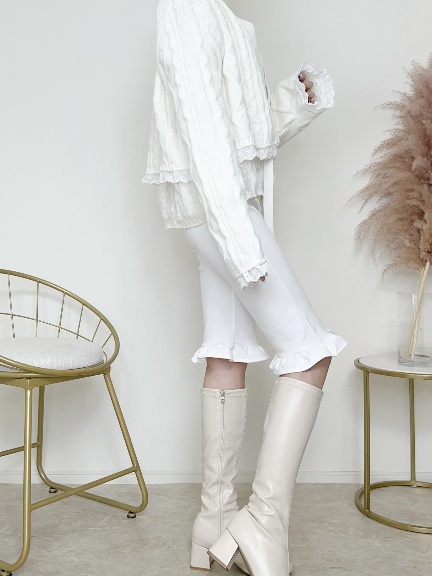 女心くすぐるコットンフリルが裾と袖口にあしらわれたカーディガン。