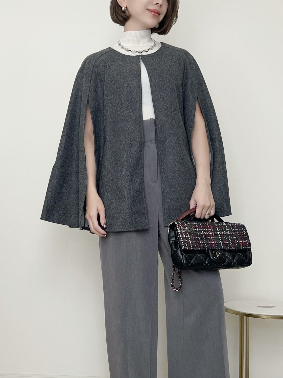 上品でエレガントな雰囲気漂うケープジャケット。
