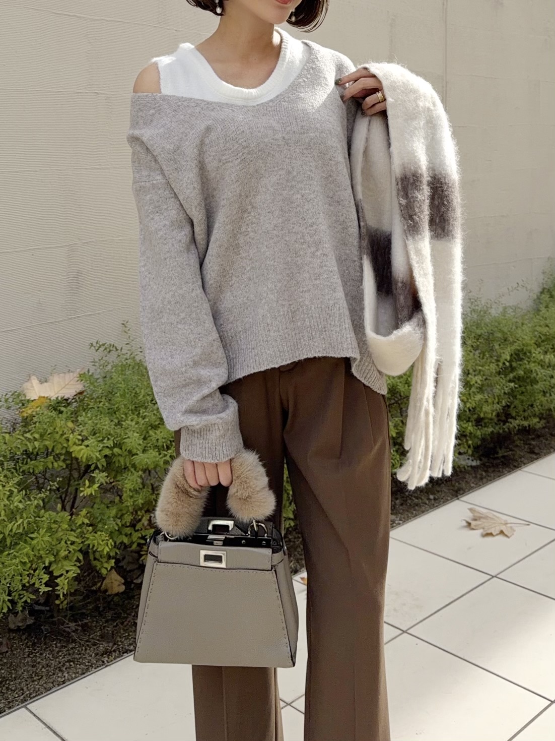 ホワイトのニットタンクとVネックのニットがセットになった1枚。ニットとタンクは個別にも着用可能な2way。シンプルながらも遊び心のあるディティールがポイントです。グレーとベージュの2カラー展開。チクチクしない快適な着心地。身体のラインをカバーするシルエットも◎ずらして肩を見せる着方もお勧めです。STAFF:158cm【サイズ】(平置き採寸/約)タンク/着丈50cm 身幅46cm Vネックニット/着丈59cm 身幅54cm 袖丈48cm【素材】ポリエステル50%,アクリル50% ■クロネコ代金後払いをご利用のお客様■商品到着後に請求書(払込用紙)が到着します。14日以内にお支払いをお願いします。全国の主要なコンビニで、請求書をレジに持っていくだけでお支払いが可能です。全国の郵便局でも同じ請求書でお支払いできます。※ご請求書が圧着ハガキタイプの場合、郵便局でのお支払いはできません。※弊社の銀行口座宛にお振込頂くものでは御座いません。ご注意下さい。