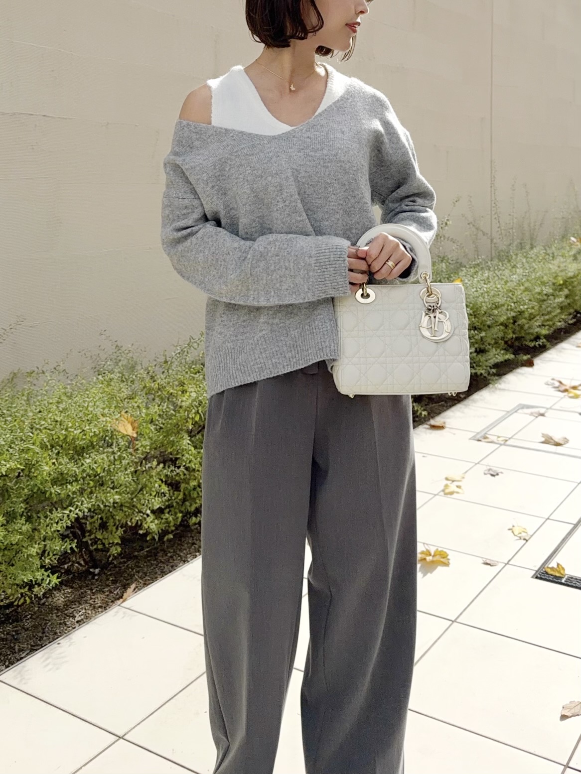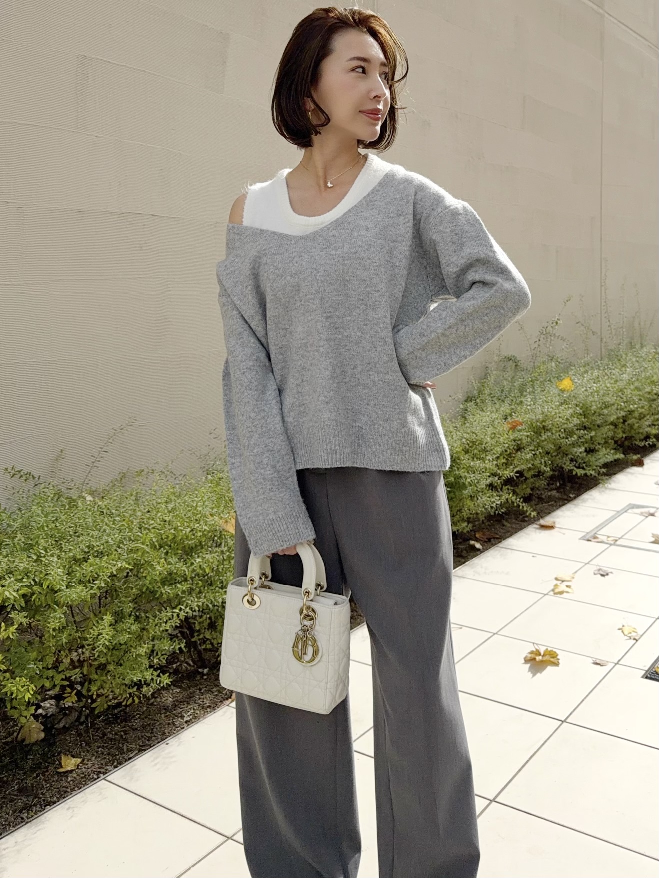 ホワイトのニットタンクとVネックのニットがセットになった1枚。