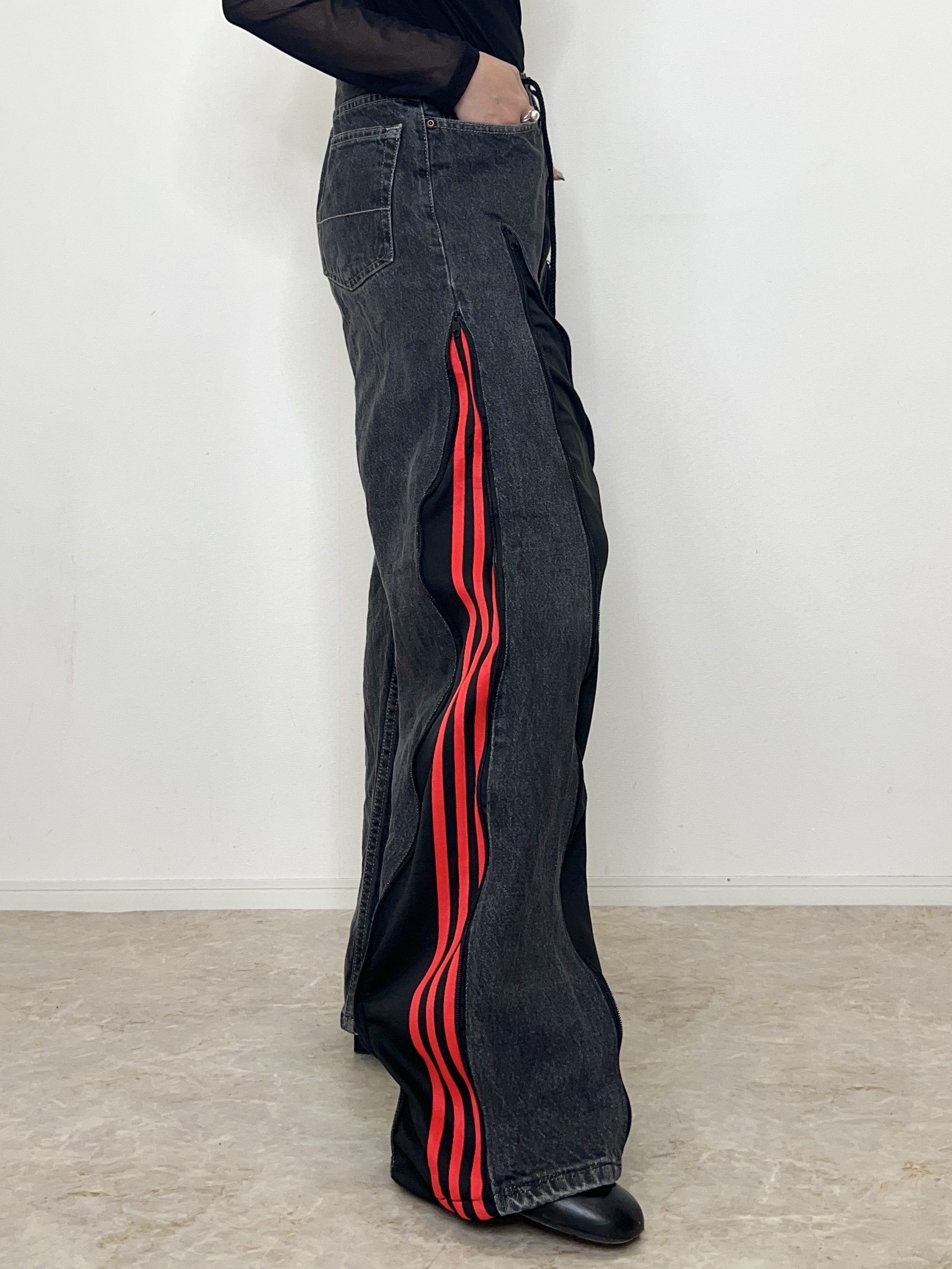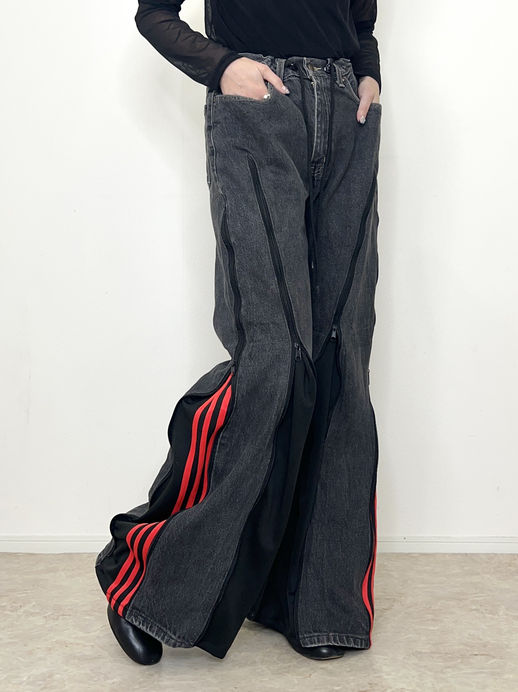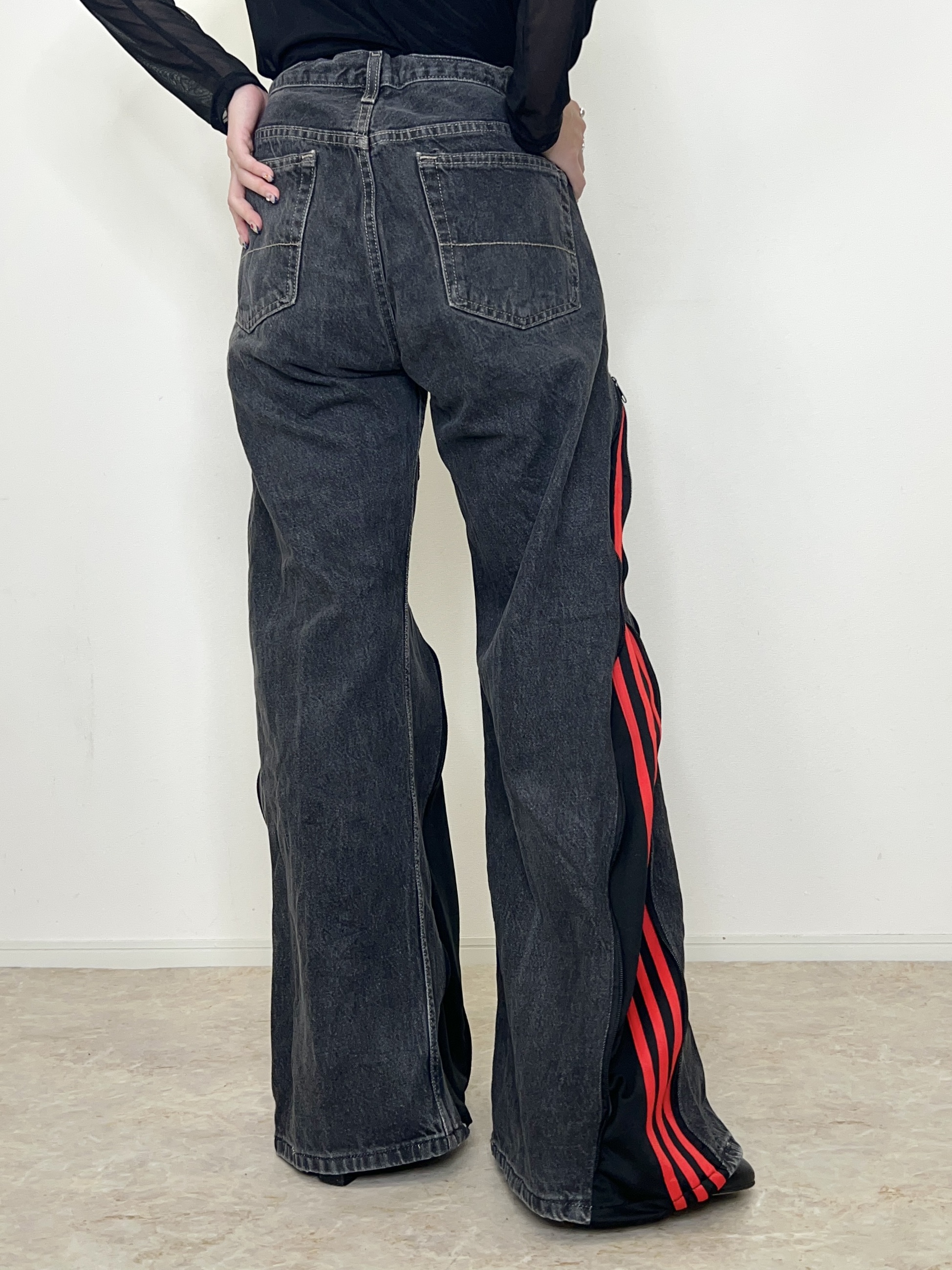 ブラックデニムにadidasのジャージを組合せたリメイクデニム。
