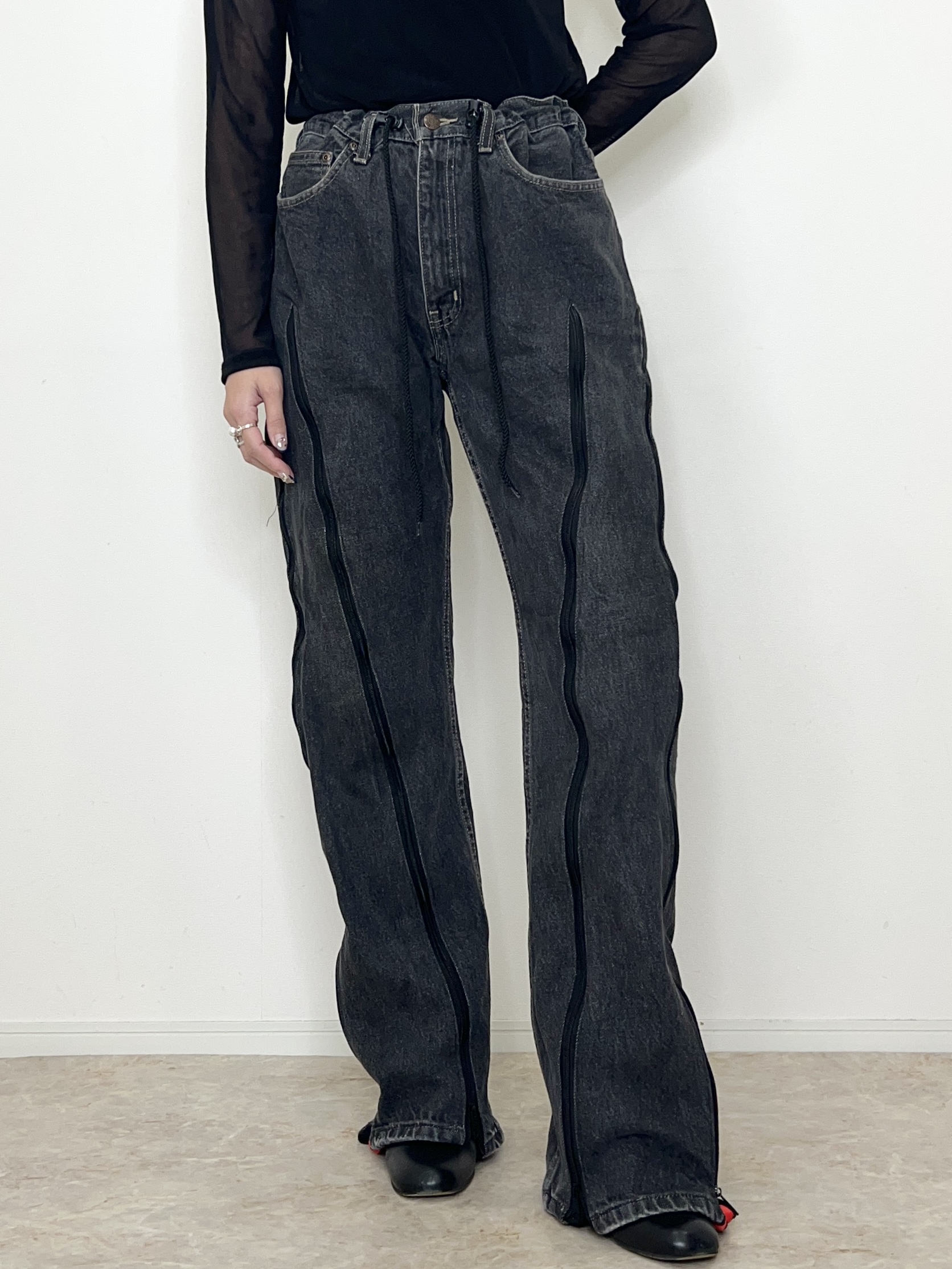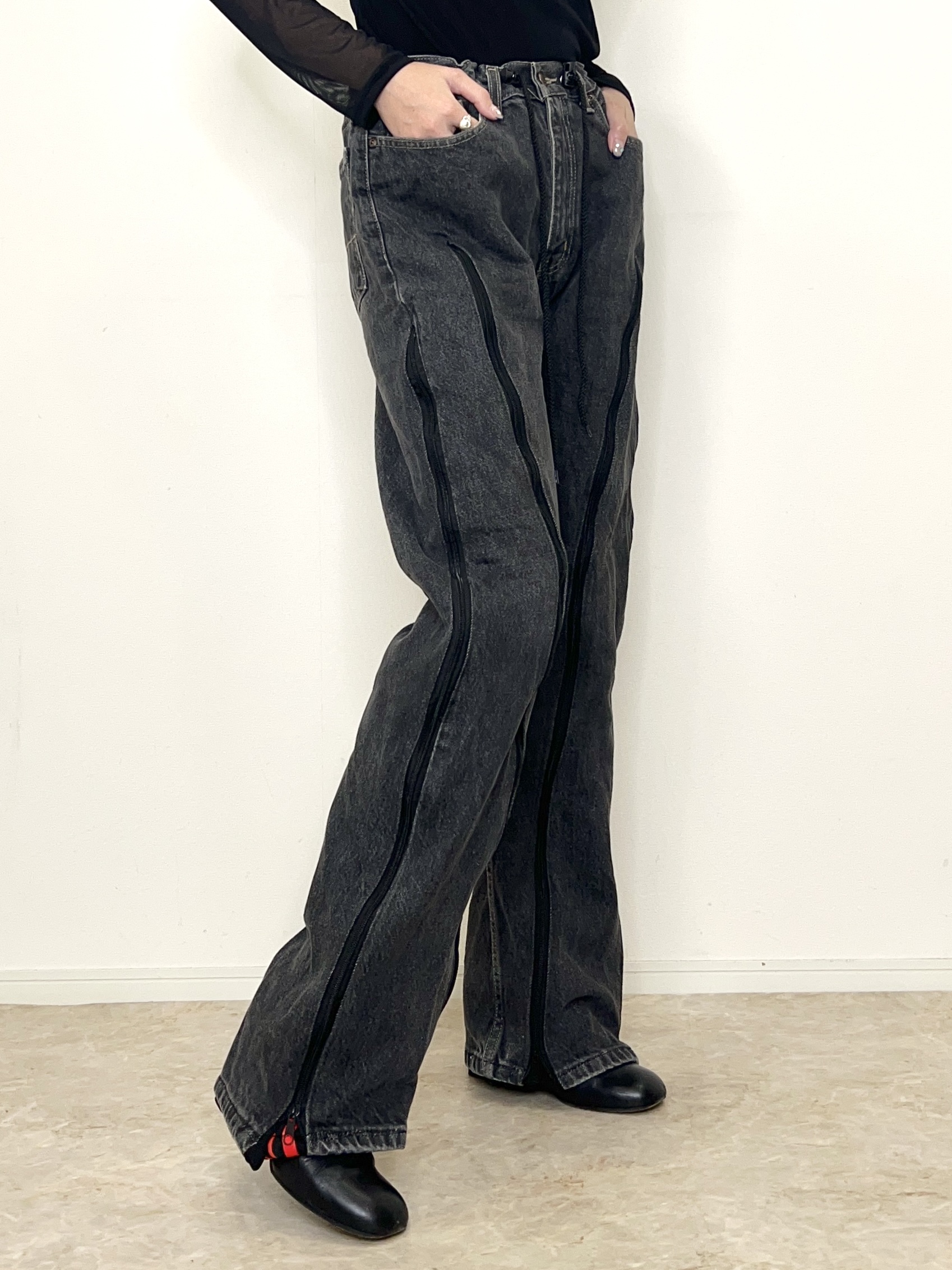 ファスナーの下げ具合でシルエットを変えて履いて頂けます。