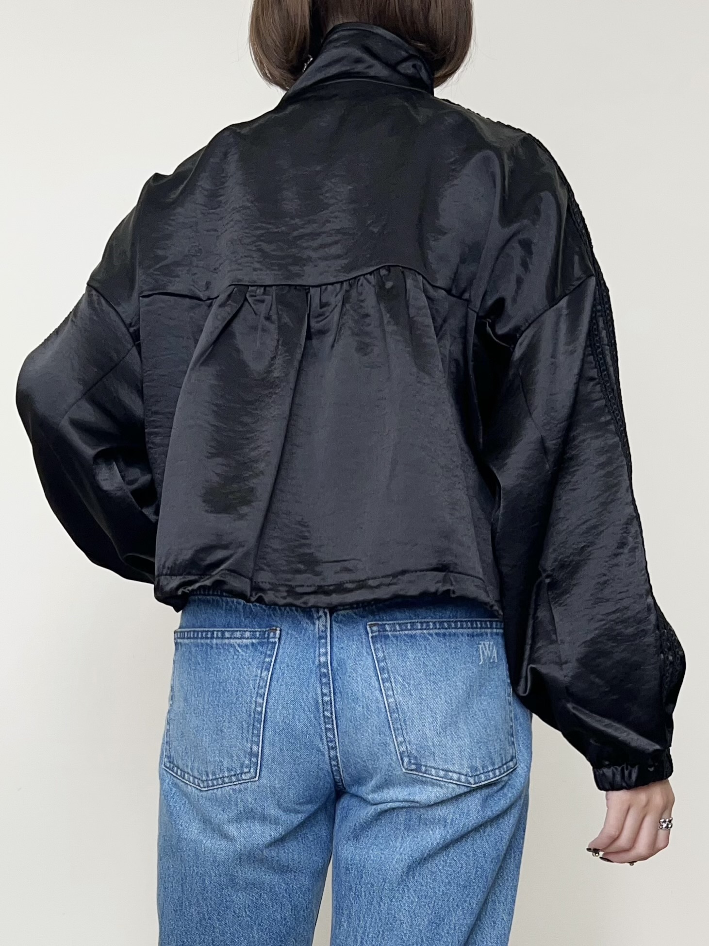 カジュアルな中にも上品でエレガントな雰囲気が漂うフリルブルゾン。ゆるっとシルエットで体型カバーも叶えてくれる一着です。光沢のあるとろみ素材で高級感をプラス。アーム部分にもゆとりがある為肉厚なトップスの上にもさらっと羽織れます。カラーはシックでこなれ感を演出するブラック。サイドのドローコードを絞ってシルエットを変えられます。 STAFF:158cm【サイズ】(平置き採寸)着丈50cm 肩幅62cm 身幅63cm 袖丈45cm【素材】ポリエステル100%■クロネコ代金後払いをご利用のお客様■商品到着後に請求書(払込用紙)が到着します。14日以内にお支払いをお願いします。全国の主要なコンビニで、請求書をレジに持っていくだけでお支払いが可能です。全国の郵便局でも同じ請求書でお支払いできます。※ご請求書が圧着ハガキタイプの場合、郵便局でのお支払いはできません。※弊社の銀行口座宛にお振込頂くものでは御座いません。ご注意下さい。