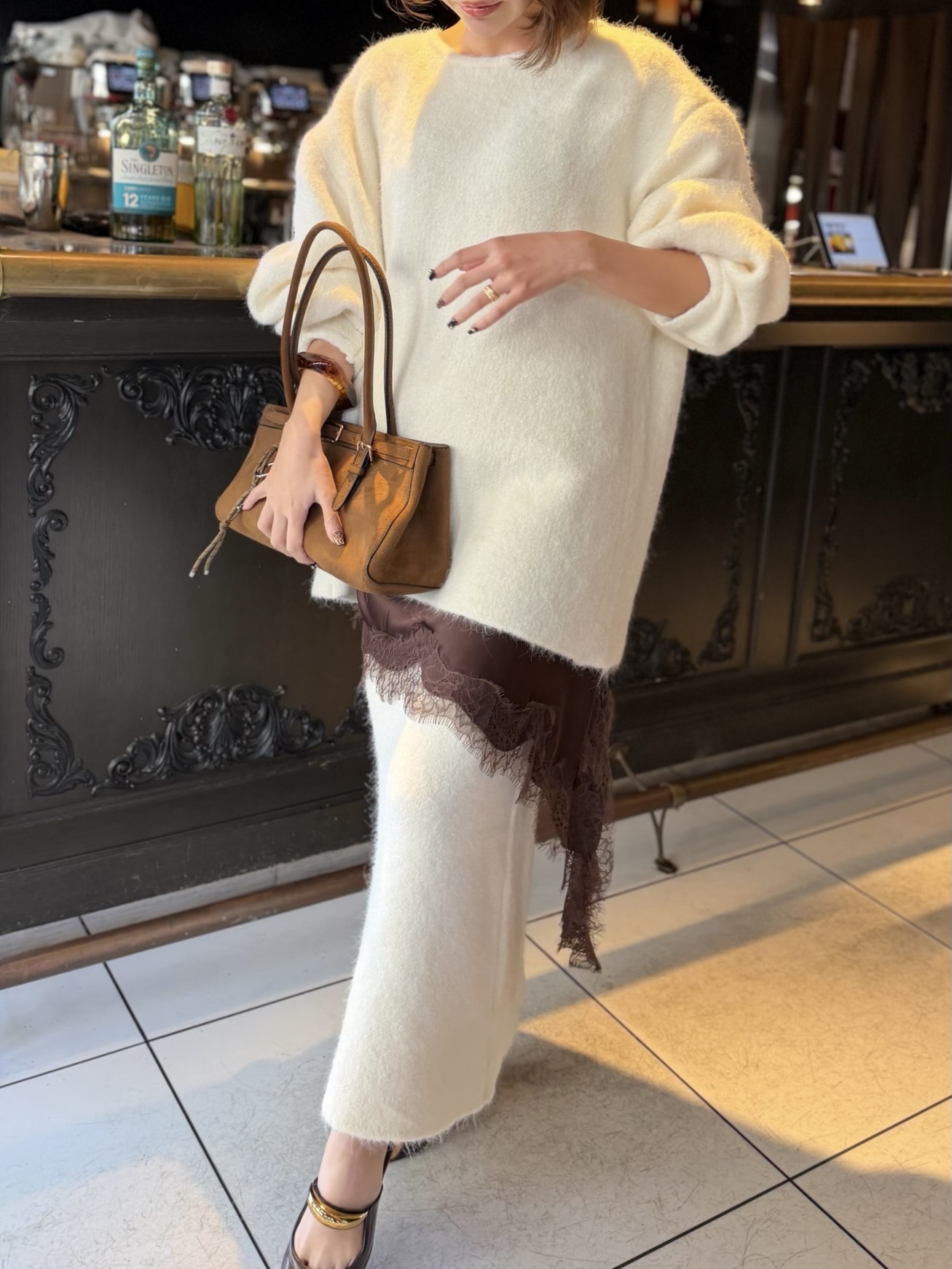 ほわっと起毛したニットで思わず触れたくなる女性らしさを演出します。