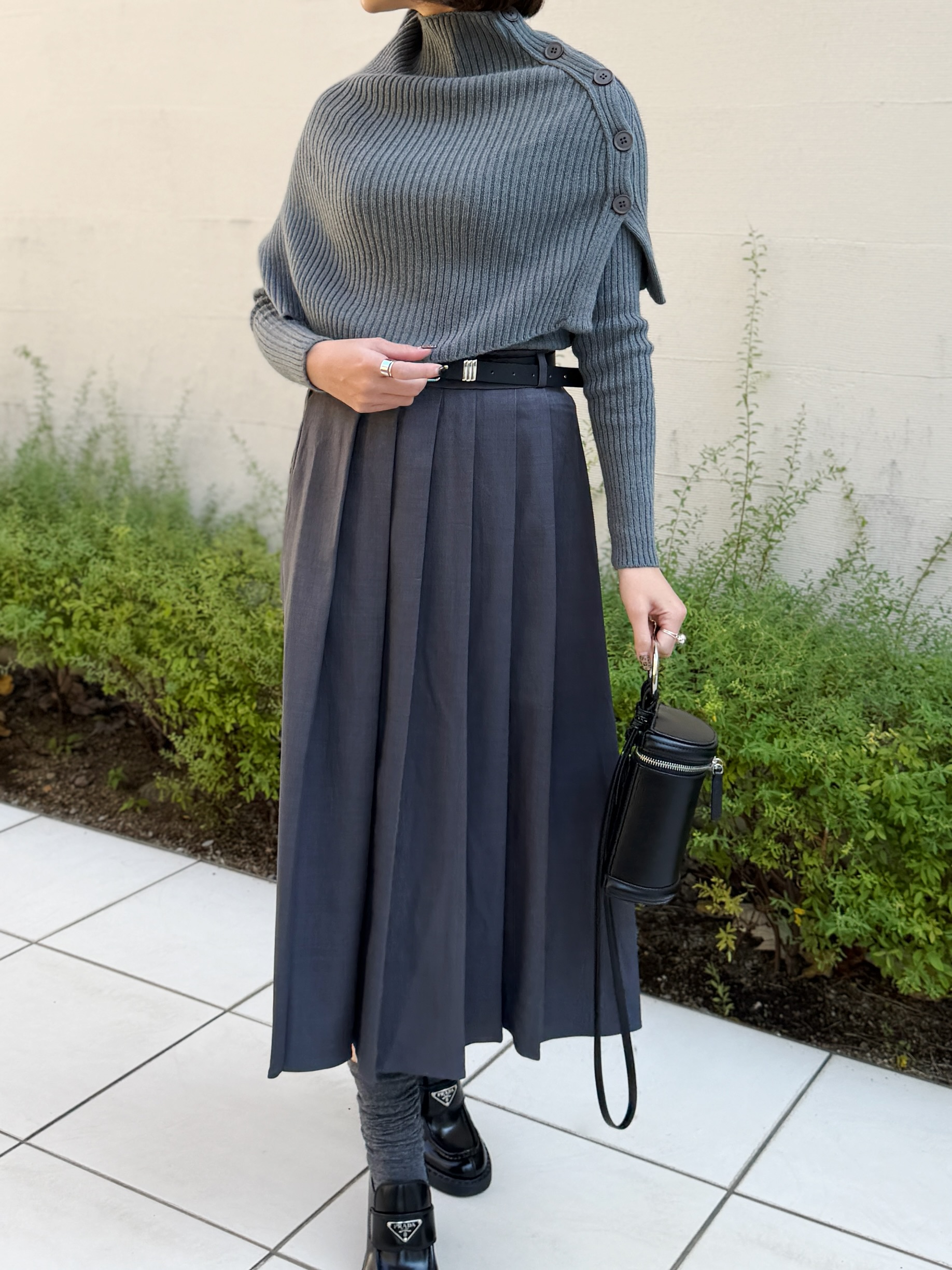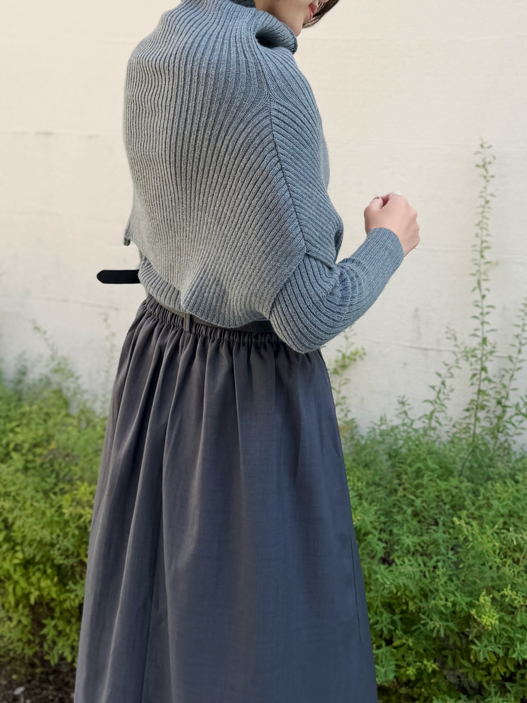 レイヤードデザインが目を引くケープニット。シンプルなニットとしても着用可能な2wayデザイン。シンプルながらも遊び心のあるディティールがポイント。グレーとアイボリーの2カラー展開。チクチクしない快適な着心地。程よく身体にフィットするシルエットも◎ボトムスにインでもアウトでもバランス良くお召しいただけます。STAFF:158cm【サイズ】(平置き採寸/約)着丈55cm 身幅43cm 袖丈60cm【素材】ポリエステル65%,コットン35% ■クロネコ代金後払いをご利用のお客様■商品到着後に請求書(払込用紙)が到着します。14日以内にお支払いをお願いします。全国の主要なコンビニで、請求書をレジに持っていくだけでお支払いが可能です。全国の郵便局でも同じ請求書でお支払いできます。※ご請求書が圧着ハガキタイプの場合、郵便局でのお支払いはできません。※弊社の銀行口座宛にお振込頂くものでは御座いません。ご注意下さい。