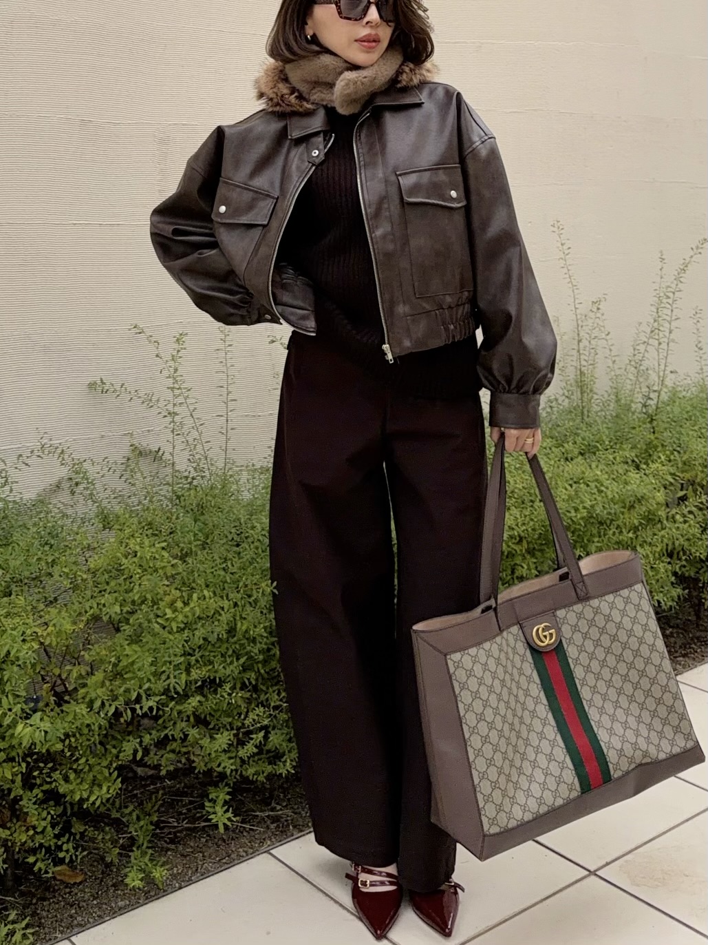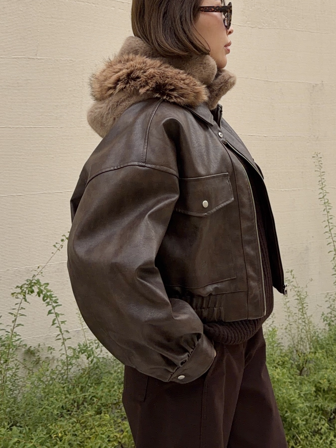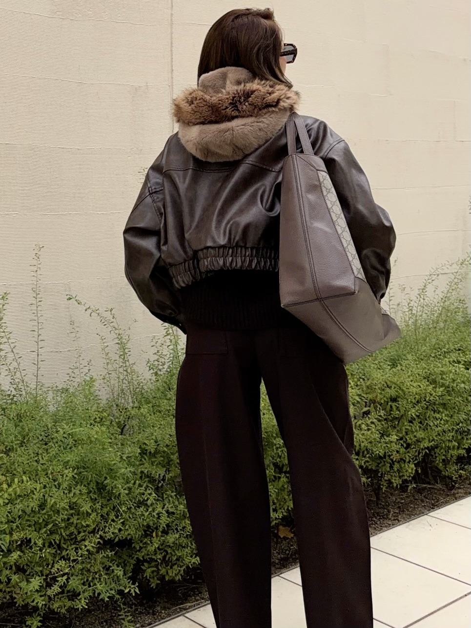 ボリューミーなファーでバックスタイルも可愛く見せる個性的な冬小物です。