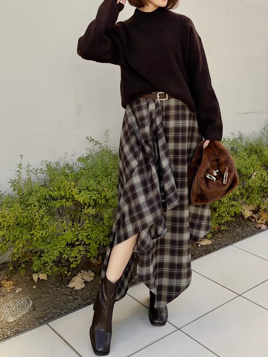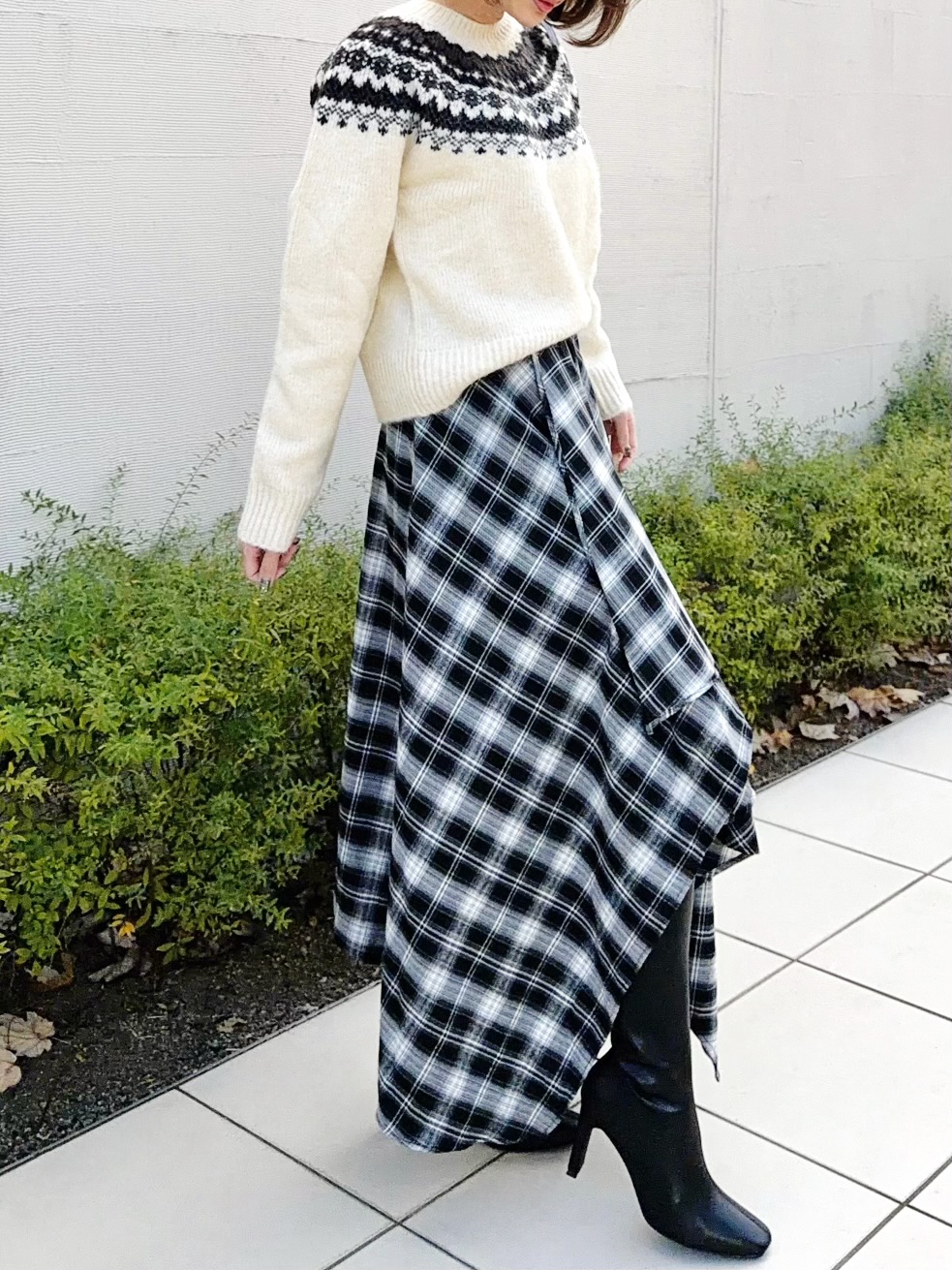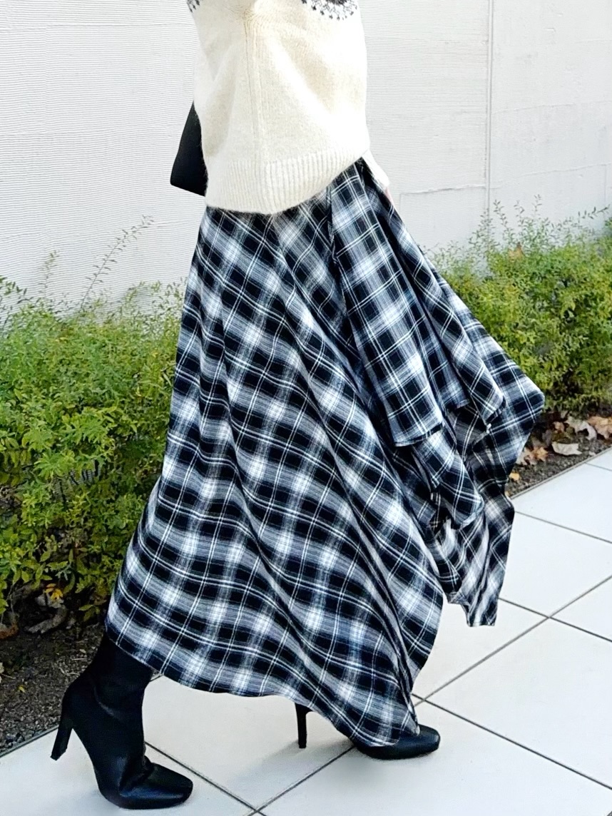 ニットやスウェットなど様々なトップスにマッチするチェックスカート。