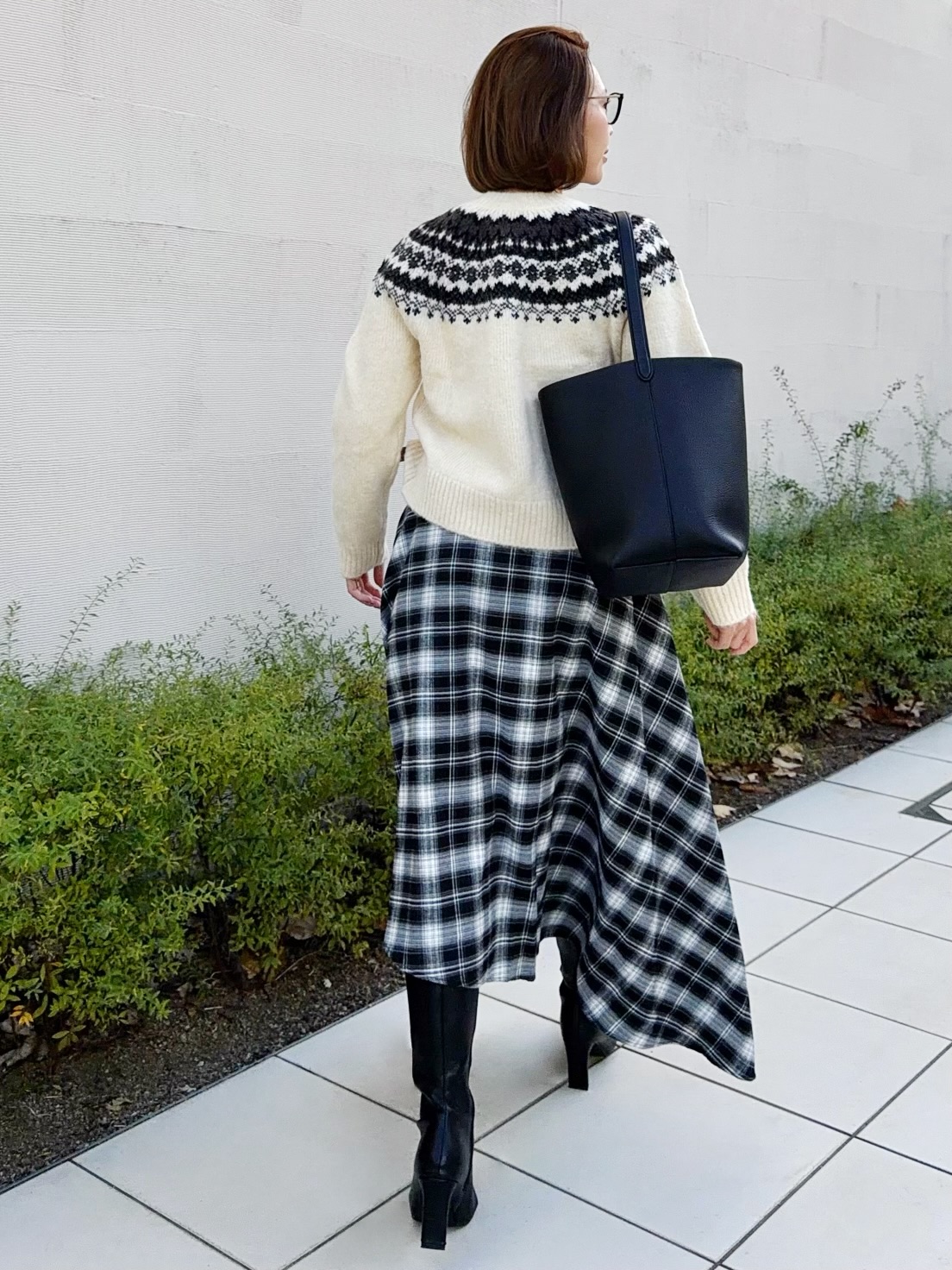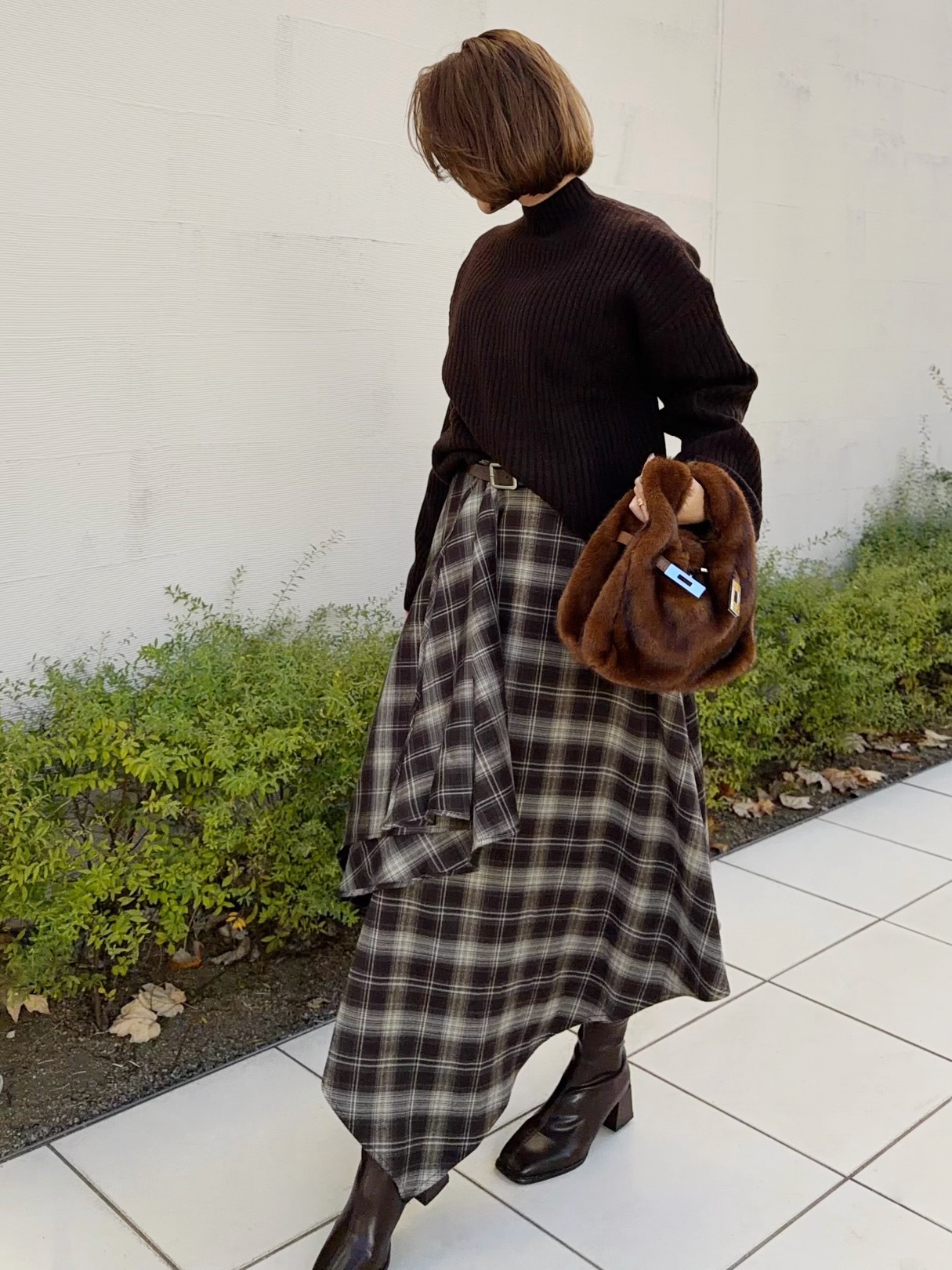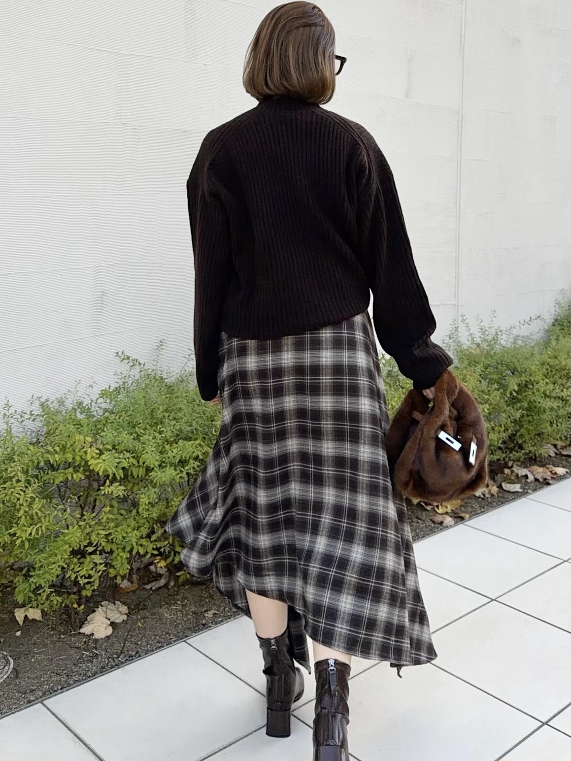ニットやスウェットなど様々なトップスにマッチするチェックスカート。