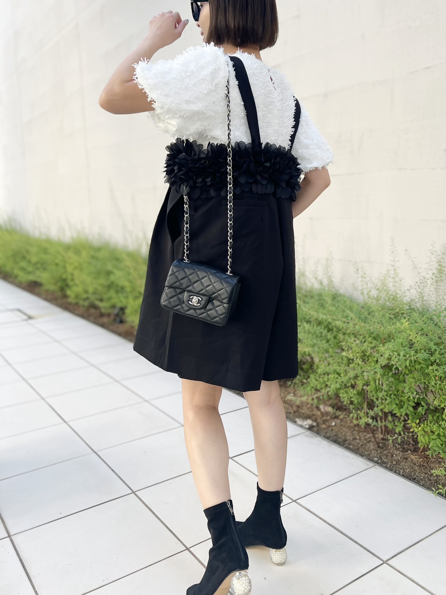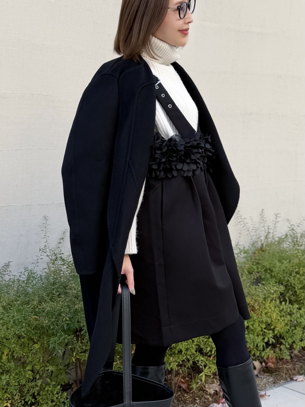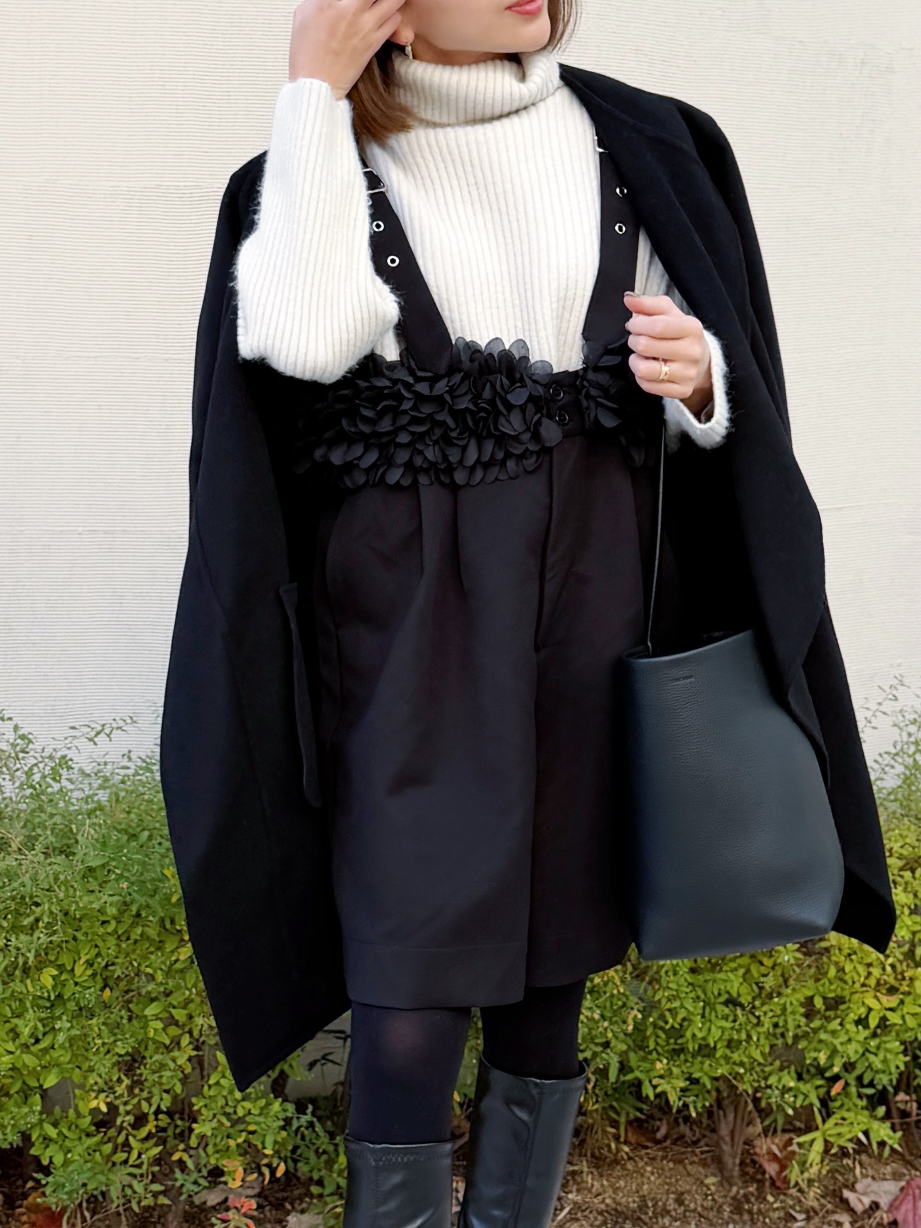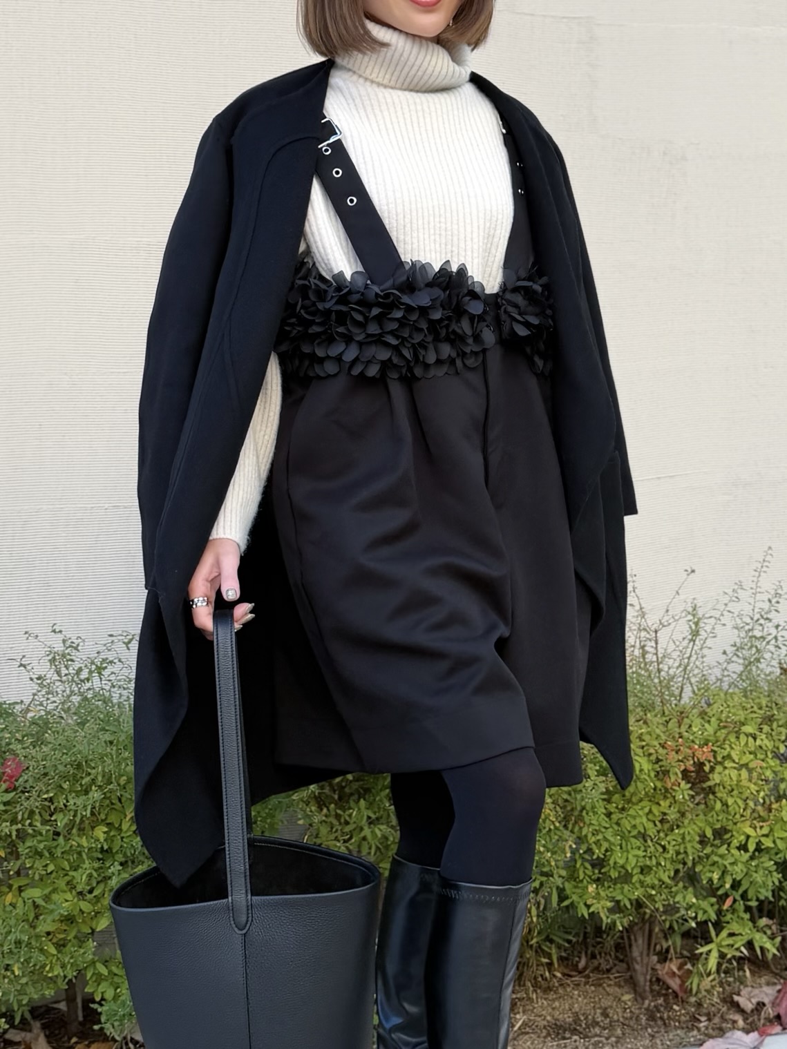 ブラックのフラワーで甘さをプラス♪大人でもトライしやすいひざ丈が上品です。