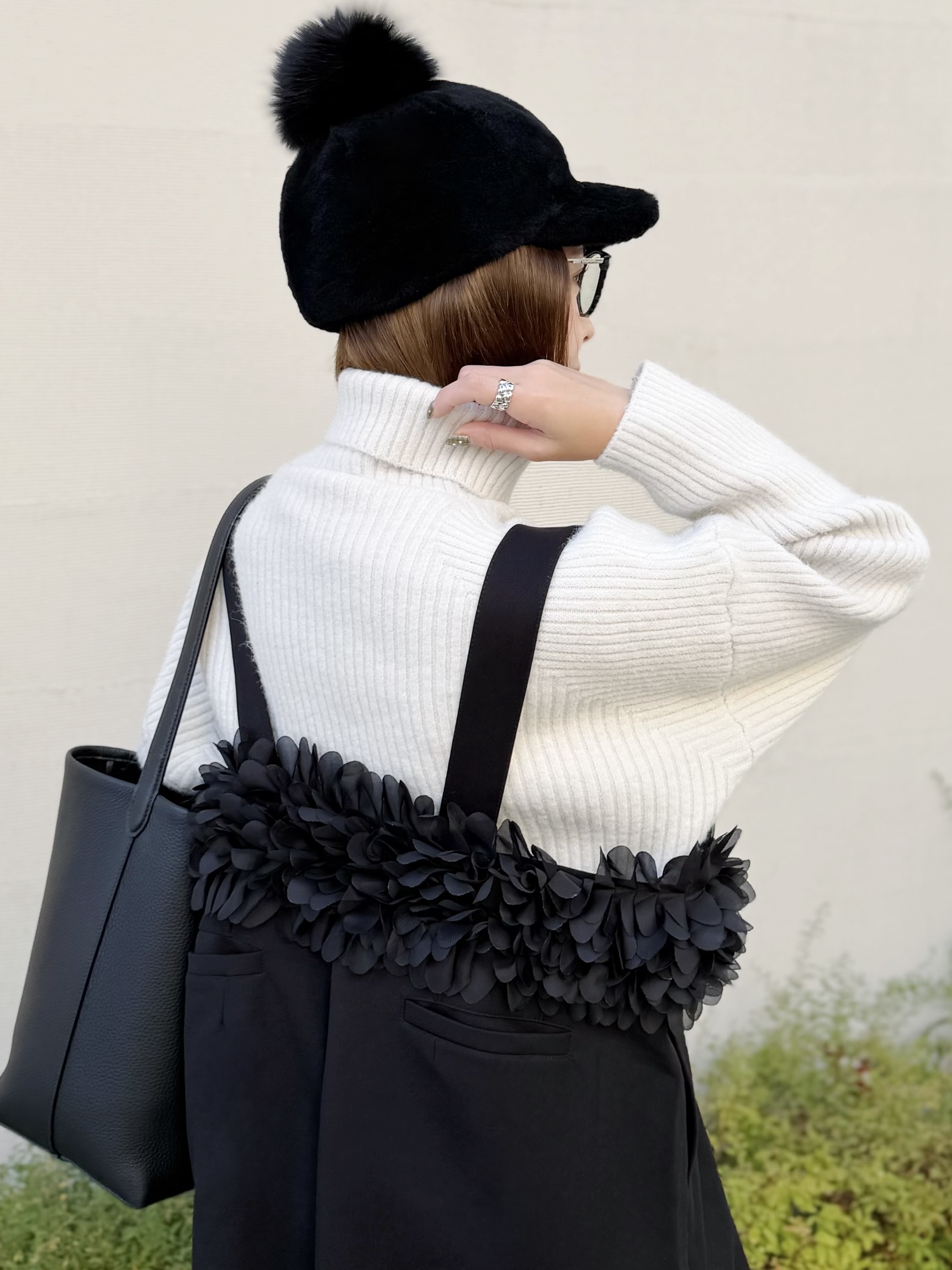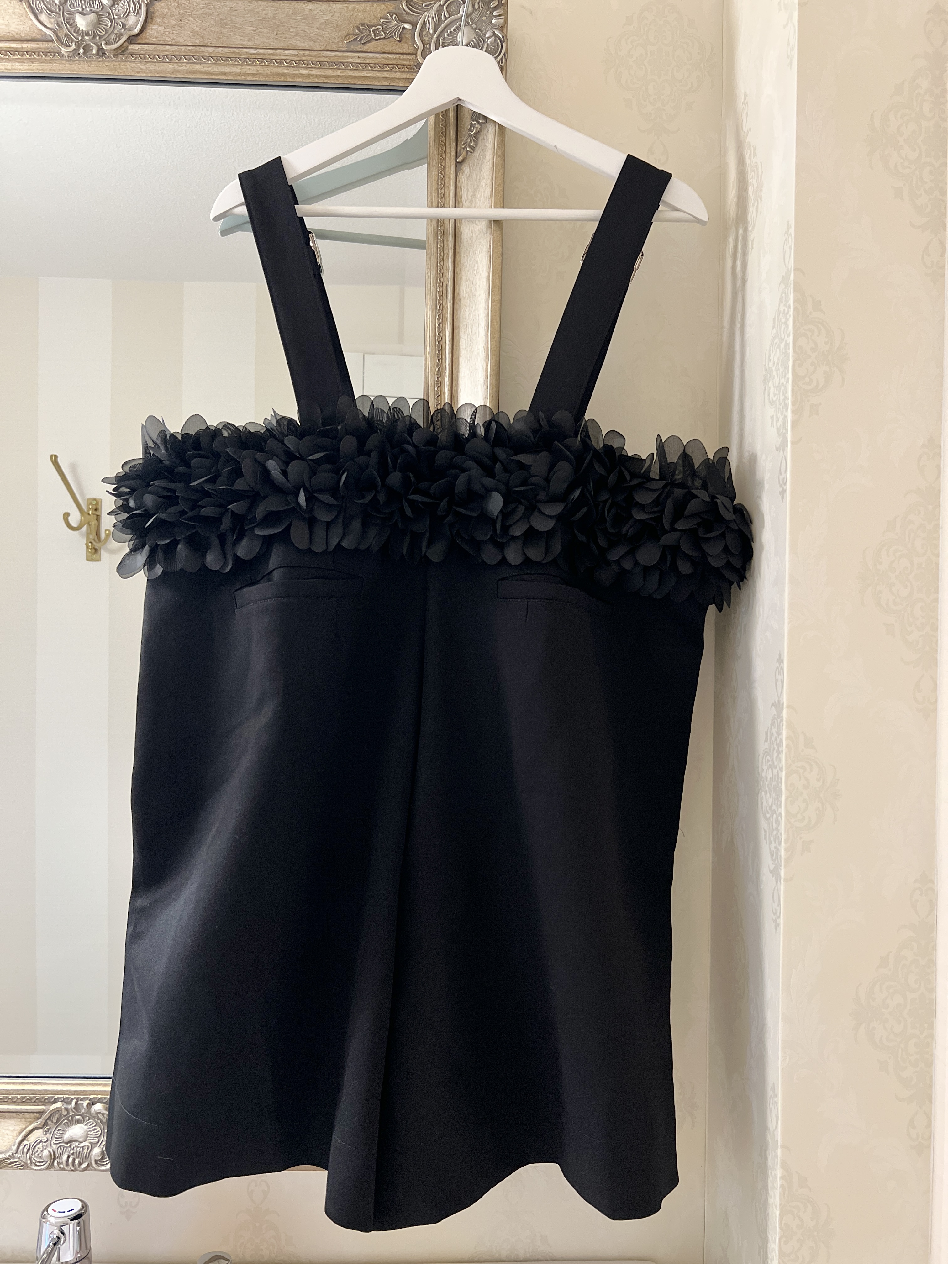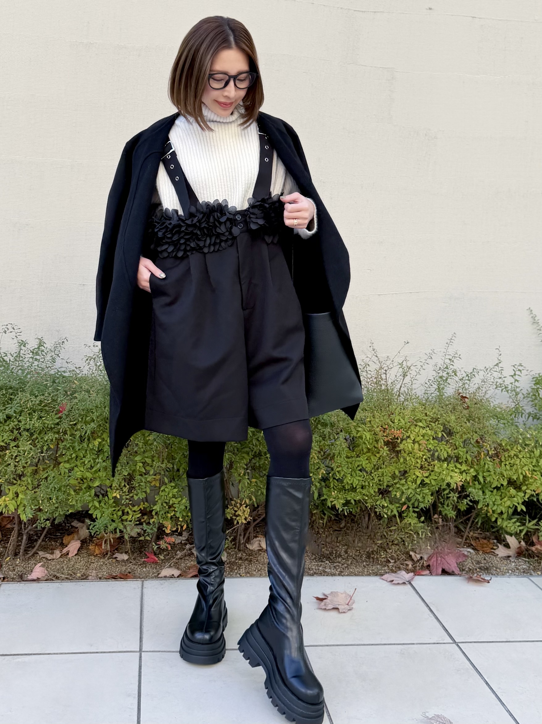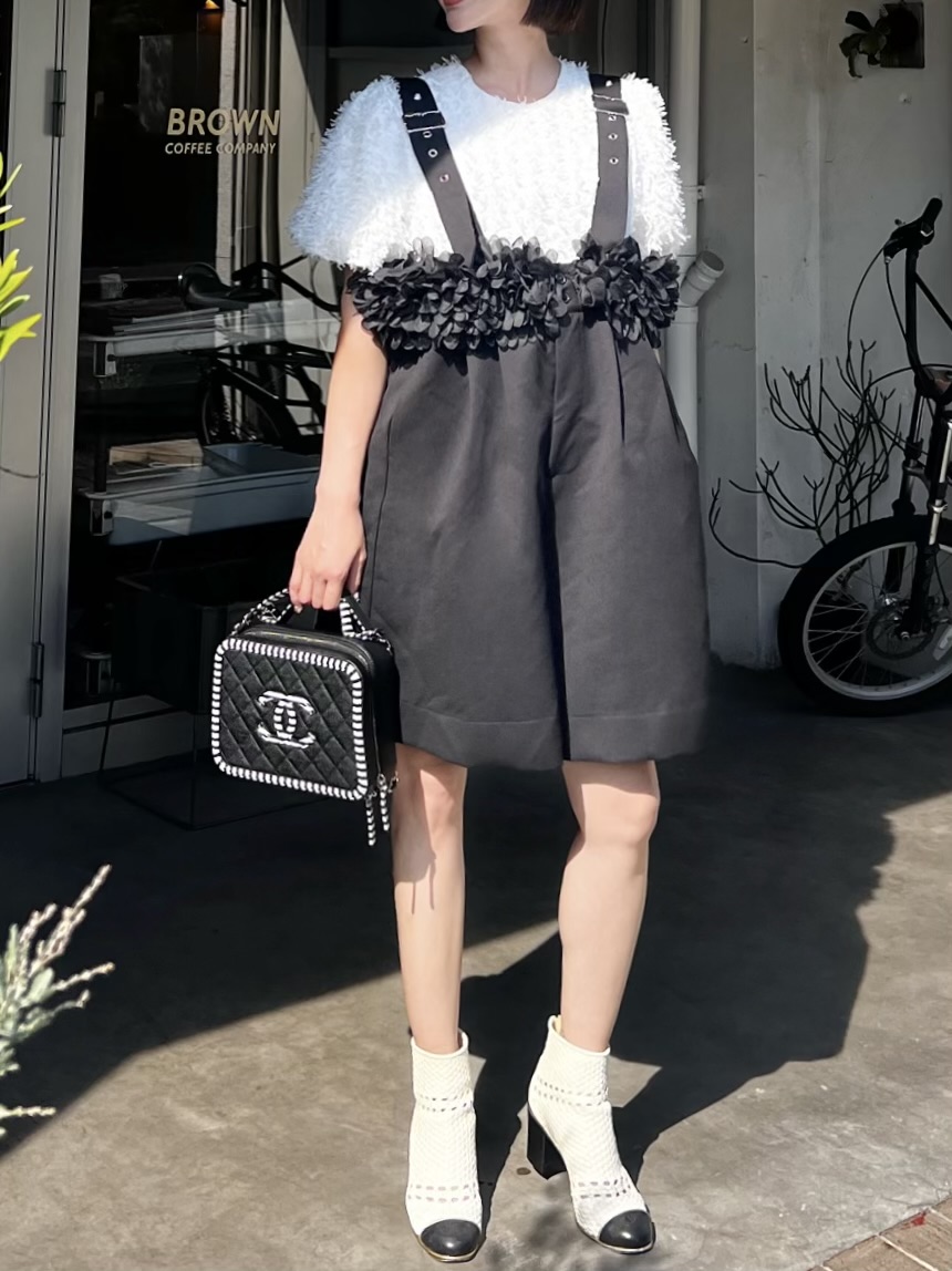 ブラックのフラワーで甘さをプラス♪大人でもトライしやすいひざ丈が上品です。