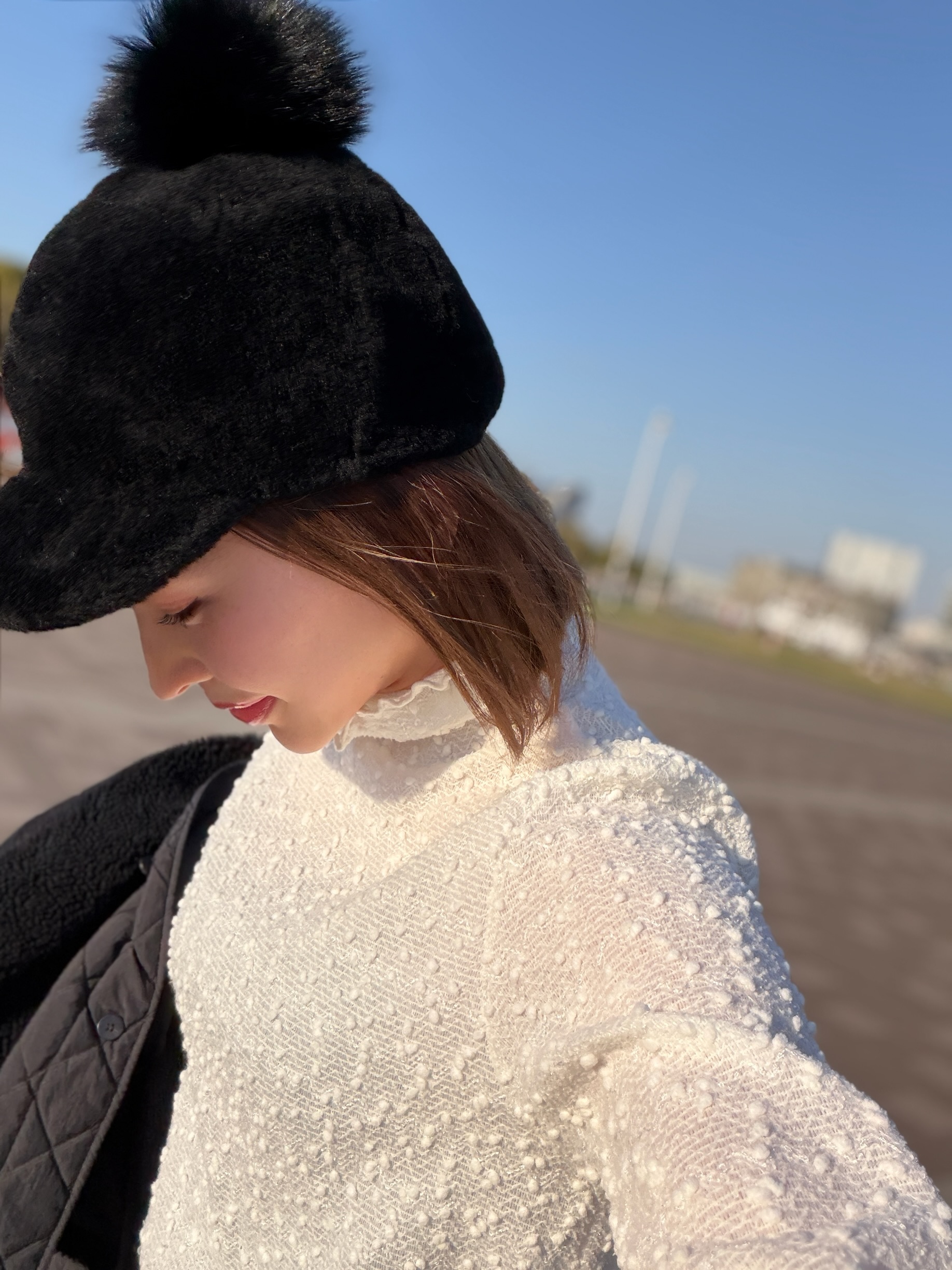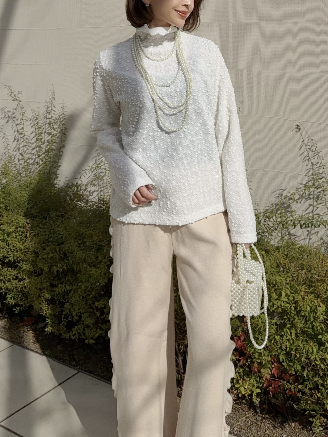 スパンコールが編まれたポコポコした生地が可愛いタートルトップス。