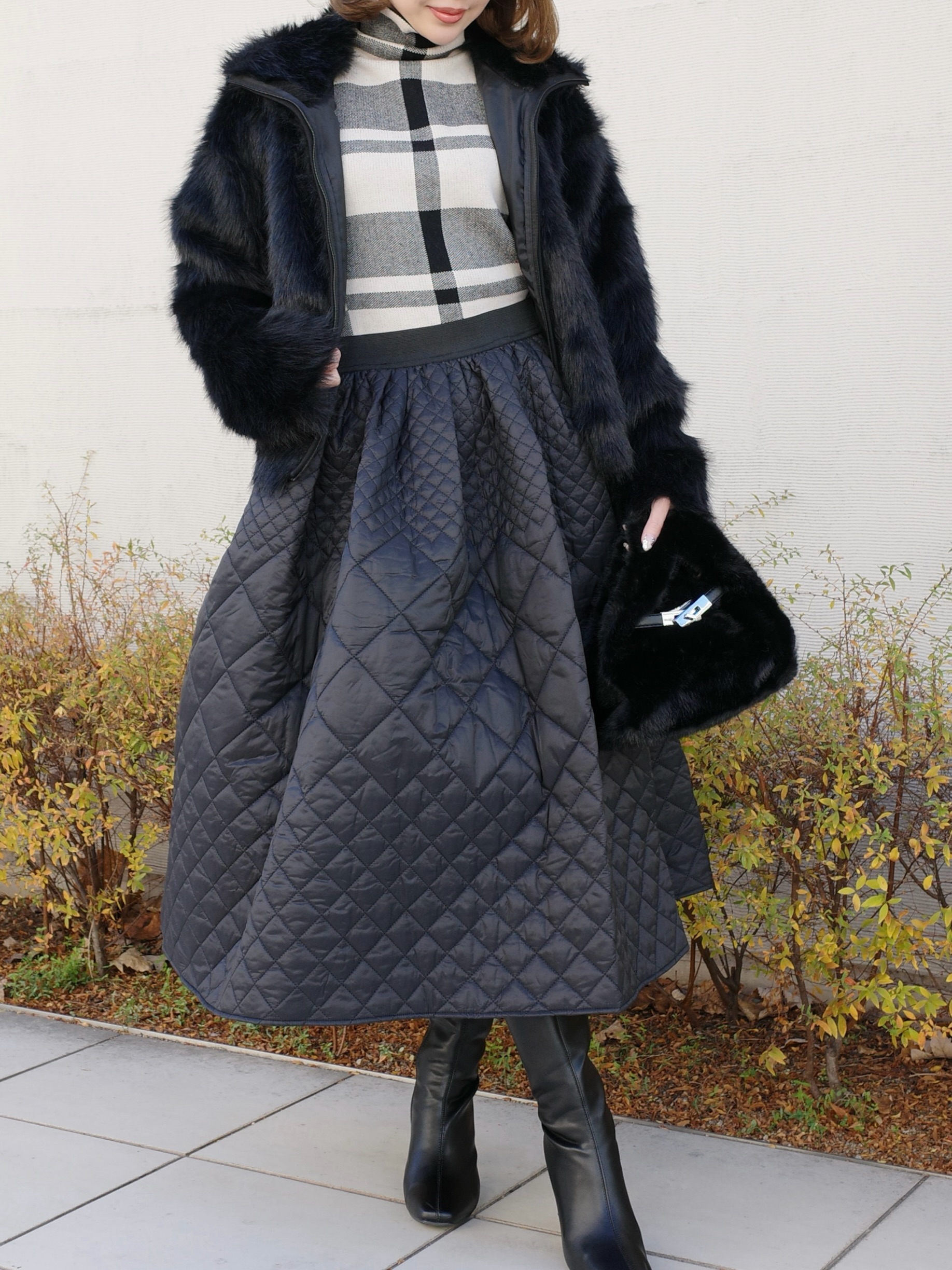 温かみのあるキルティング素材が冬コーデに華を添えます。