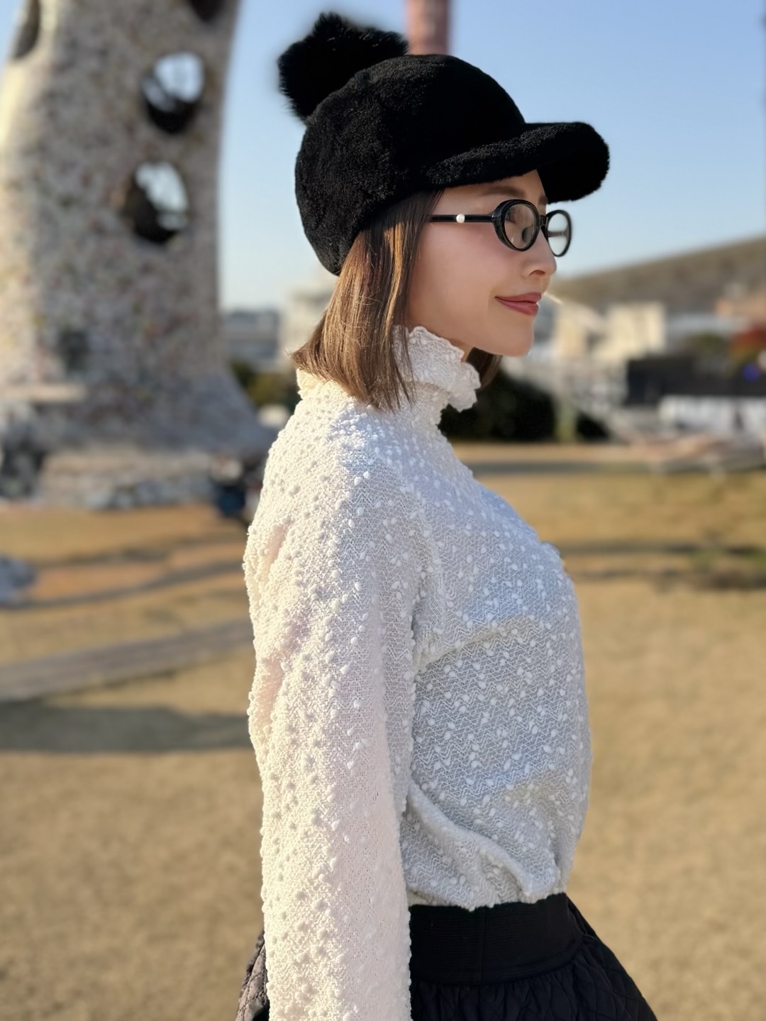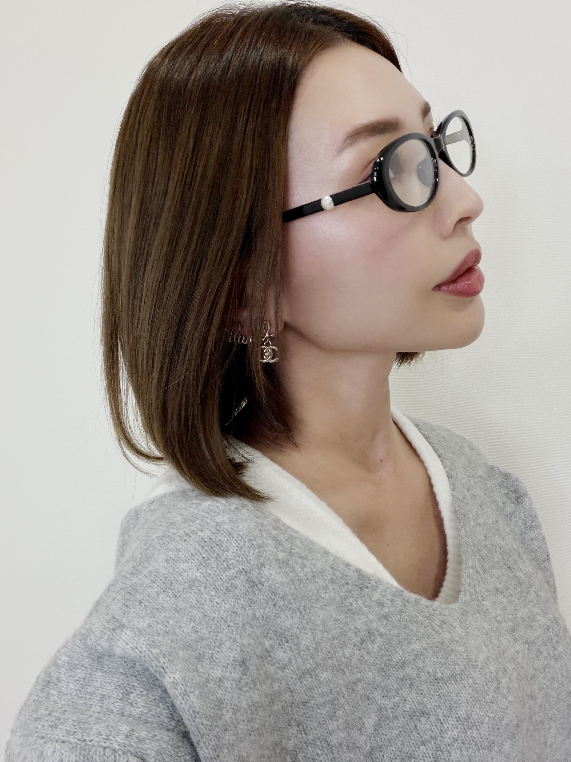 サイドにちょこんとあしらわれたパールがポイントのだてメガネ。