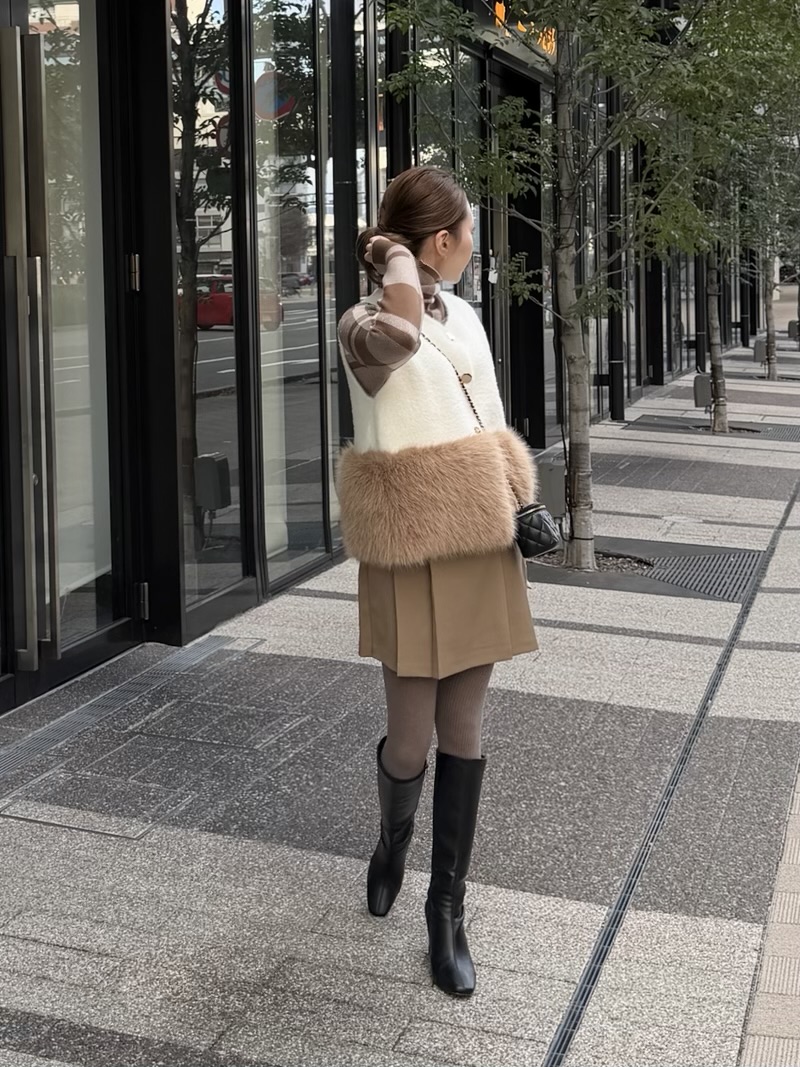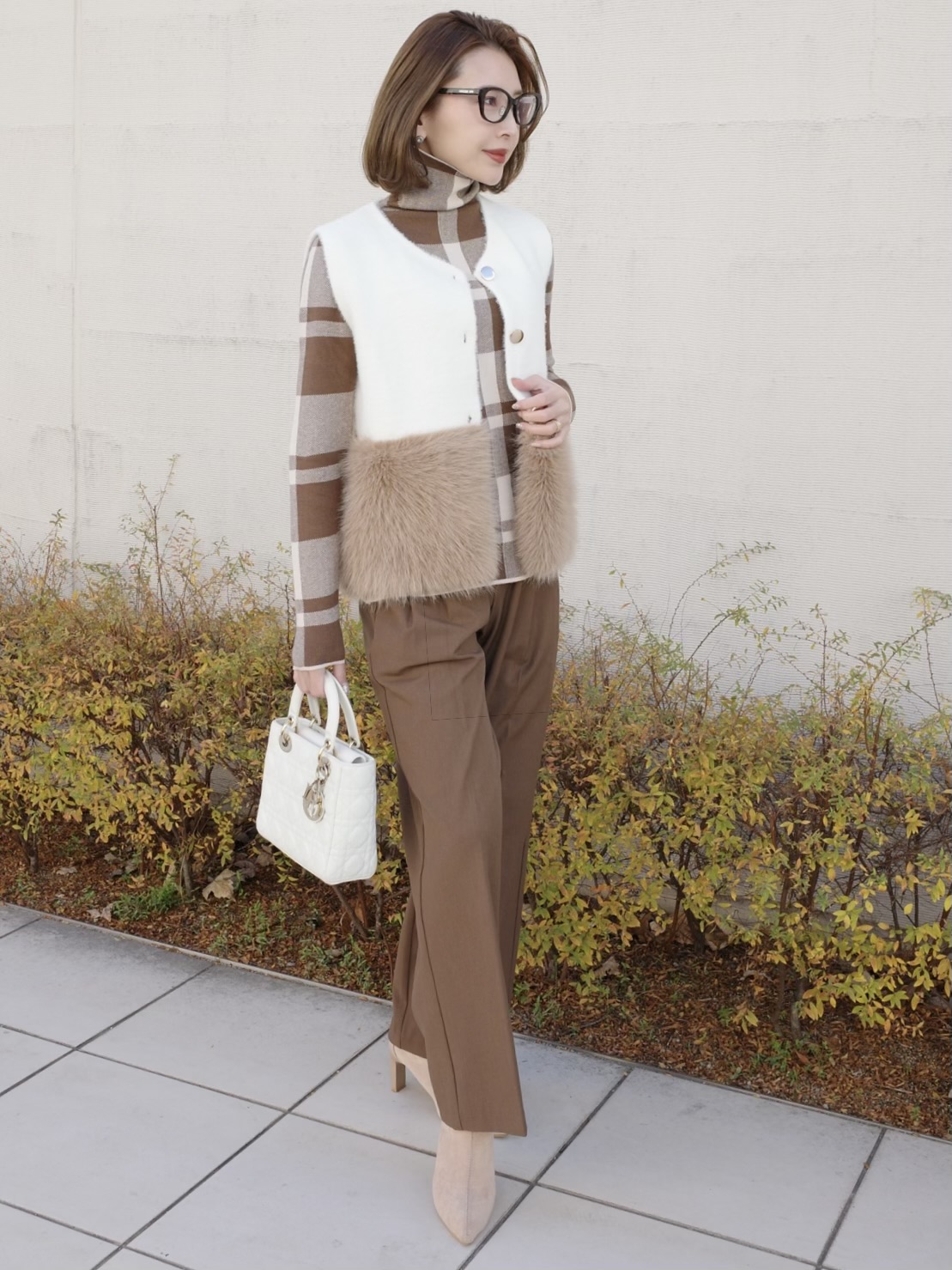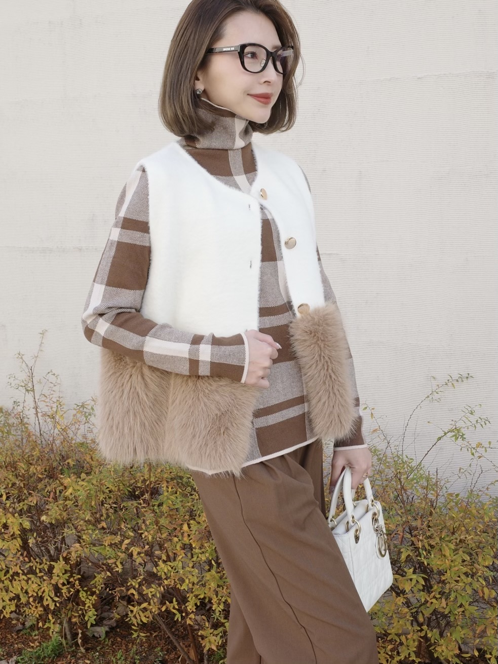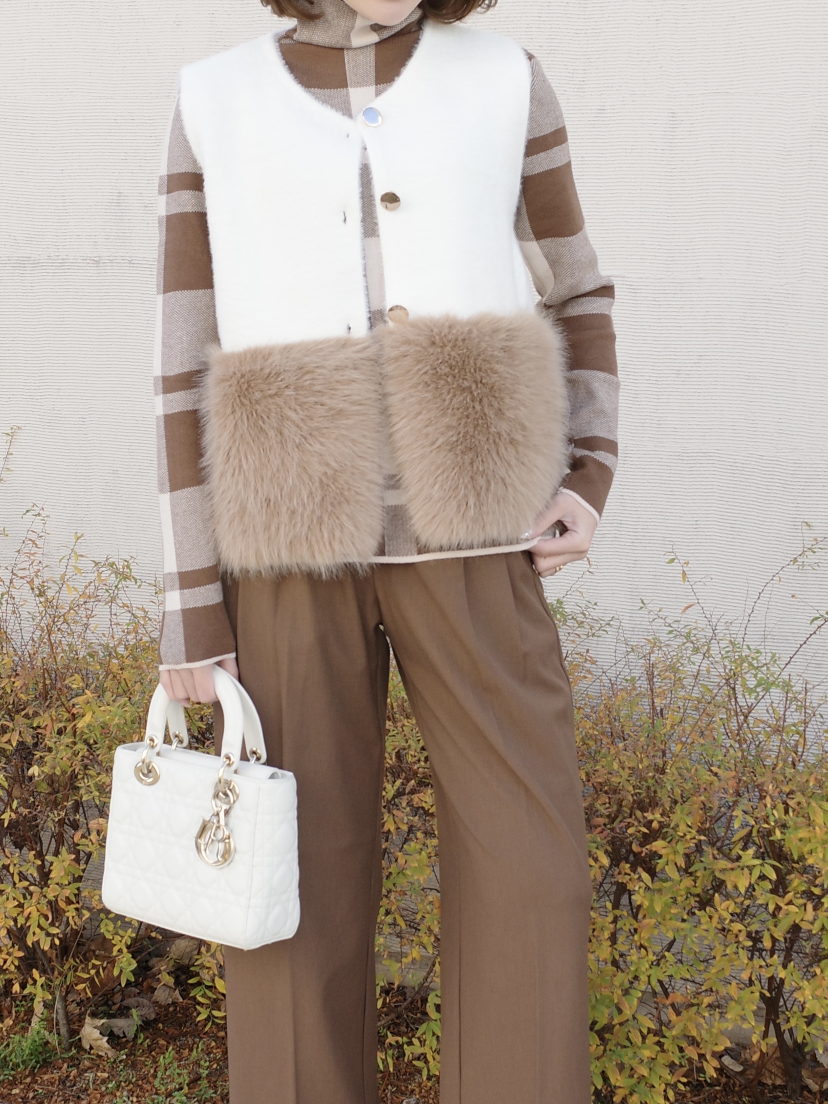 裾のファー切替が印象的なジレ。ニットやブラウスにレイヤードさせて大人可愛いスタイリングに。着ぶくれしないすっきりとしたシルエットでアウターを上から羽織ってもモタつきません。シンプルなスタイリングにスパイスをプラスしてくれるアイテム♡ホワイト×ベージュの配色がフェミニンで柔らかな雰囲気。春先も活躍します。STAFF:158cm/S着用【サイズ】(平置き採寸)(S)着丈56cm,身幅47cm(M)着丈58cm,身幅49cm【素材】ポリエステル50%,アクリル50%■クロネコ代金後払いをご利用のお客様■商品到着後に請求書(払込用紙)が到着します。14日以内にお支払いをお願いします。全国の主要なコンビニで、請求書をレジに持っていくだけでお支払いが可能です。全国の郵便局でも同じ請求書でお支払いできます。※ご請求書が圧着ハガキタイプの場合、郵便局でのお支払いはできません。※弊社の銀行口座宛にお振込頂くものでは御座いません。ご注意下さい。