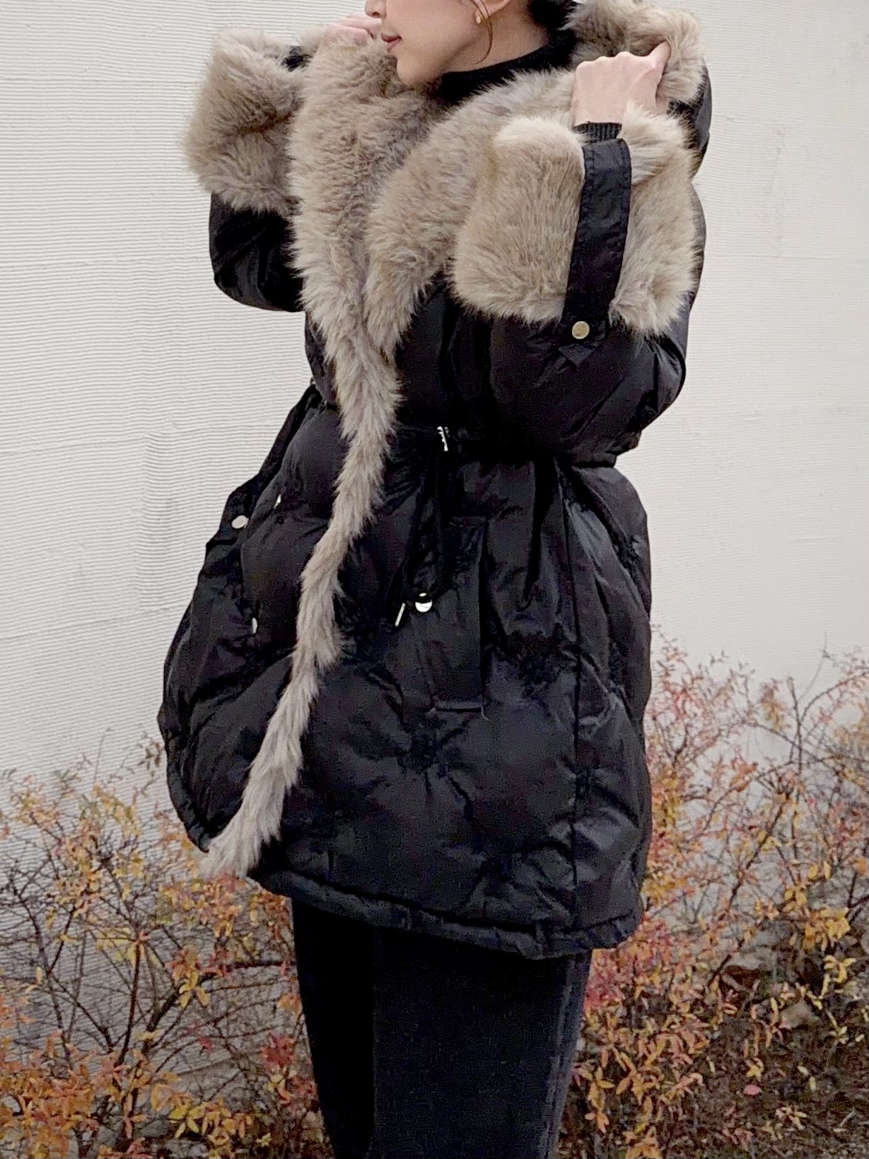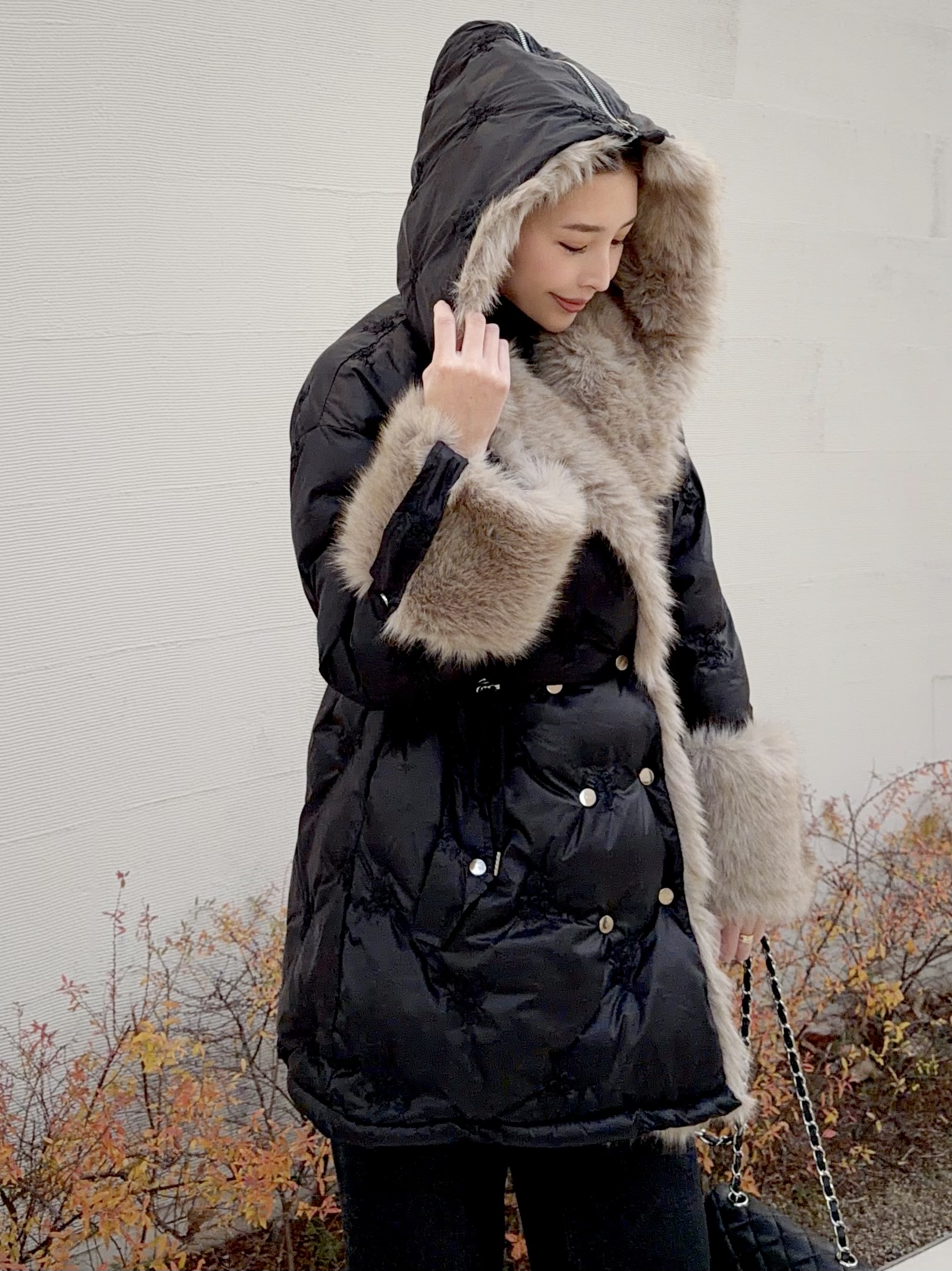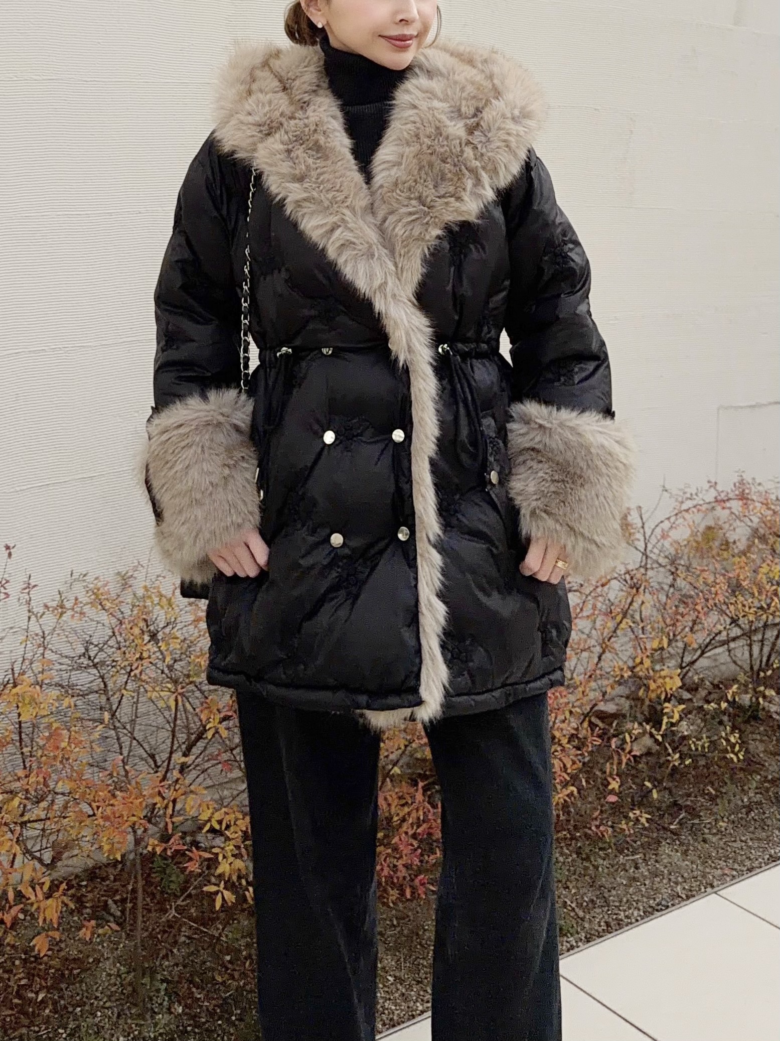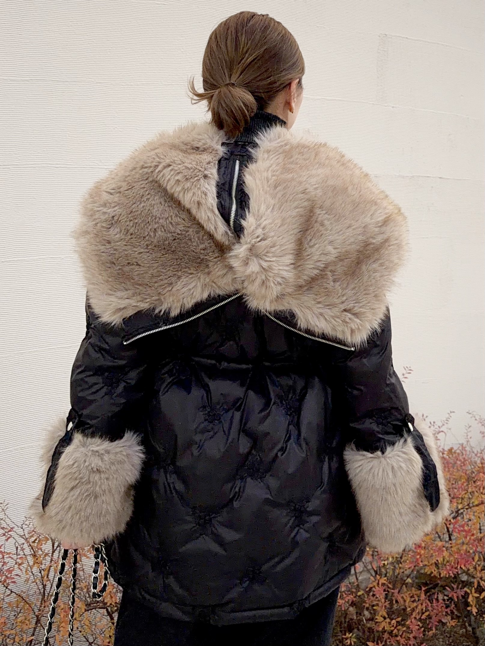 ボリューミーなエコファーが顔周りを華やかに演出。