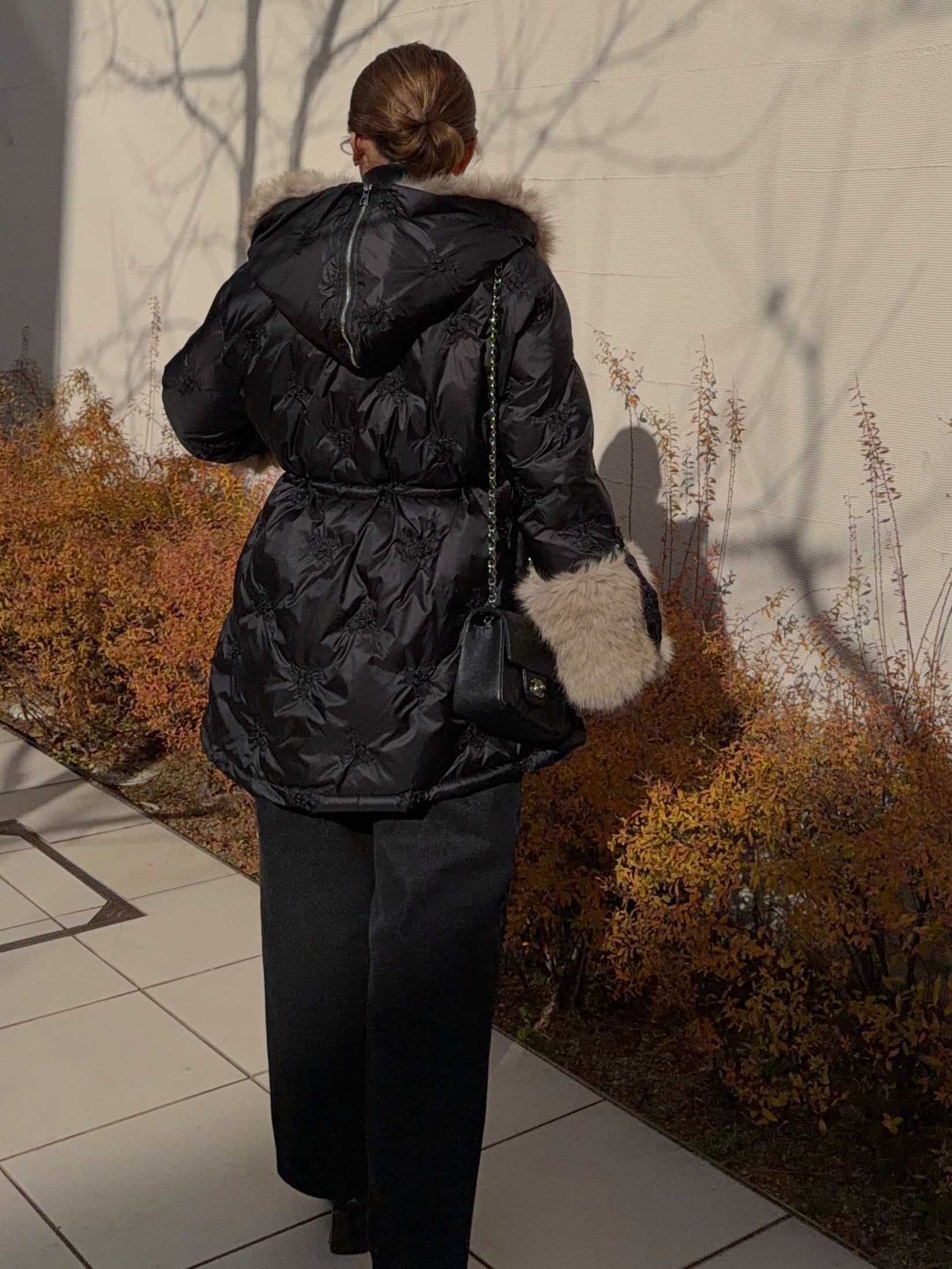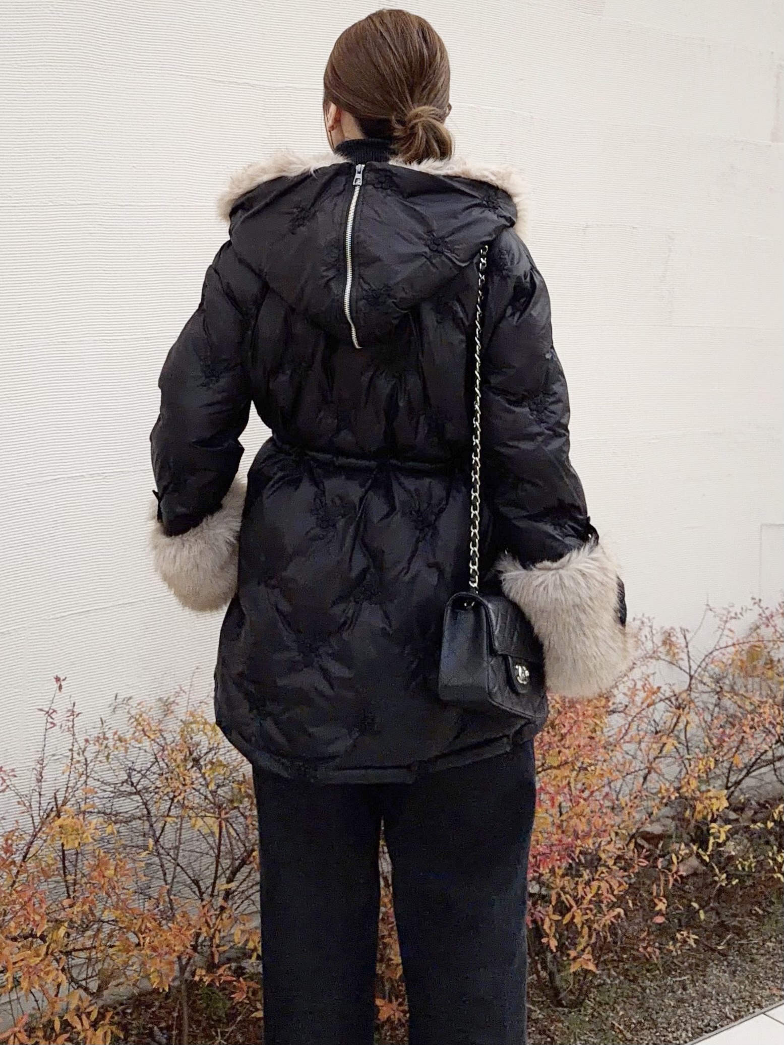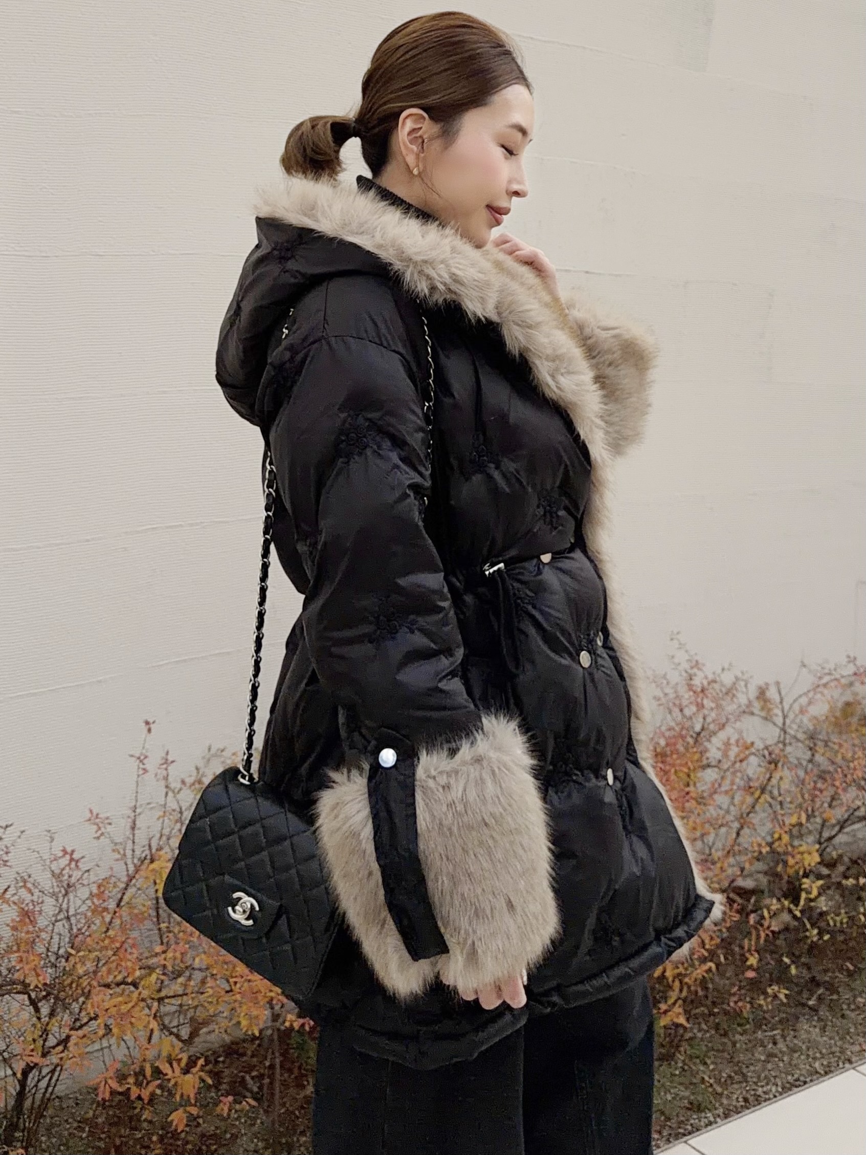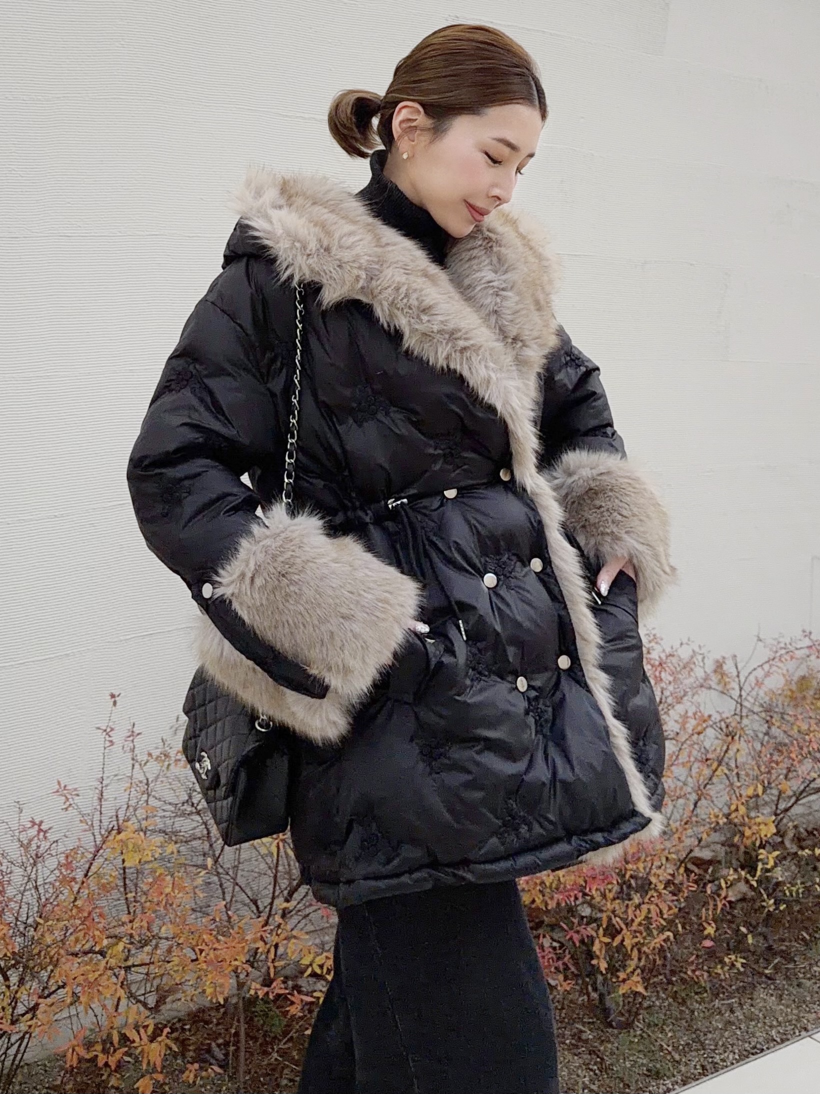 ボリューミーなエコファーが顔周りを華やかに演出。