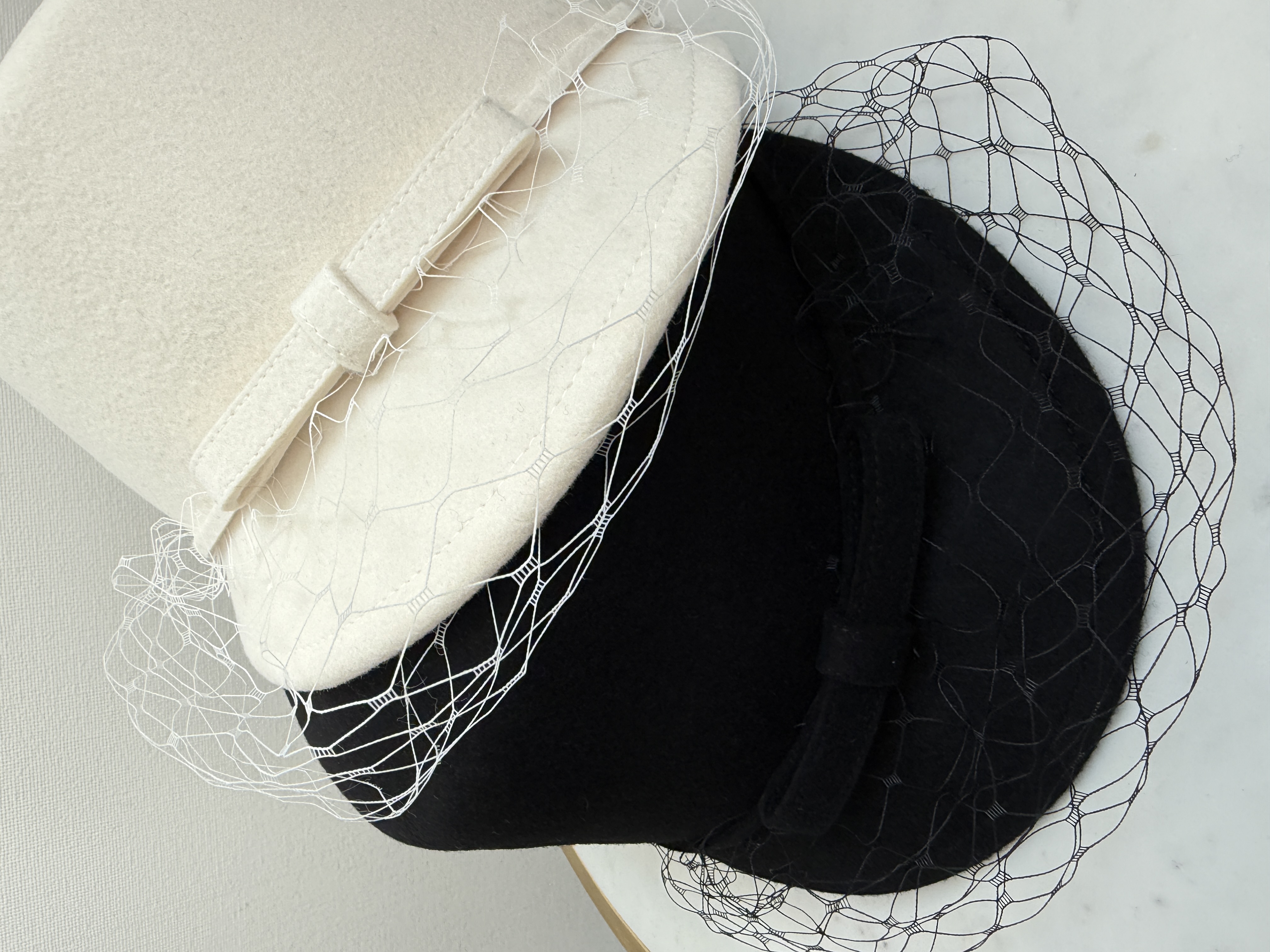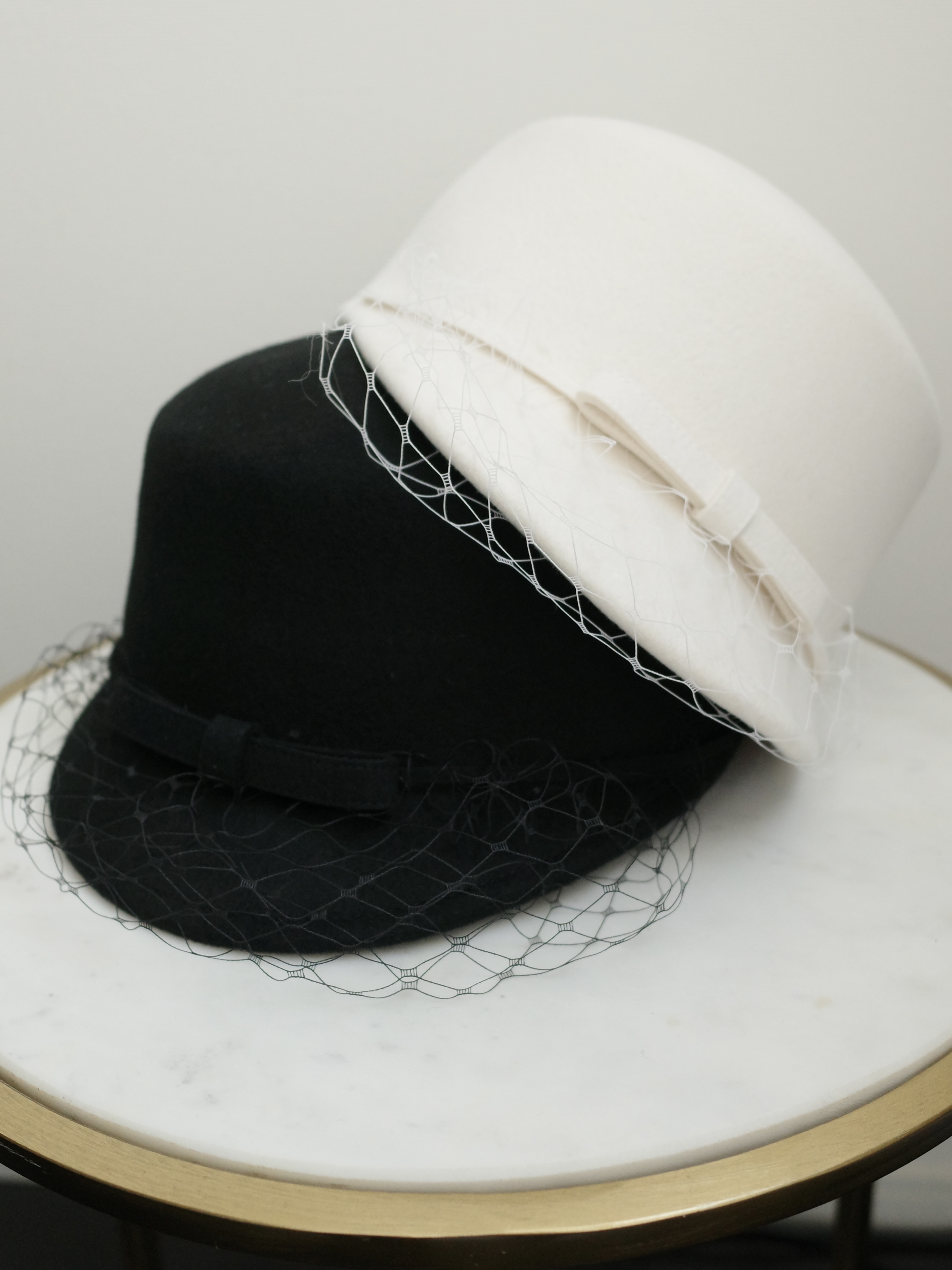 女心くすぐるチュールヴェール付きキャスケット。ブラックとホワイトの2カラー。シンプルなスタイリングのワンポイントにぴったり♡小顔効果も叶える一押しの帽子です。【SIZE】頭周りサイズ約58cm ブリム6cm 高さ12cm【素材】ウール100%