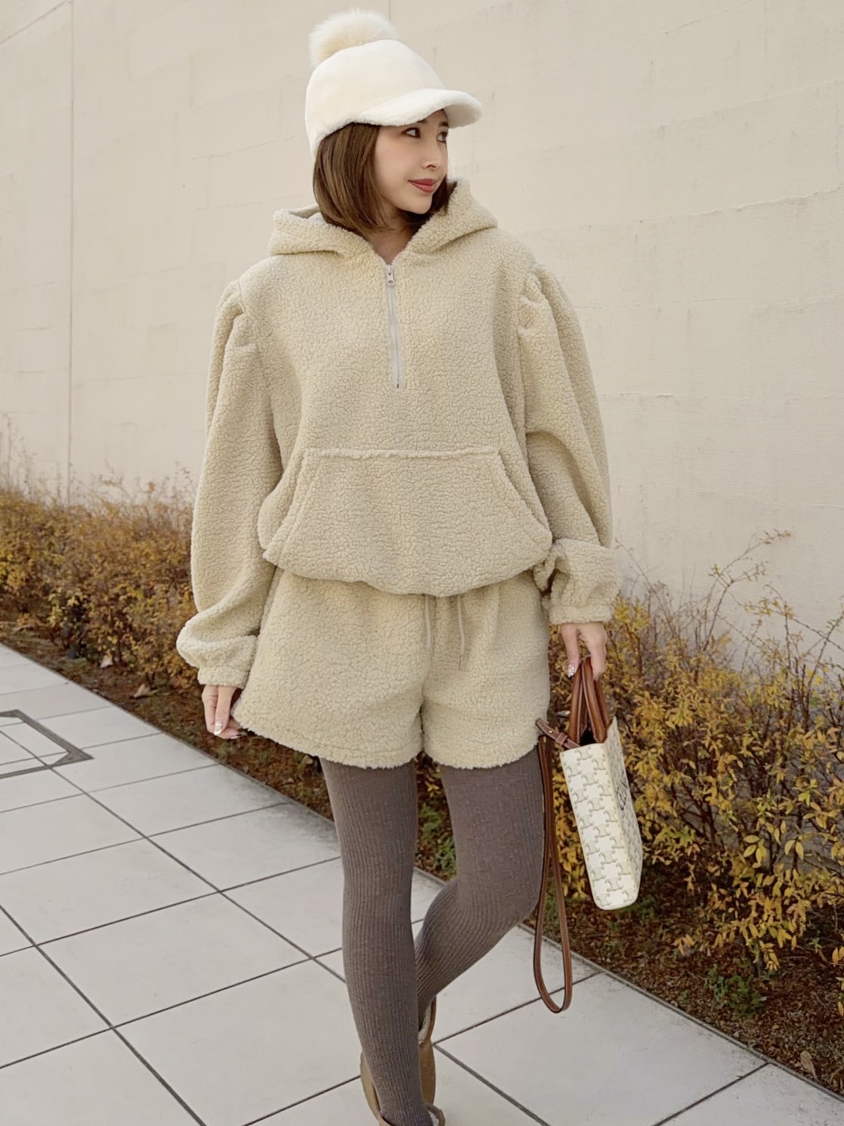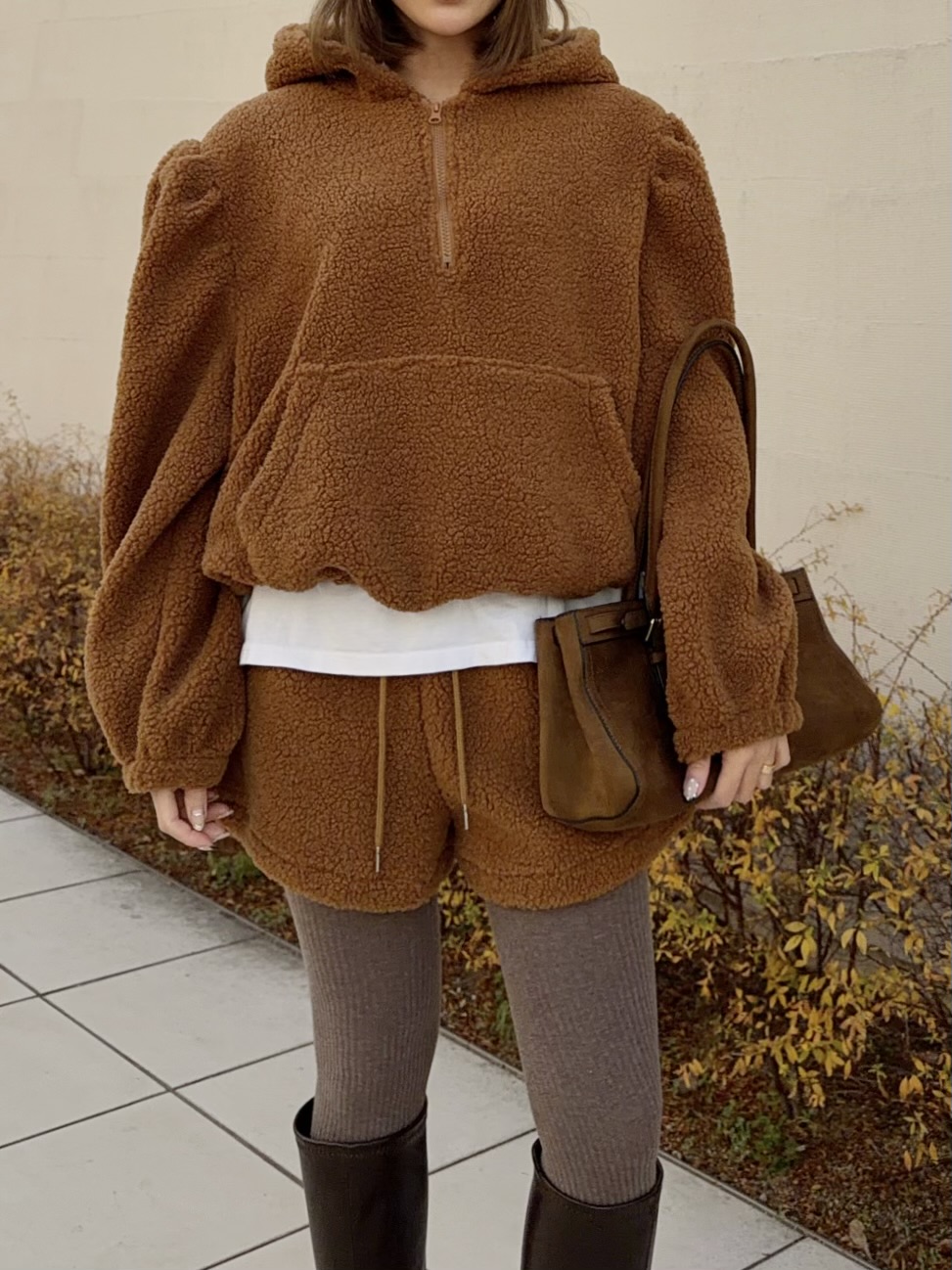 冬にぴったり♡あったかボア素材のセットアップ。