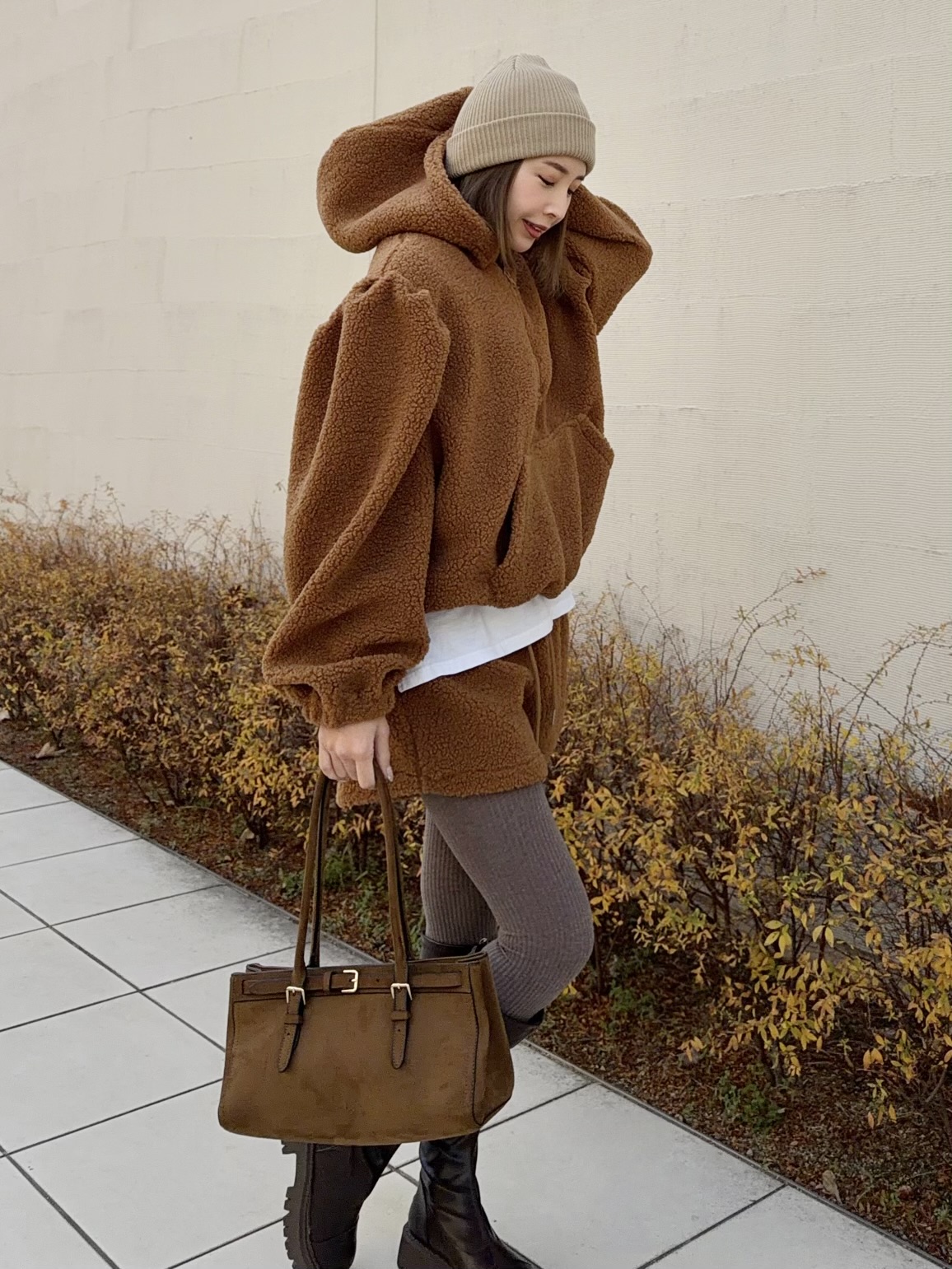 カジュアルな中にテディベアのような愛らしさをプラス。