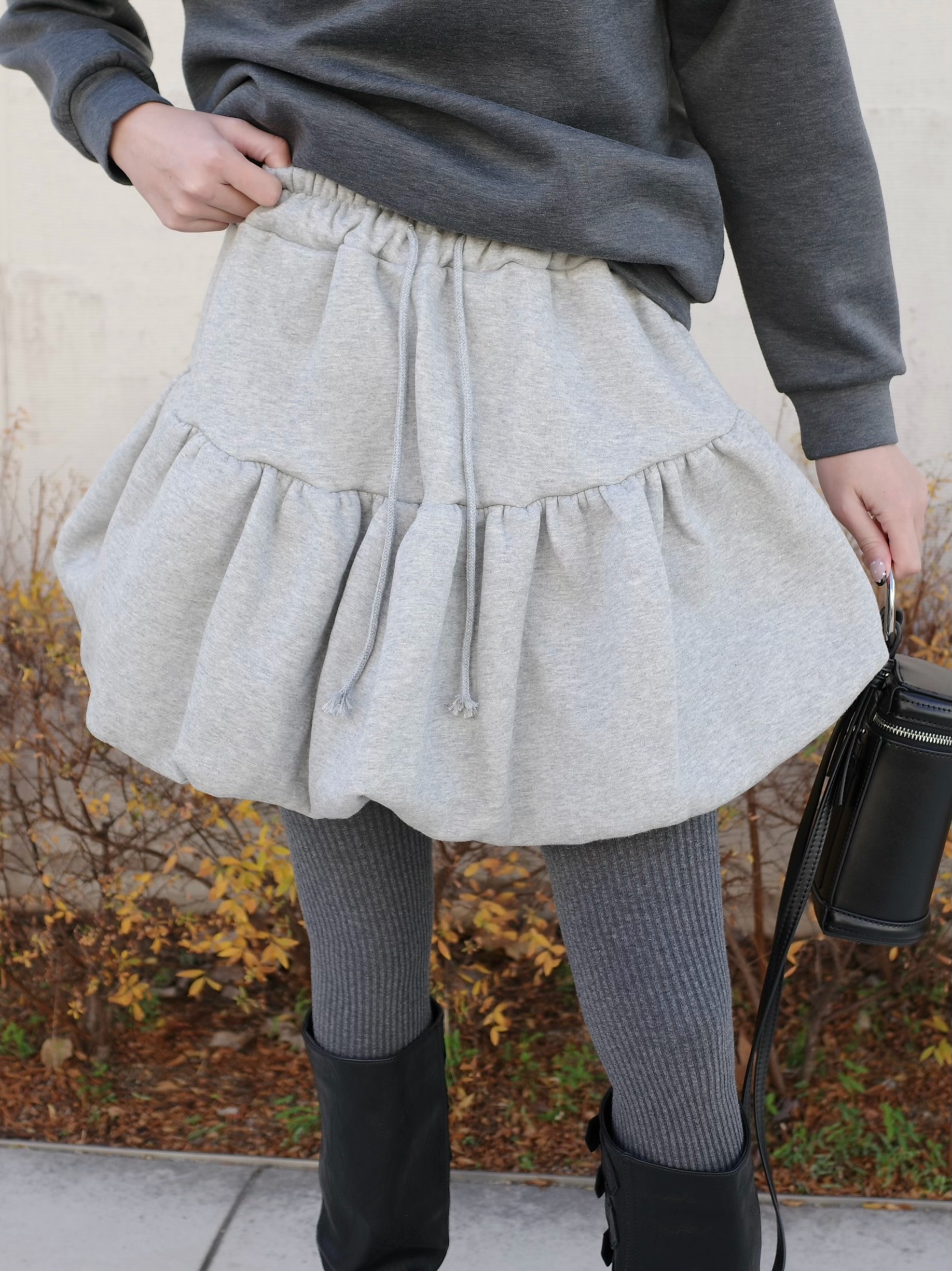 裾のバルーンがポイントの360°大人可愛くキマるパンプキンスカート。