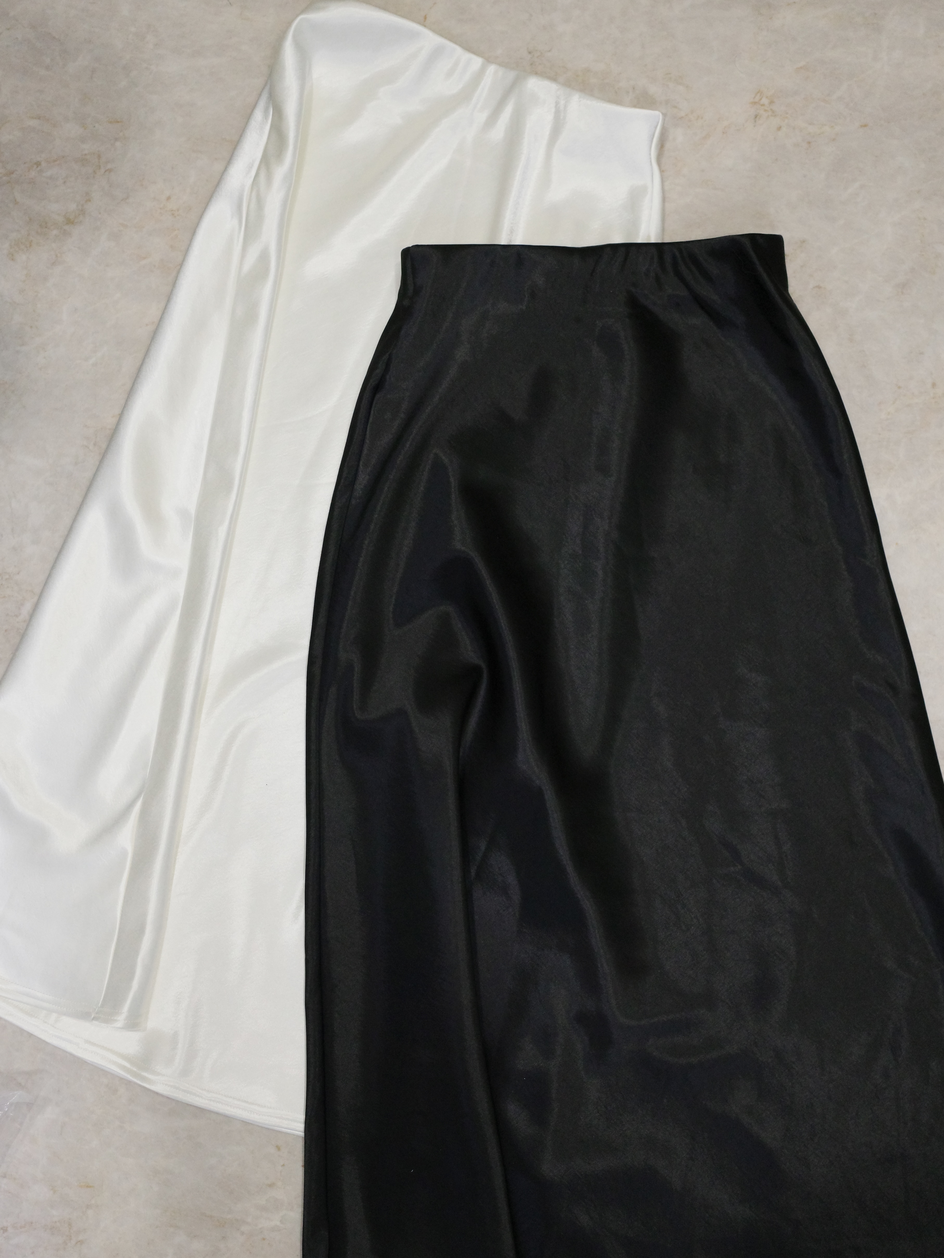 光沢感のあるとろみ生地が上品なスカート。動きのあるドレープが光に当たって輝く華やかな1枚。肉厚な裏起毛素材で温かく、シワになりにくいのもポイントです。ウエスト部分はゴムで履き心地も◎スウェットなどと合わせたカジュアルコーデから、綺麗目なブラウスやタートルニットに合わせたフェミニンなスタイリングまで幅広く活躍します。STAFF:158cm【サイズ/約:平置き採寸】スカート丈90cm ウエスト33cm ヒップ45cm【素材】ポリエステル100%■クロネコ代金後払いをご利用のお客様■商品到着後に請求書(払込用紙)が到着します。14日以内にお支払いをお願いします。全国の主要なコンビニで、請求書をレジに持っていくだけでお支払いが可能です。全国の郵便局でも同じ請求書でお支払いできます。※ご請求書が圧着ハガキタイプの場合、郵便局でのお支払いはできません。※弊社の銀行口座宛にお振込頂くものでは御座いません。ご注意下さい。