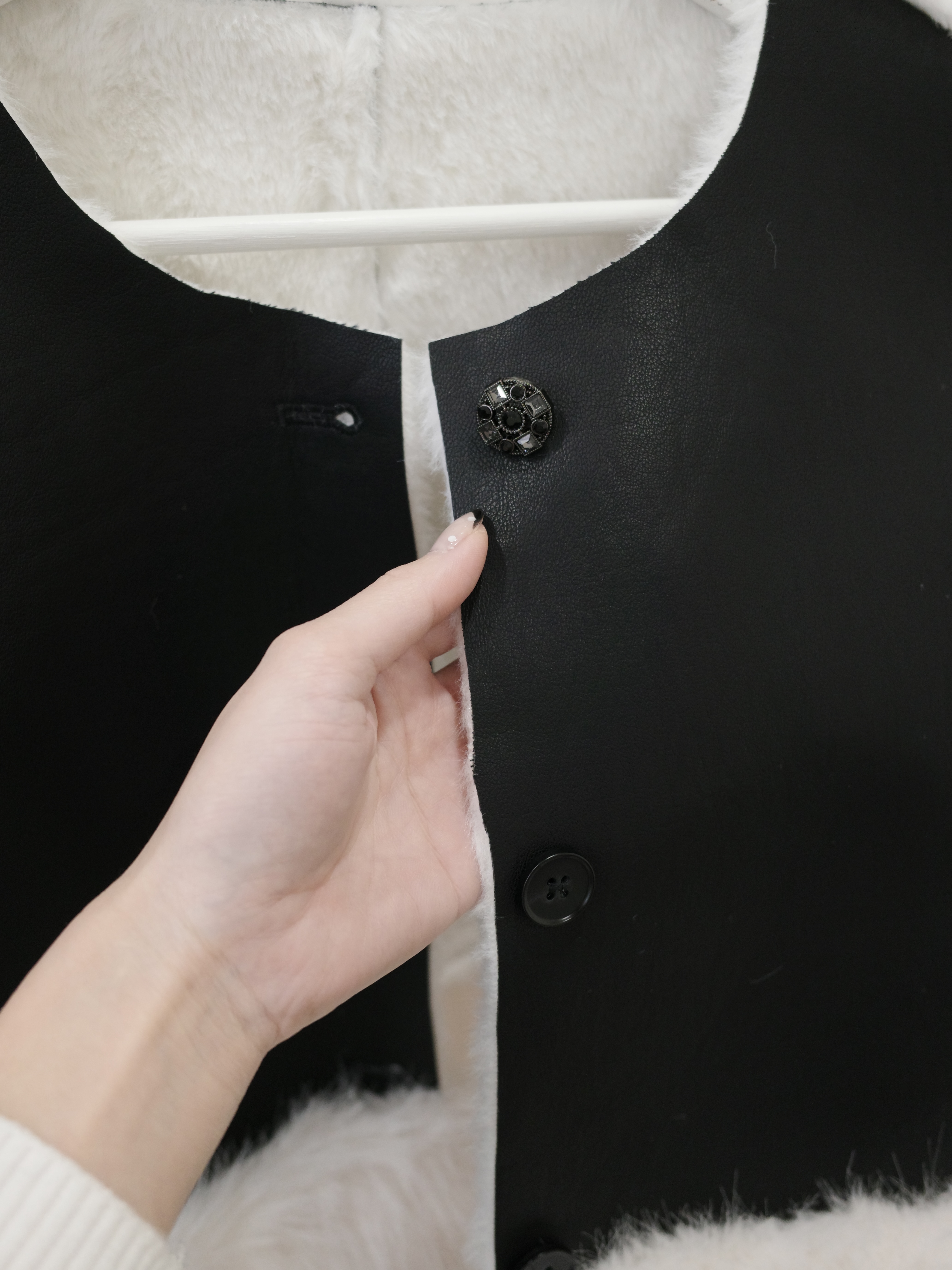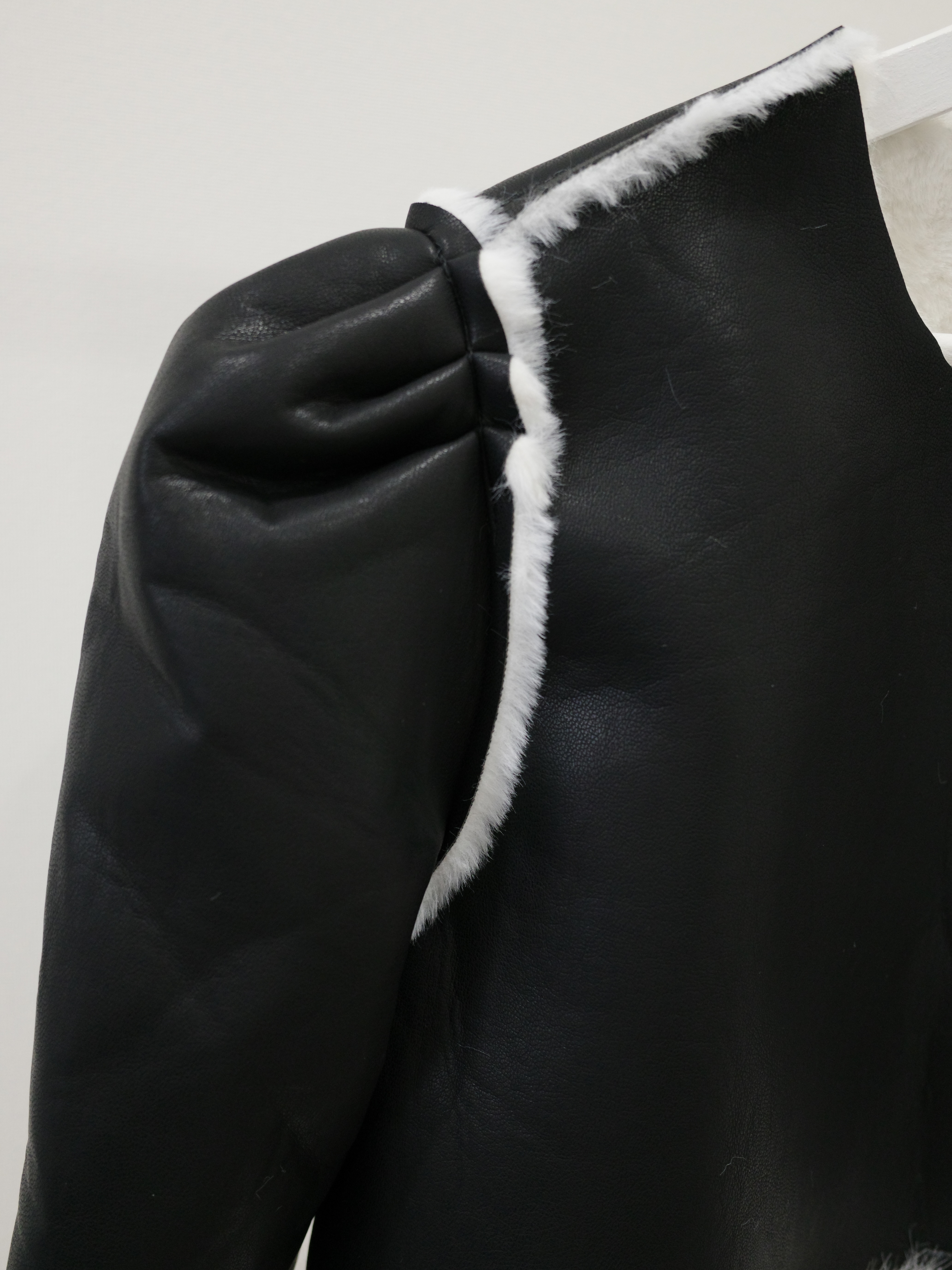 リアルファー顔負けの手触りの良いエコファーがあしらわれたムートン調ジャケット。