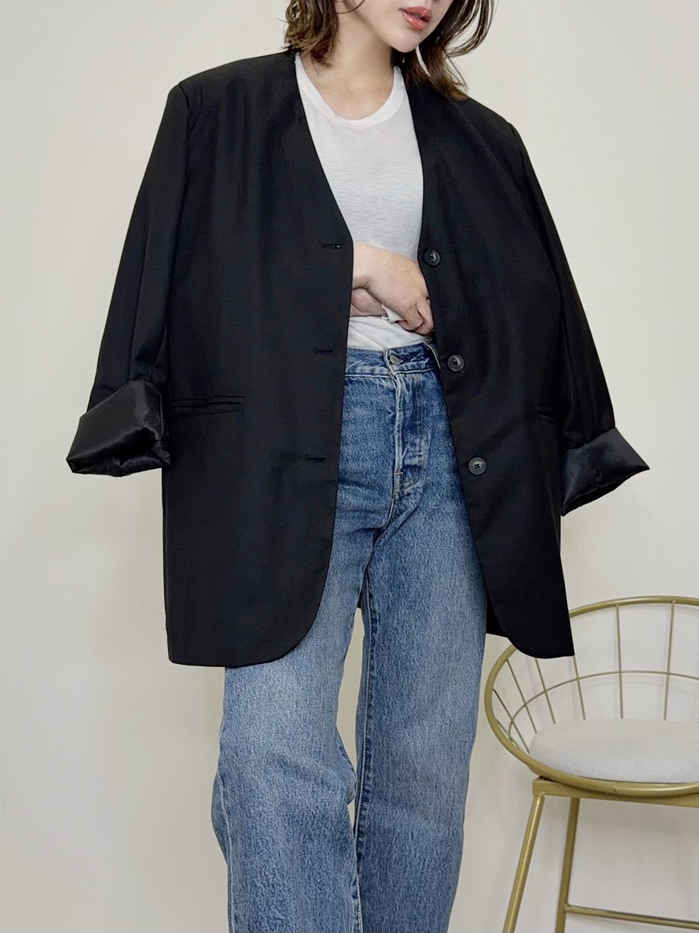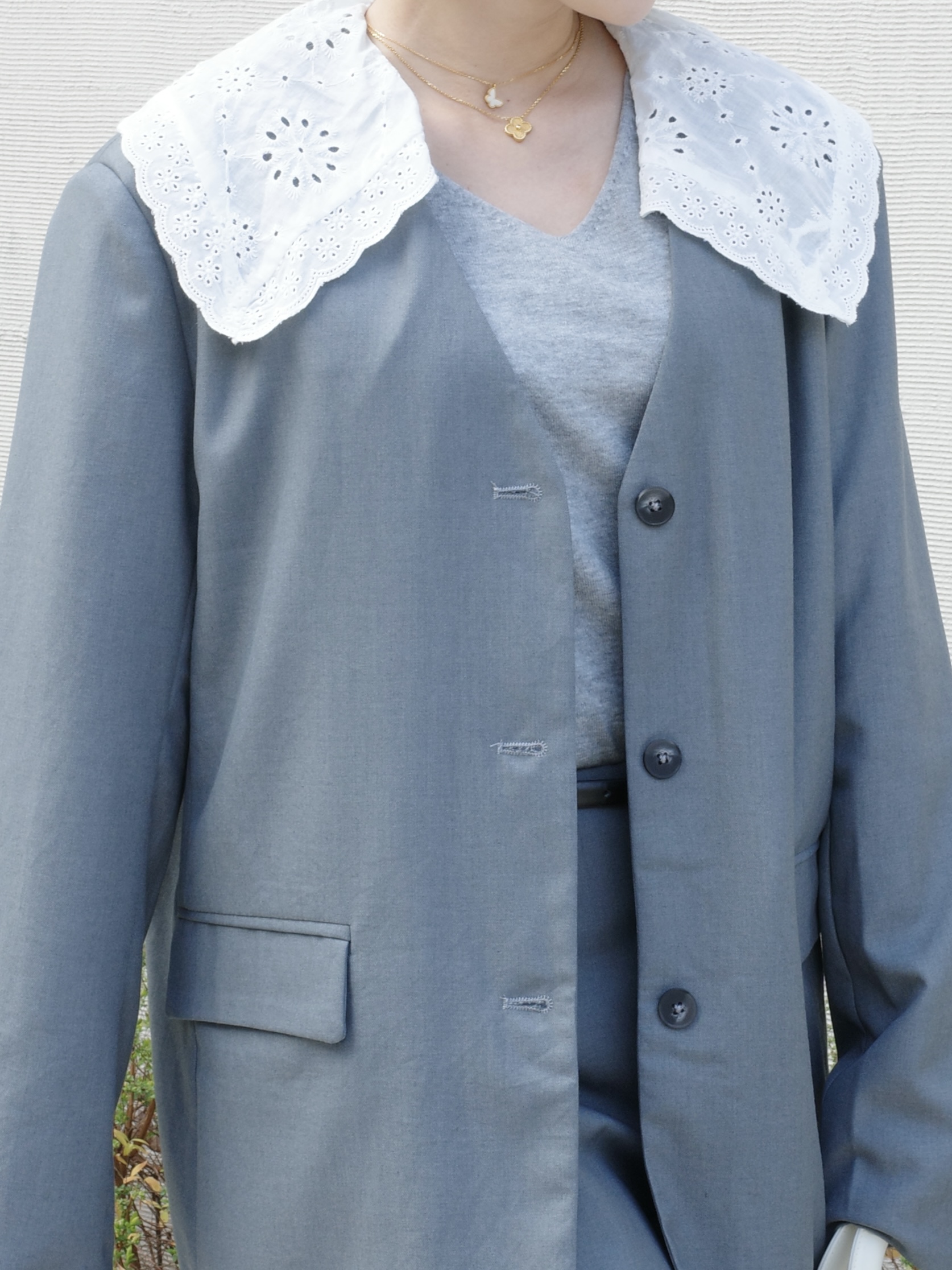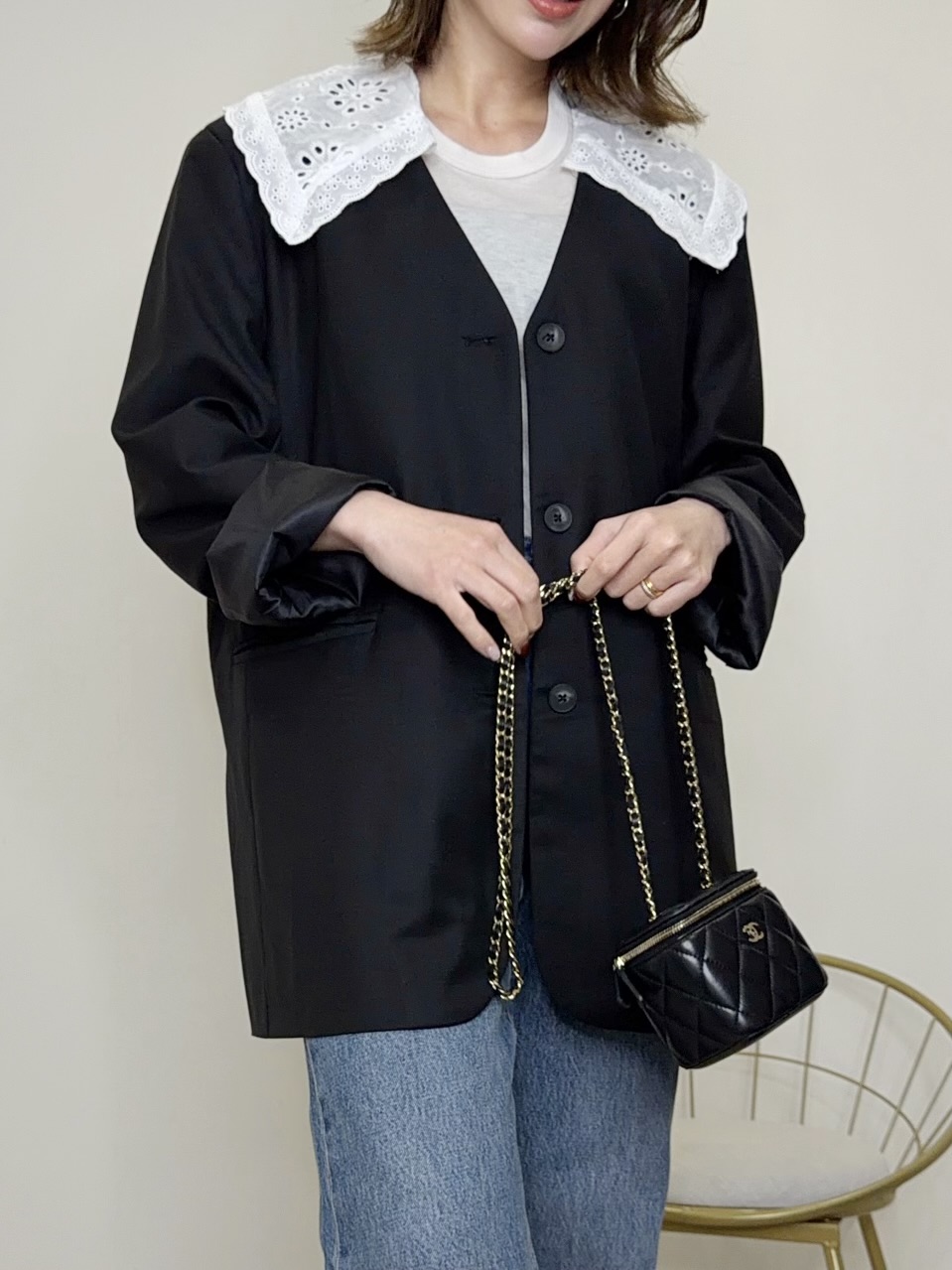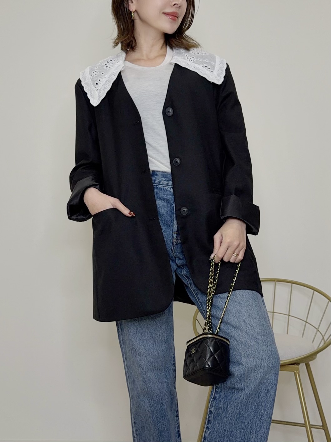 襟は取外し可能なのでシンプルなジャケットとしても着用可能◎