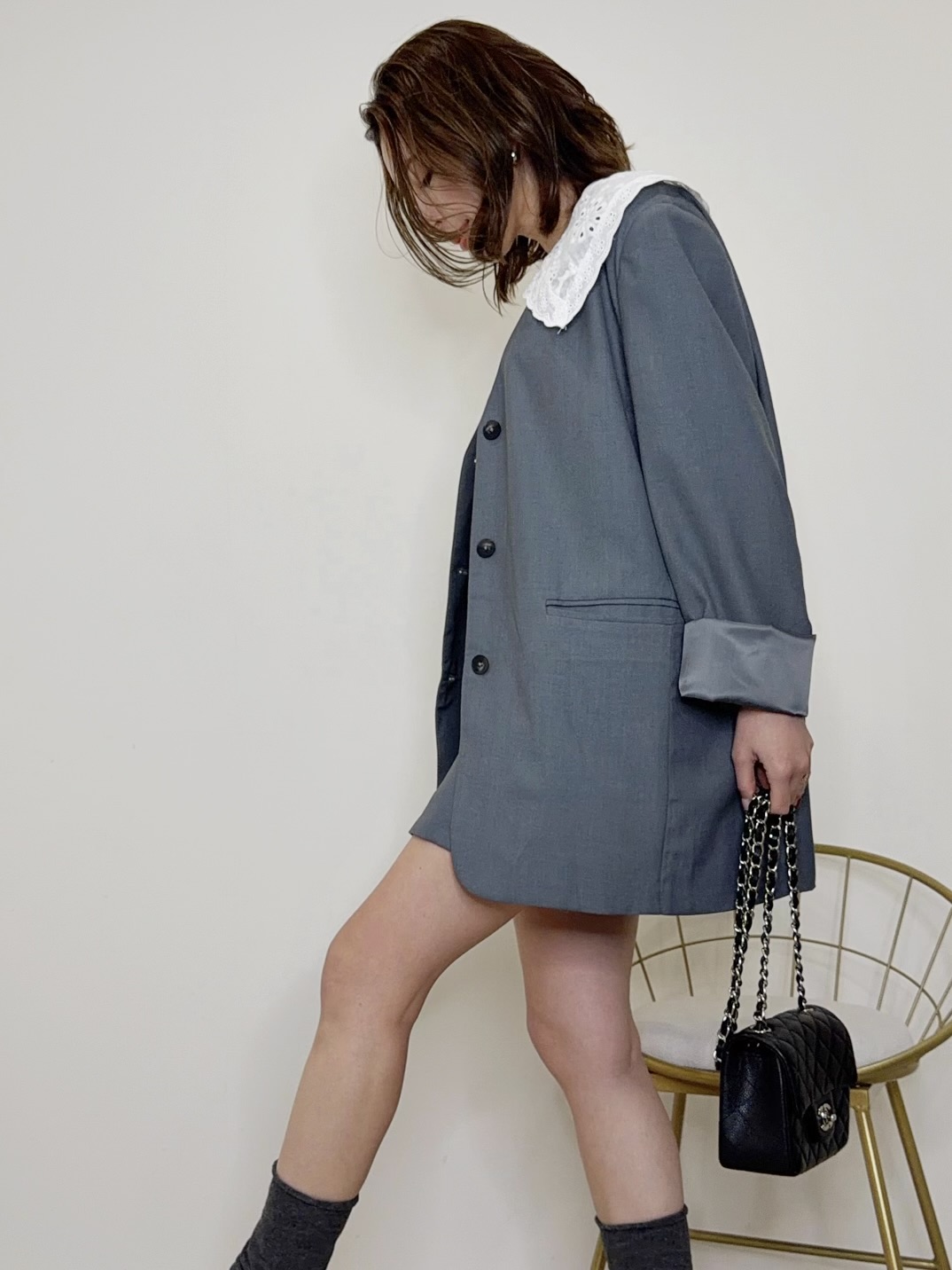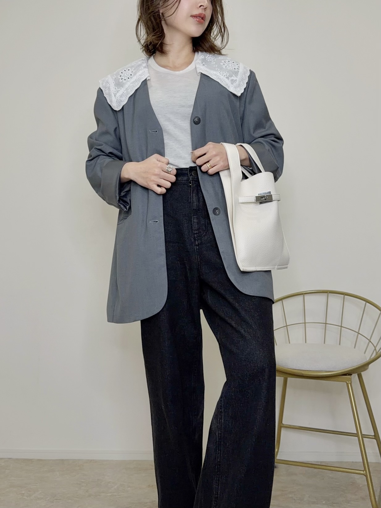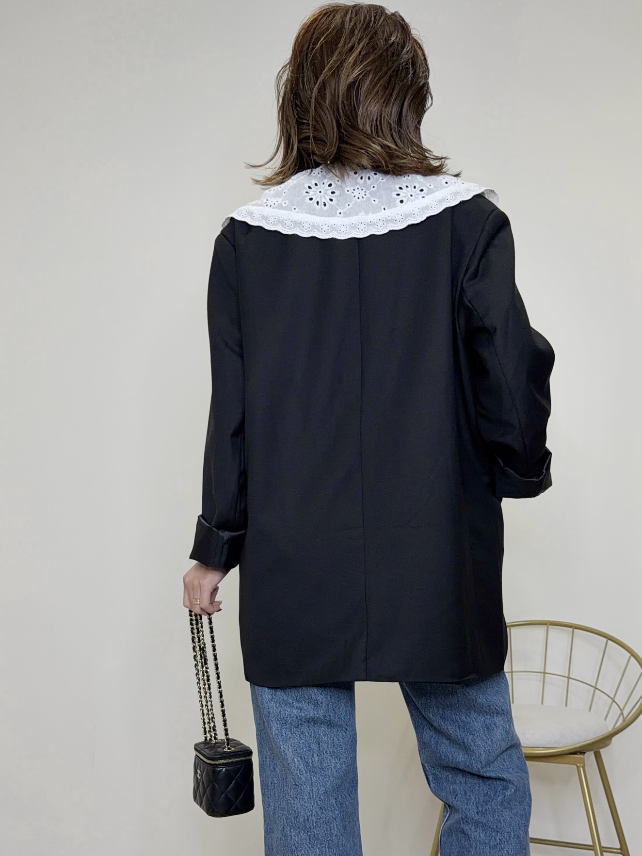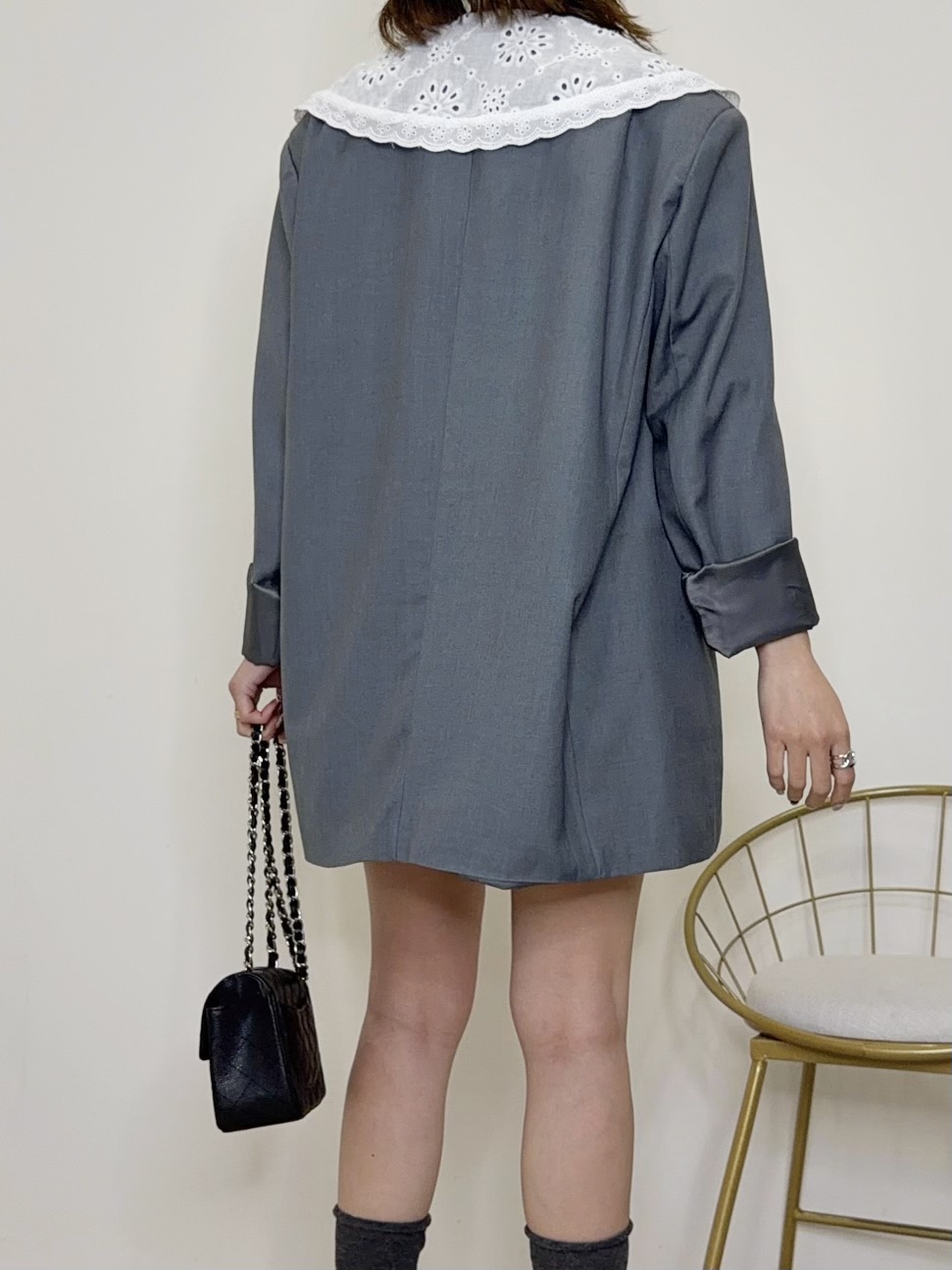 襟は取外し可能なのでシンプルなジャケットとしても着用可能◎