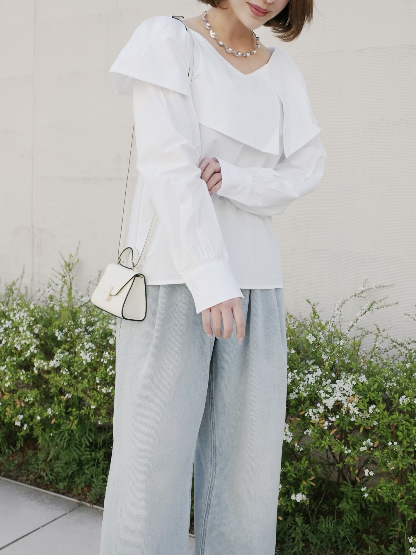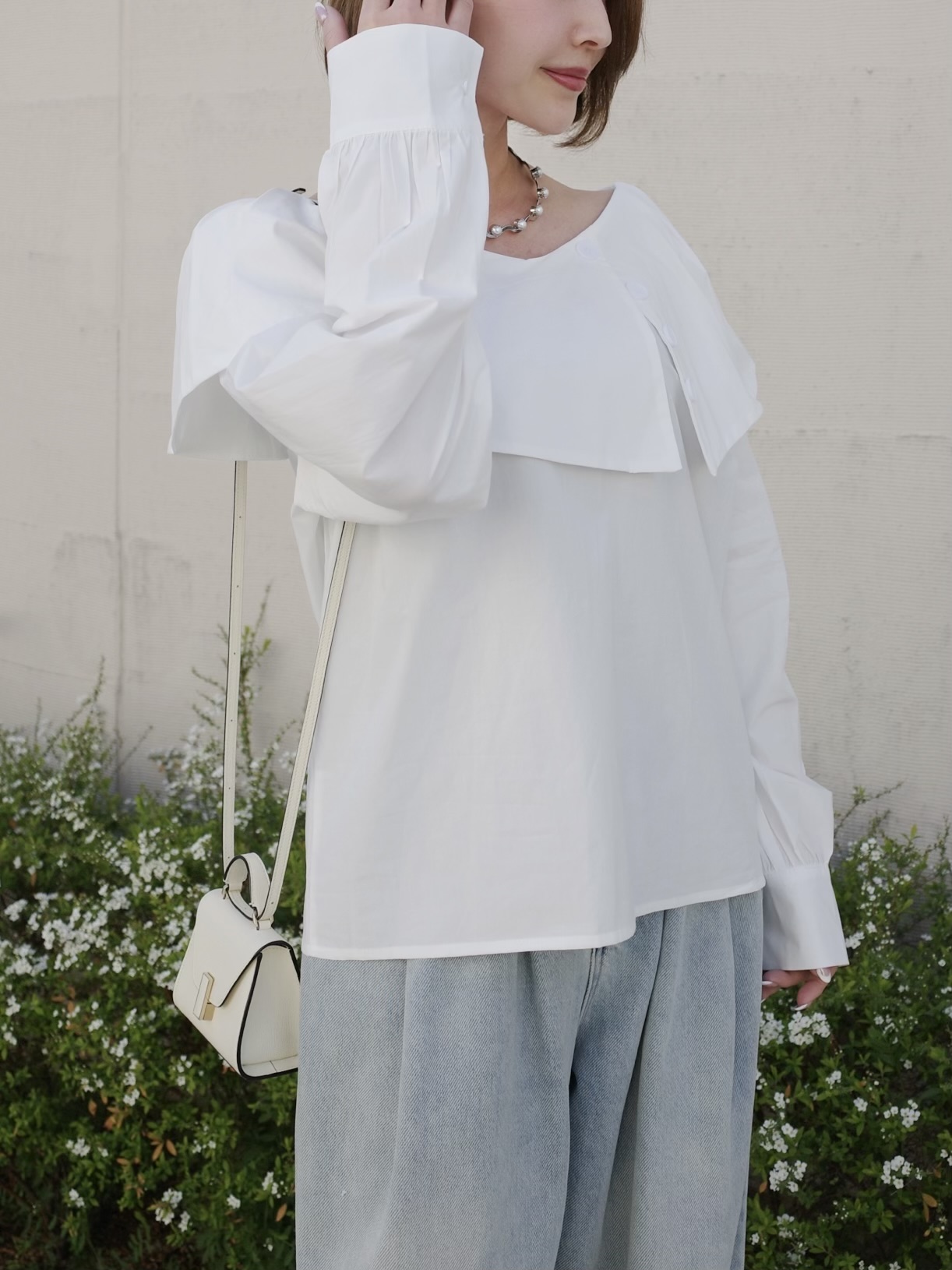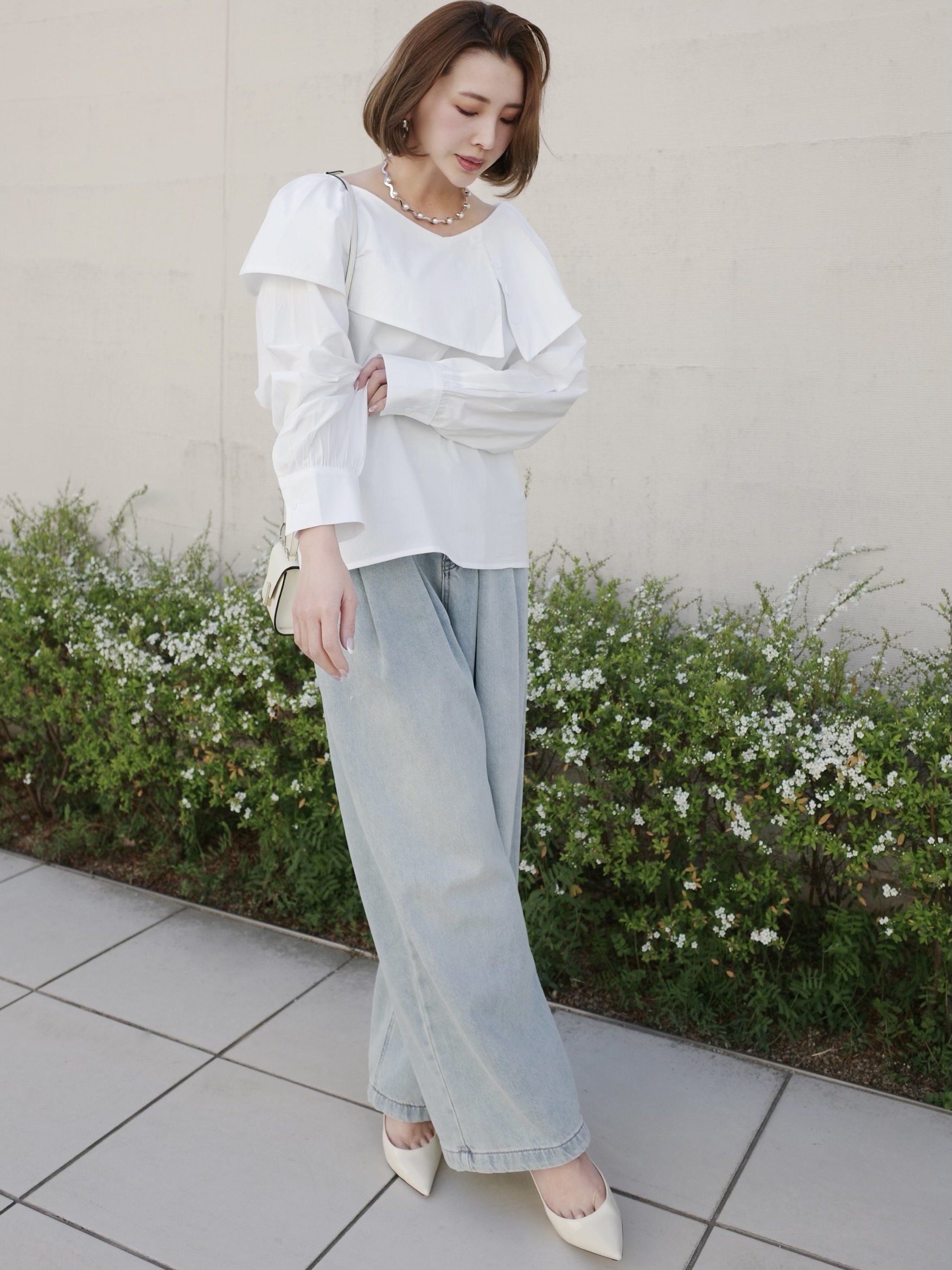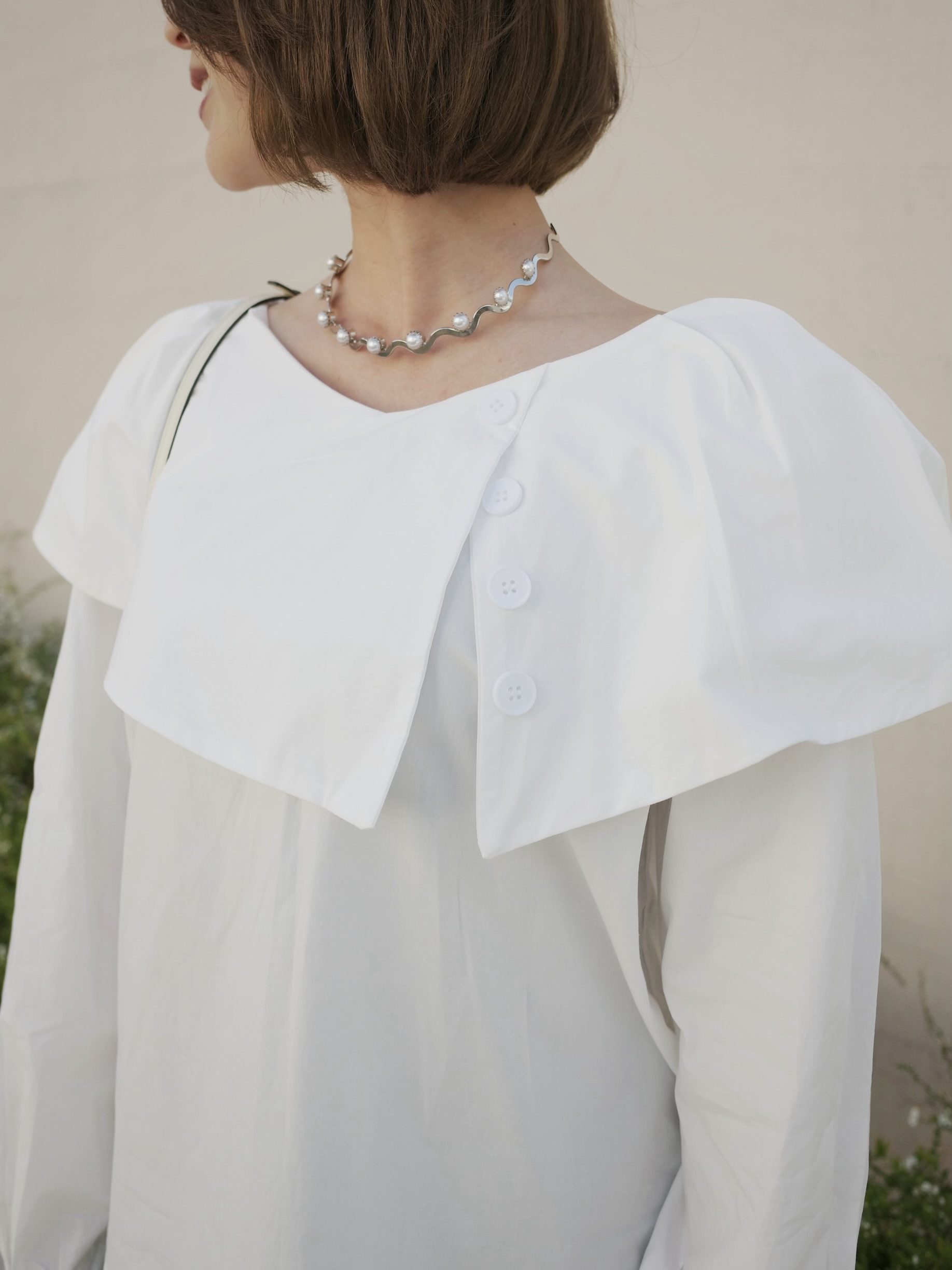 動く度軽やかに揺れる襟がポイント。