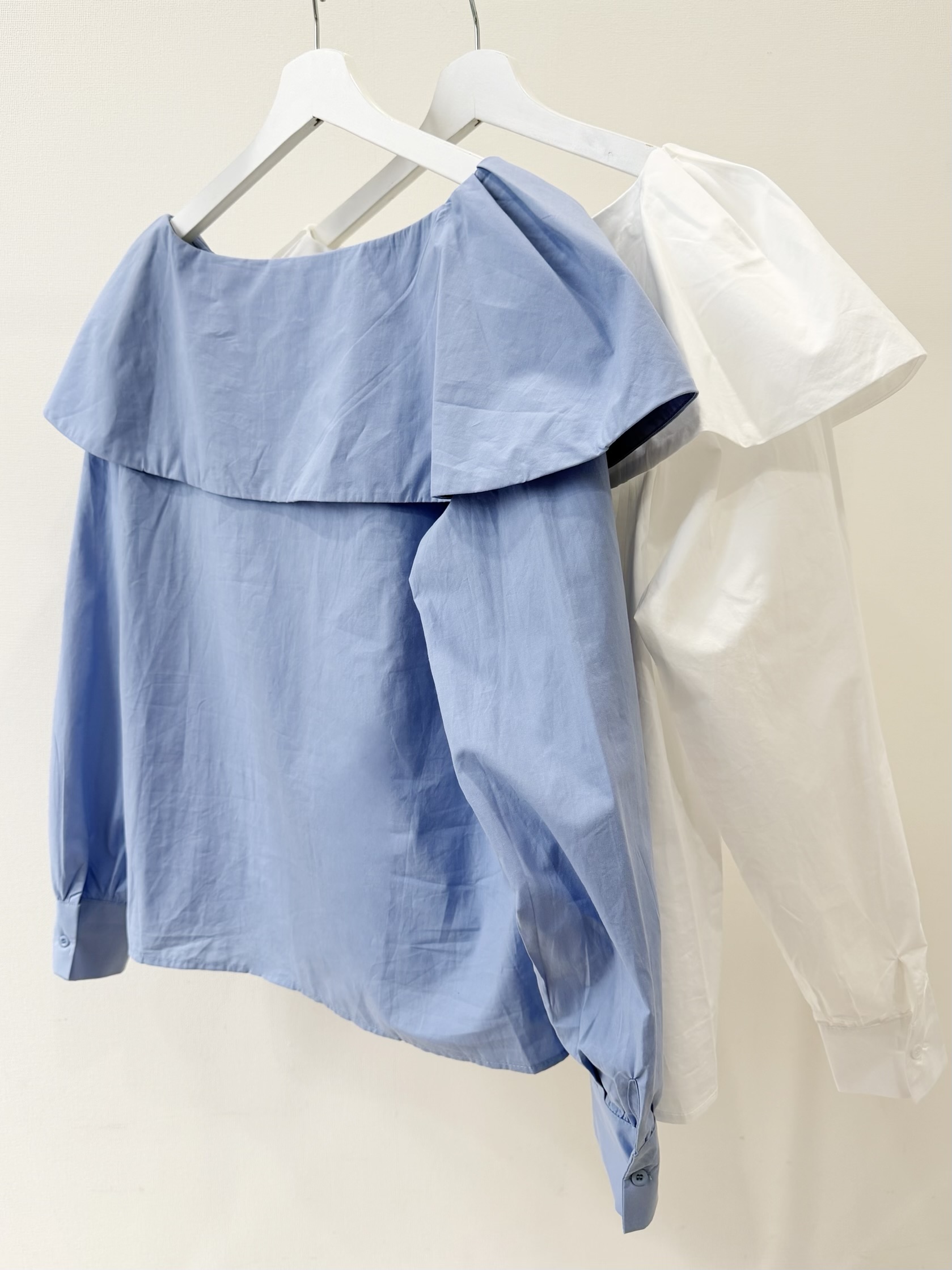 ホワイトと落ち着いた色味のサックスブルーの2カラー展開です。