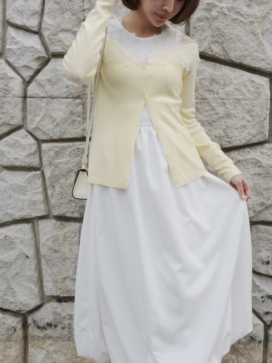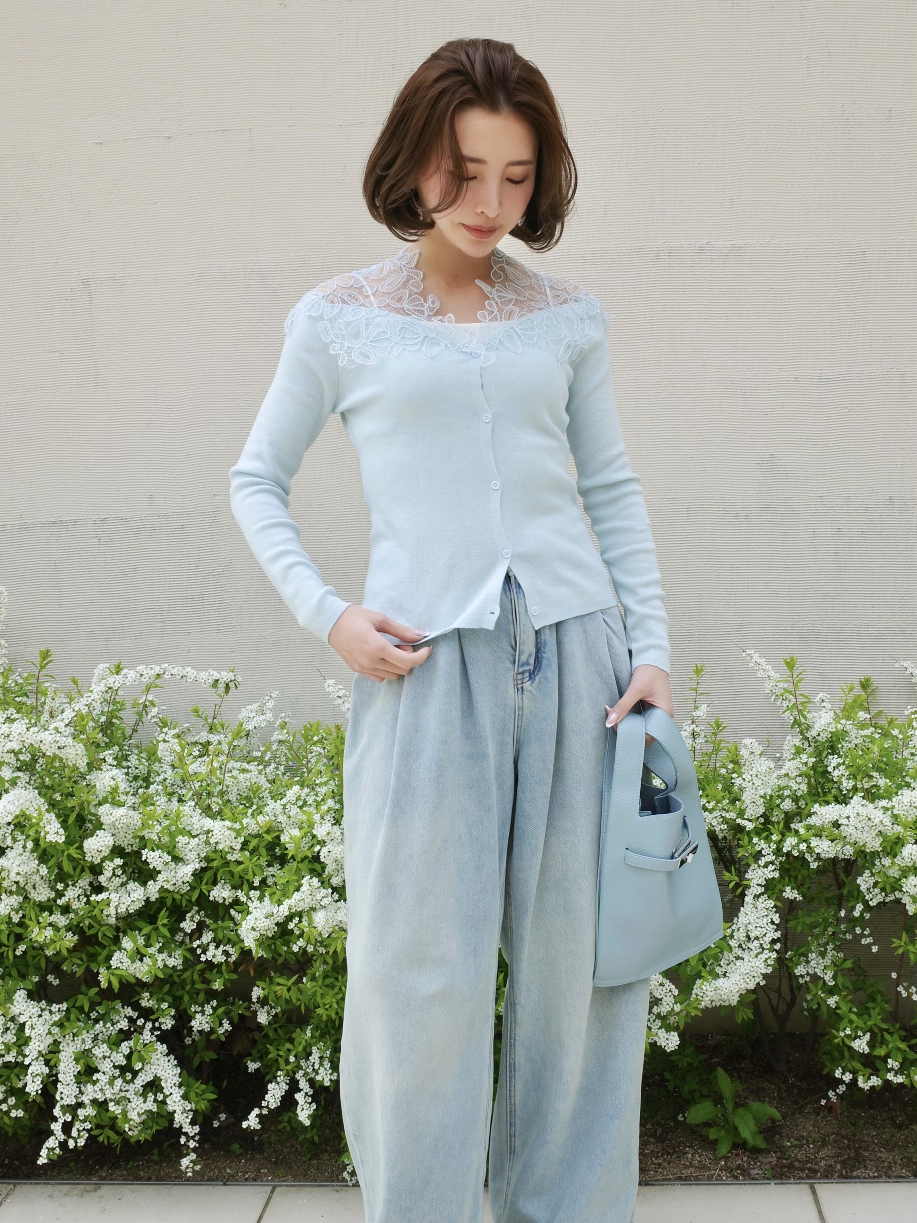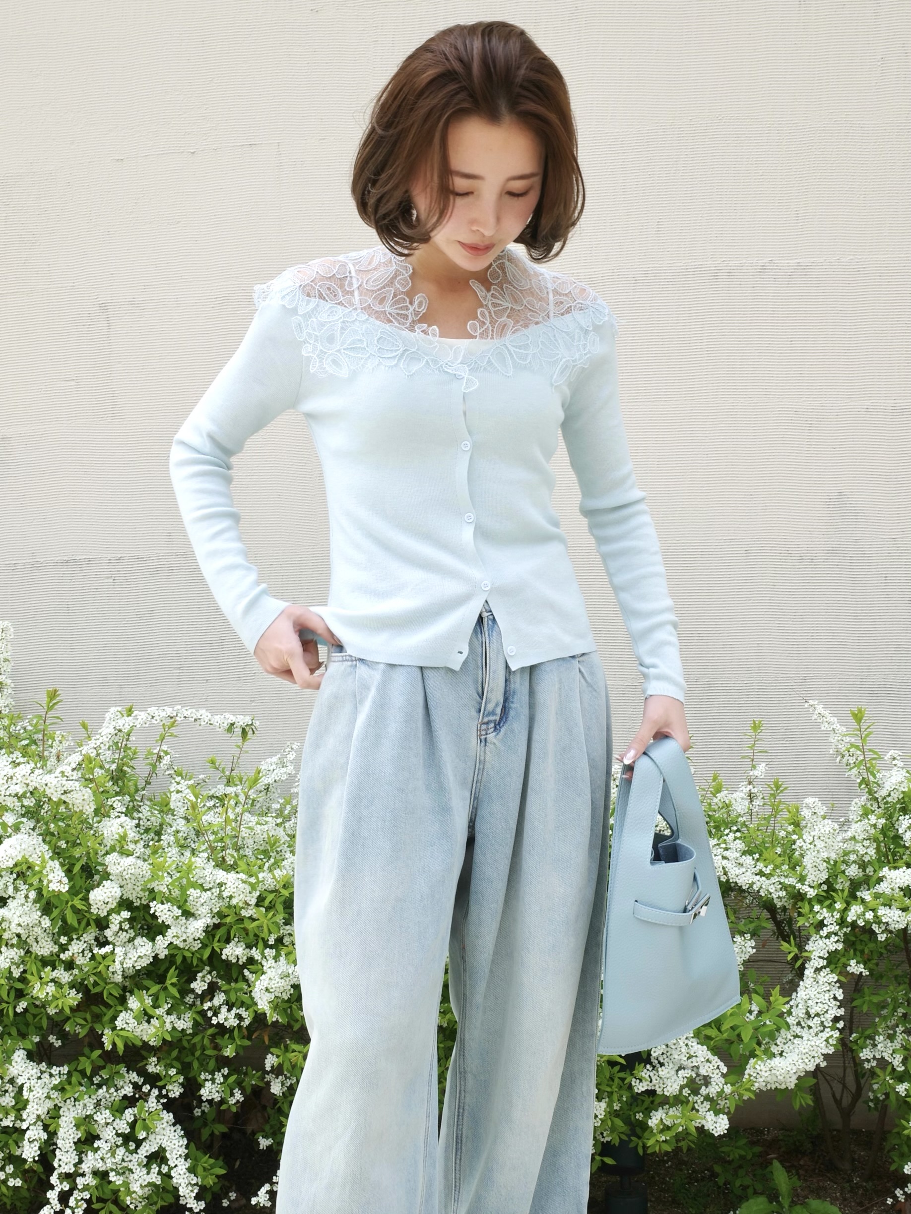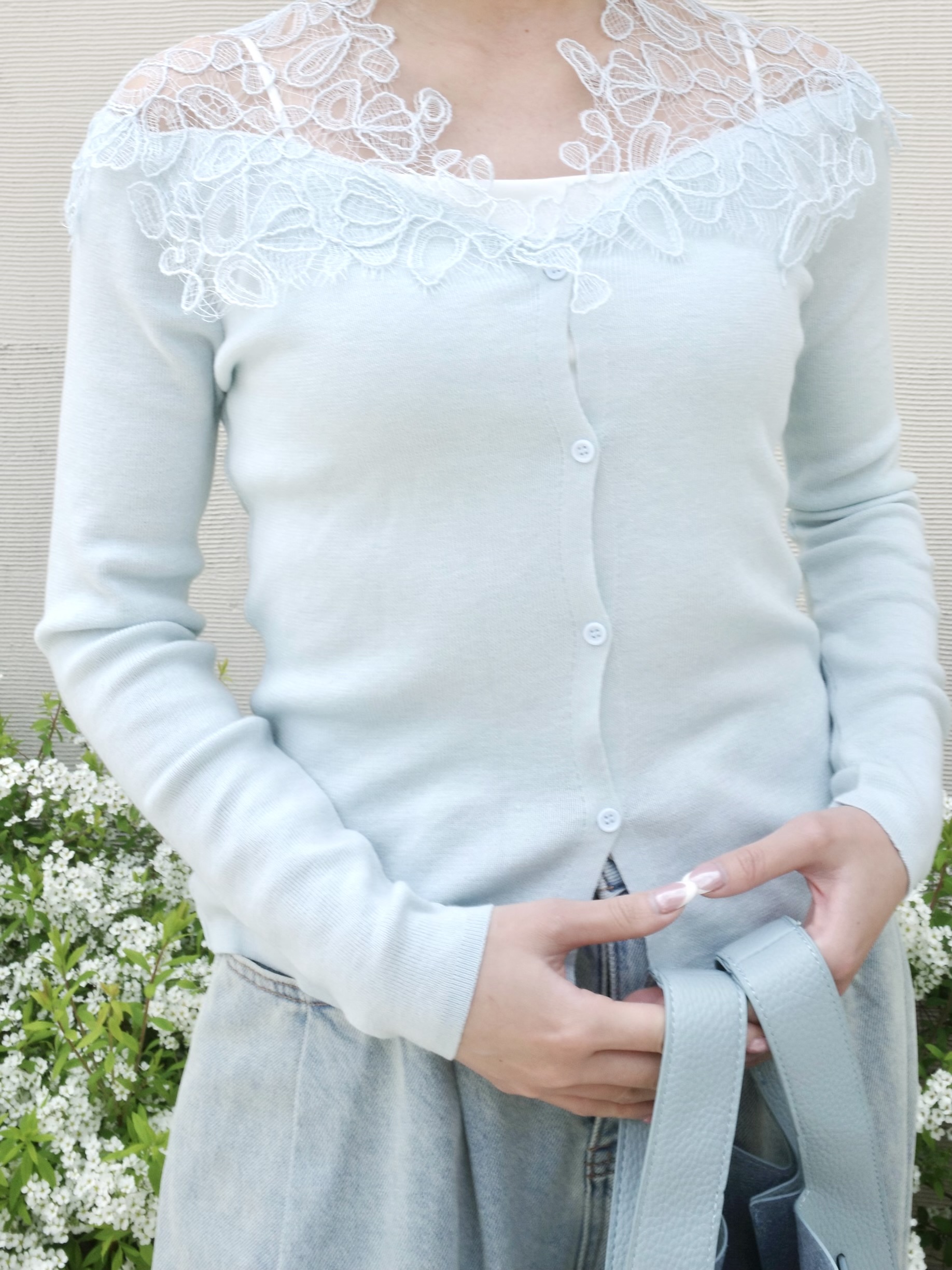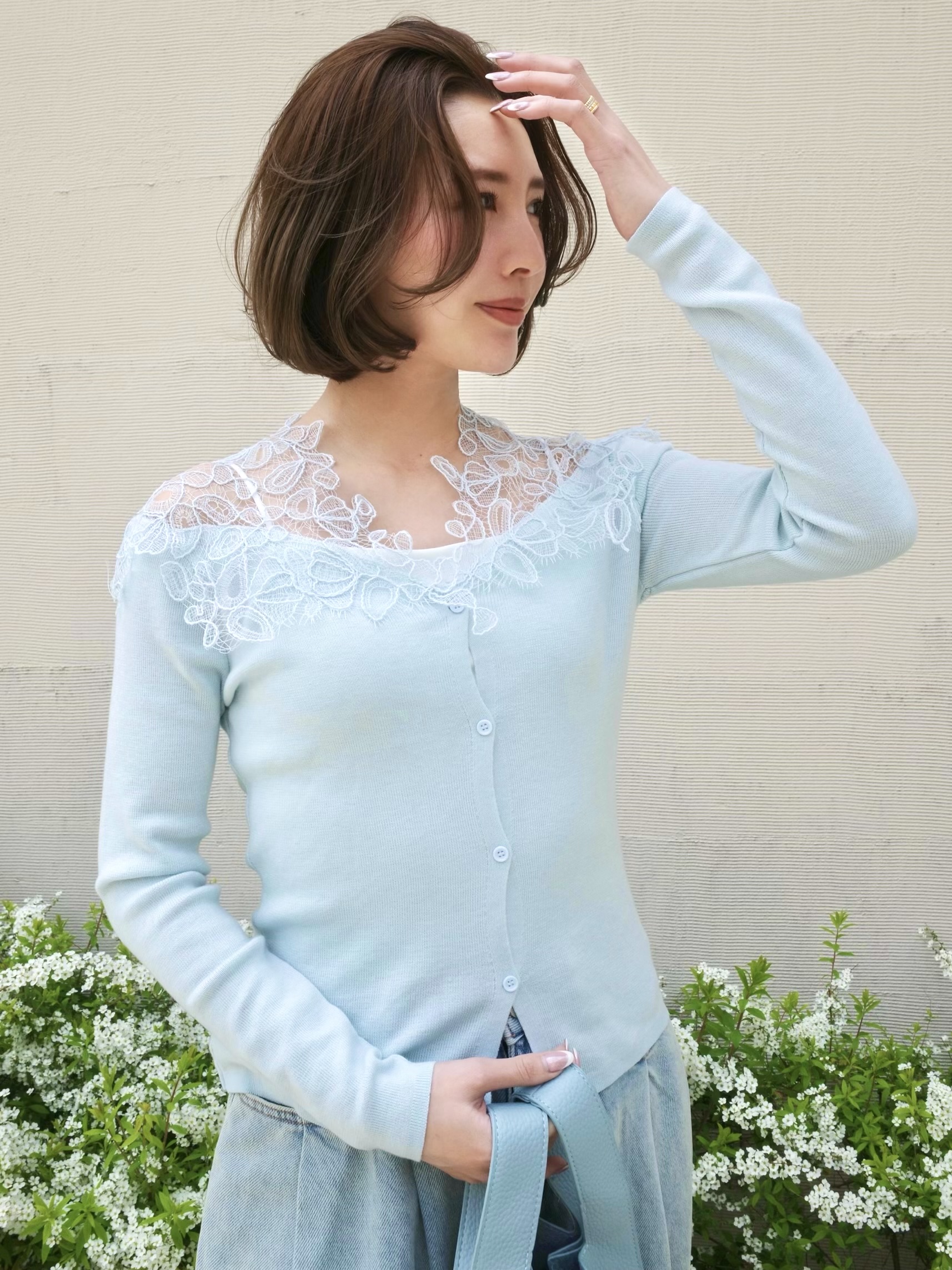 着るだけで春ムードが高まるレースがあしらわれたカーディガン。