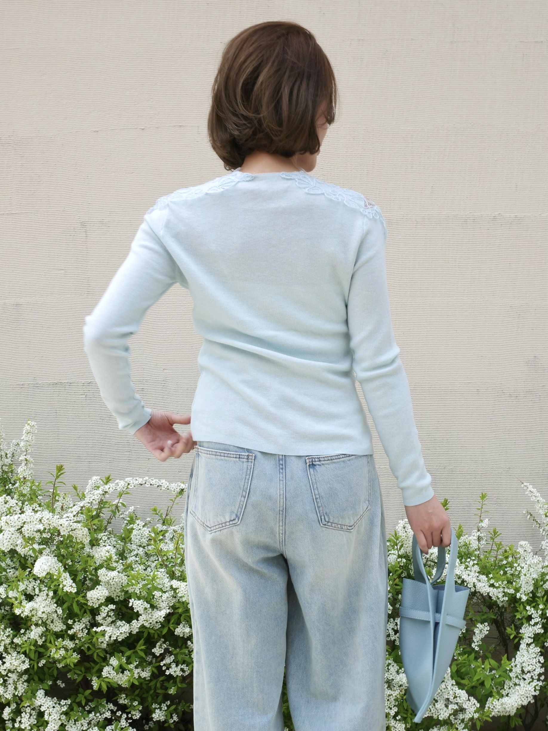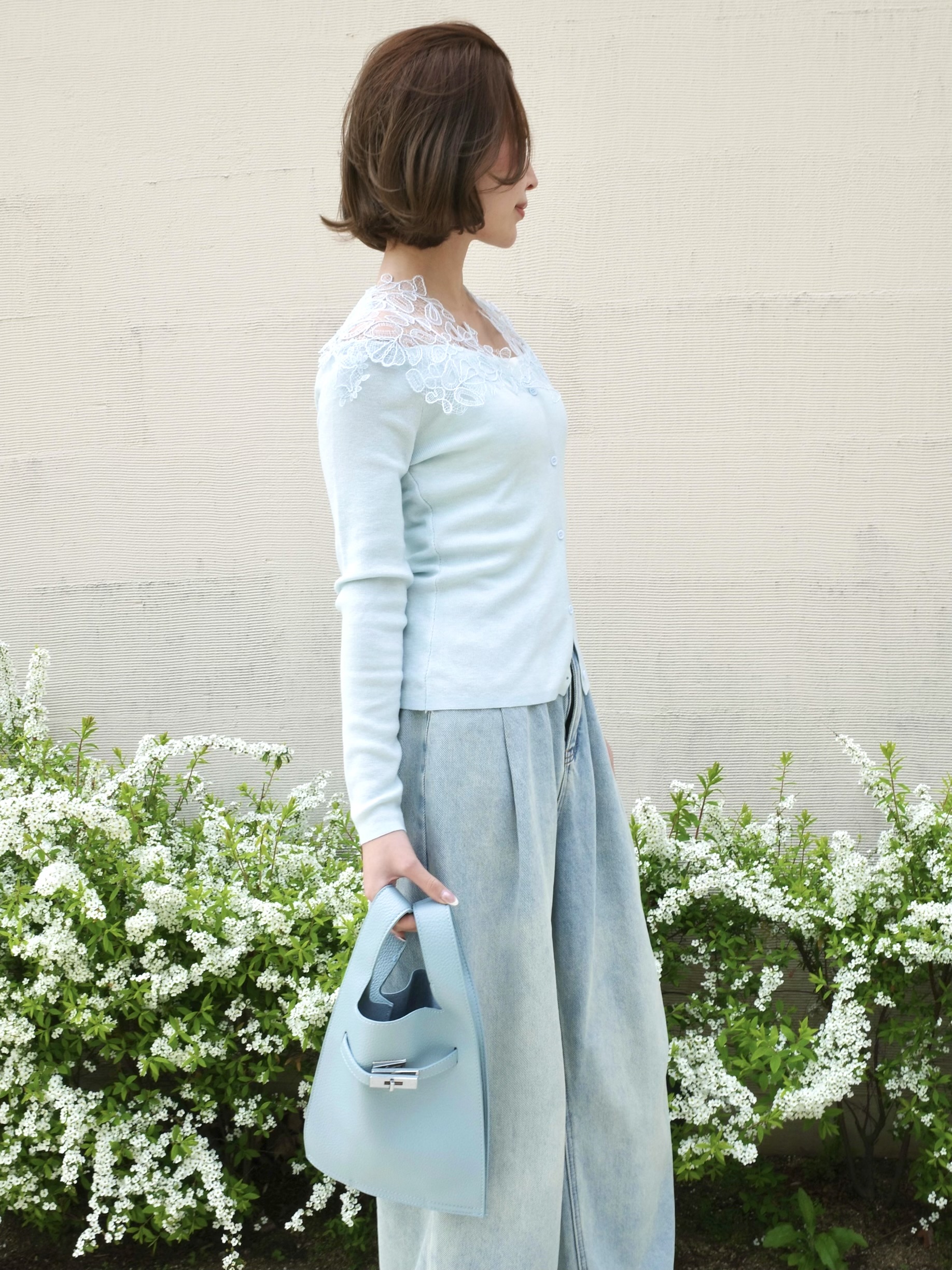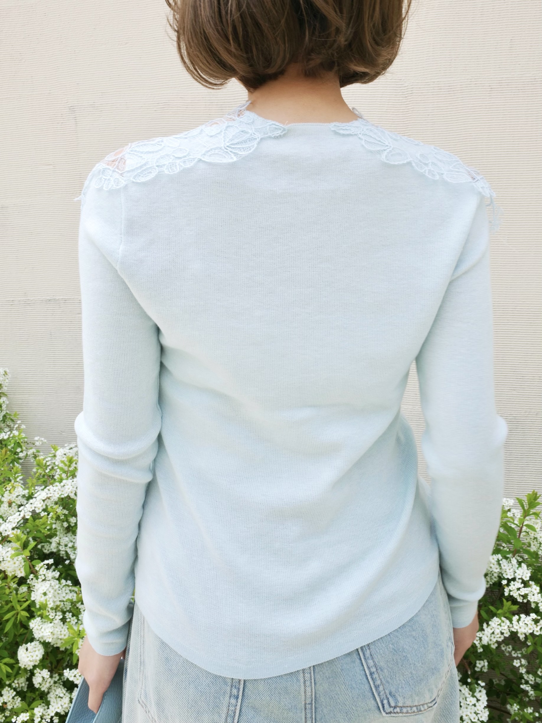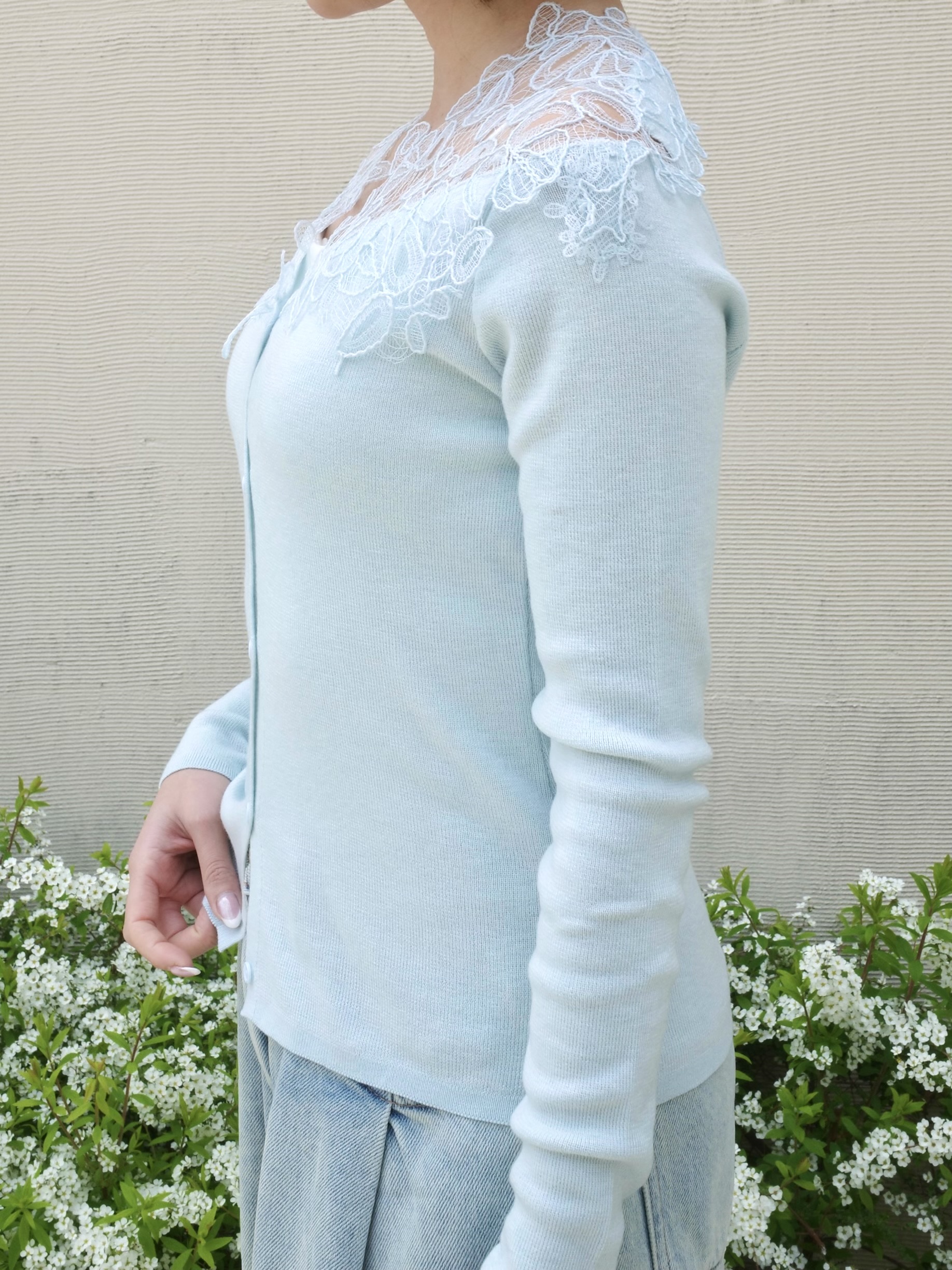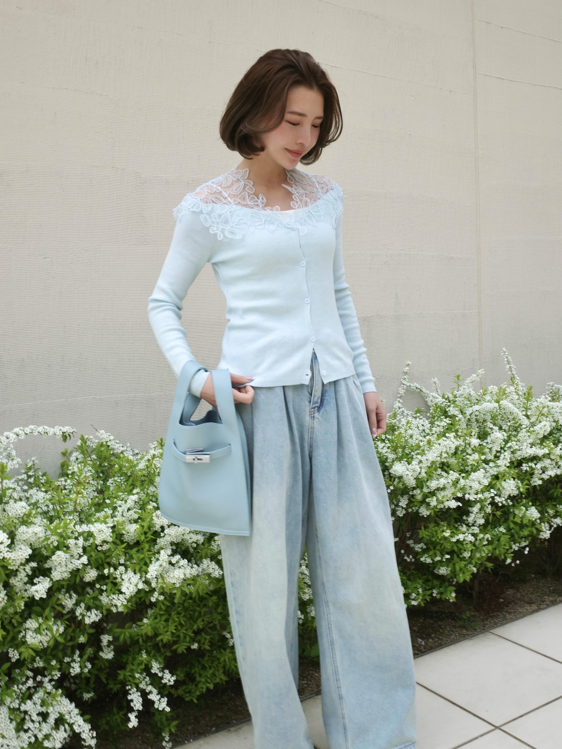 着るだけで春ムードが高まるレースがあしらわれたカーディガン。