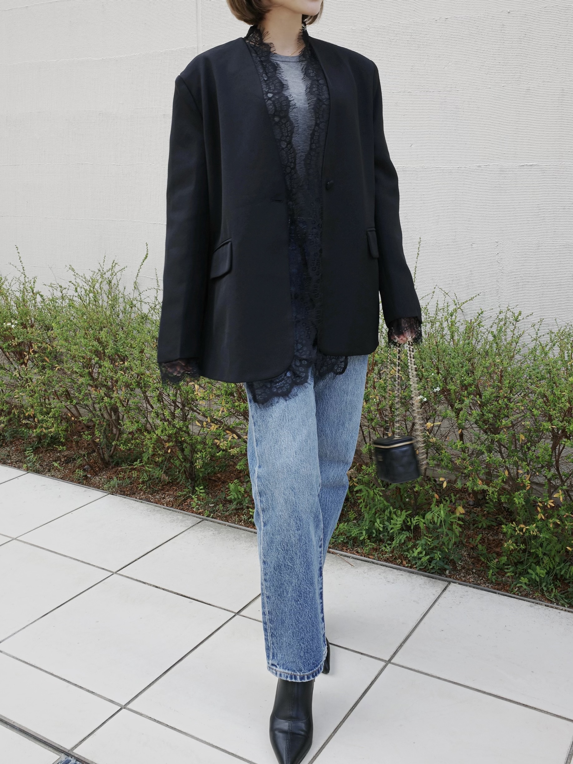【ご好評につき再入荷♡】レース使いがフェミニンな雰囲気を演出するきれい目ジャケット。