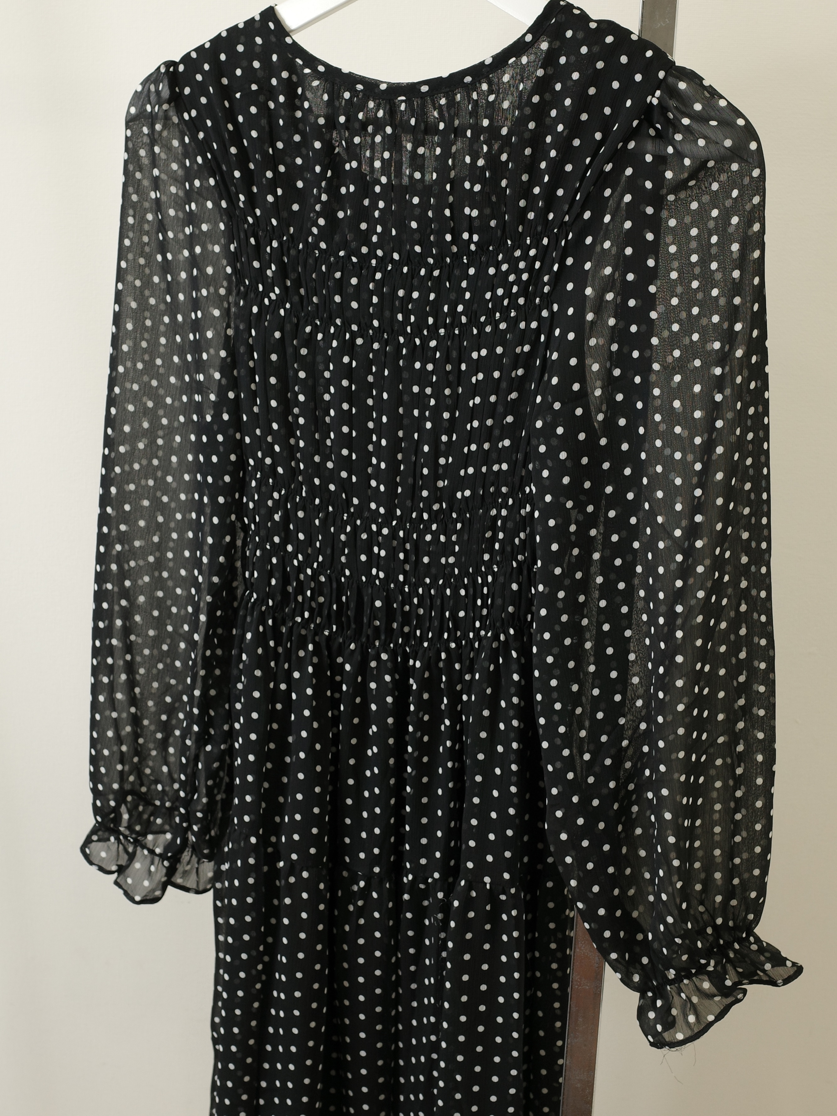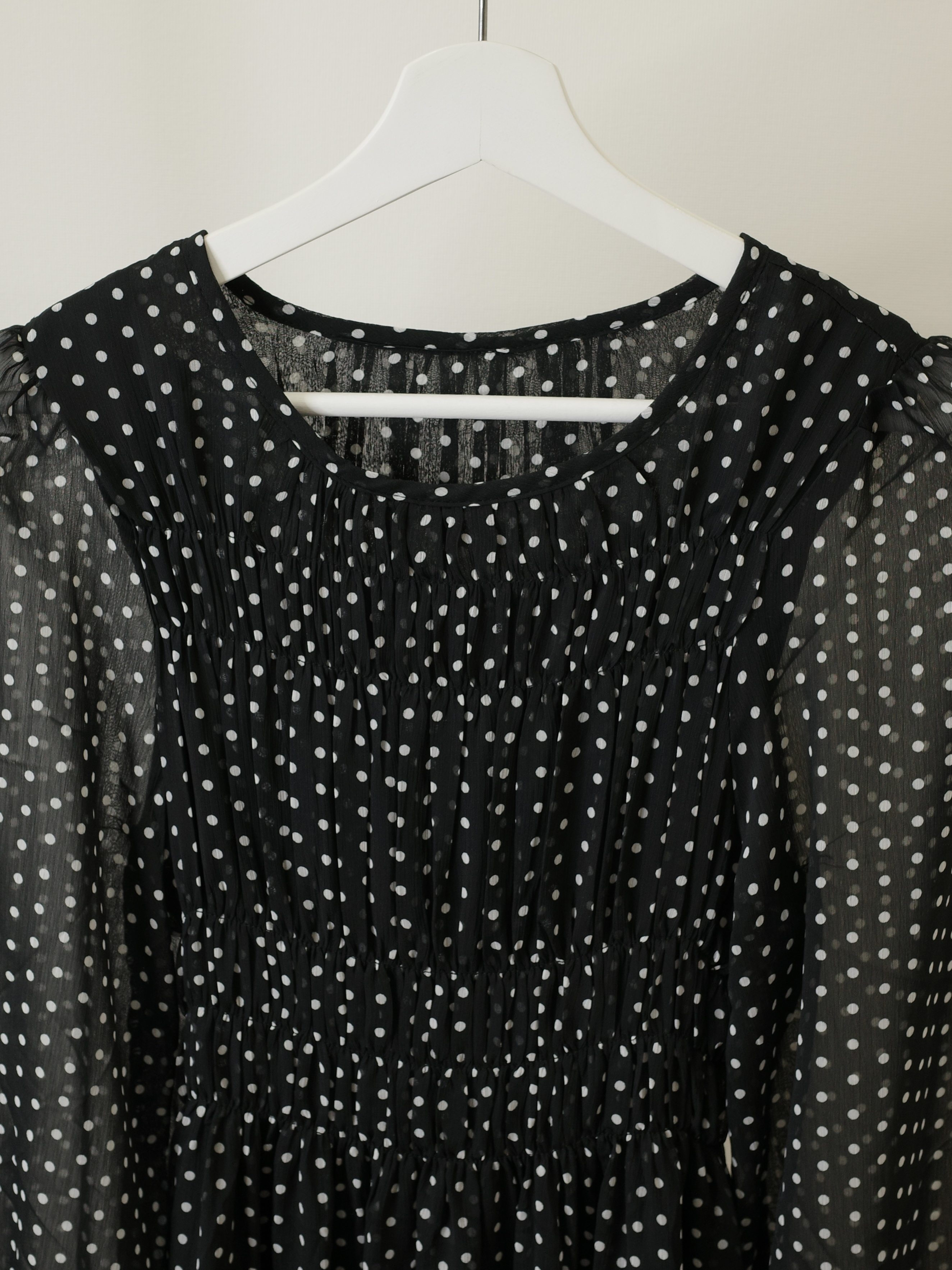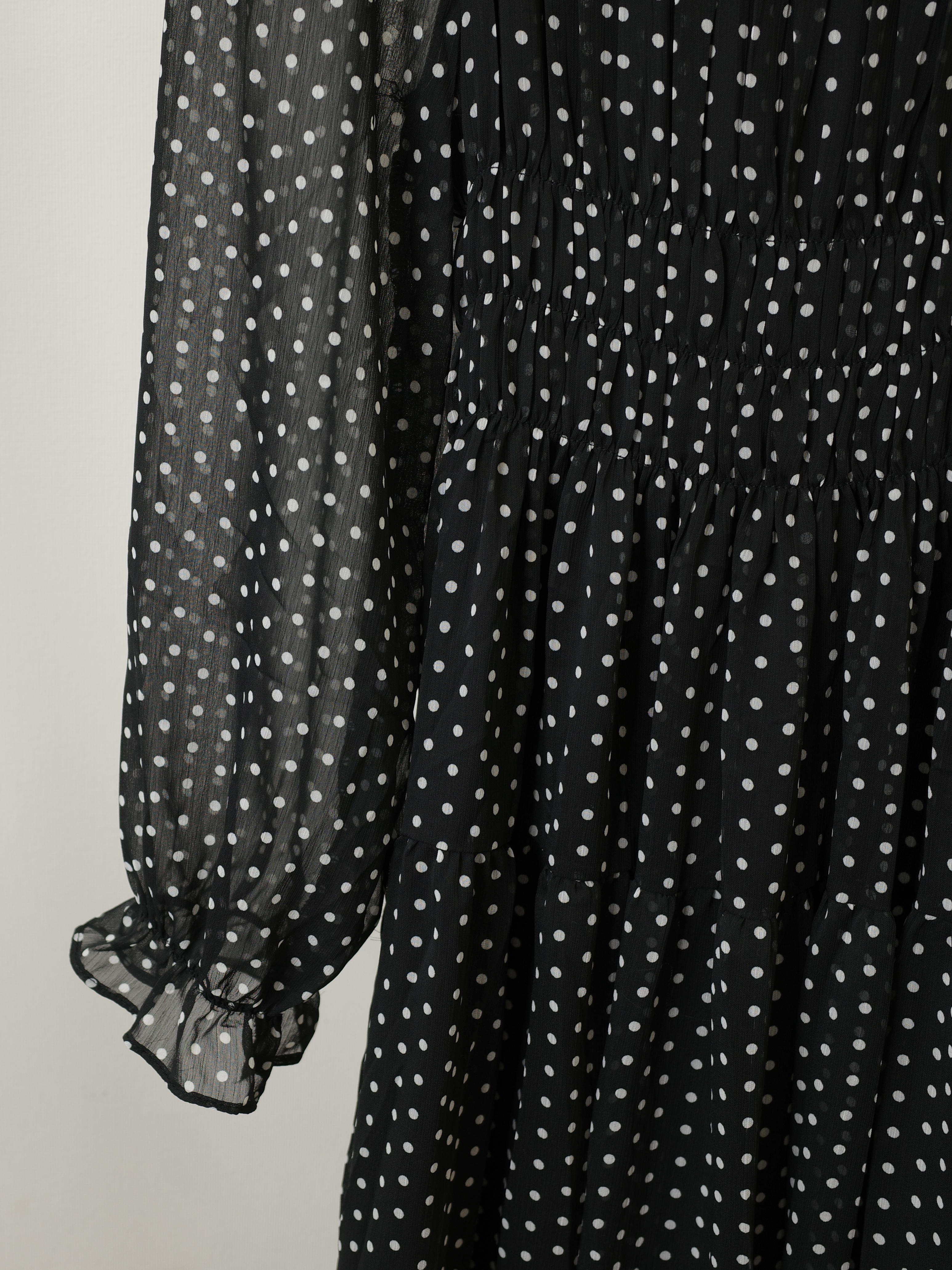クラシカルで上品な雰囲気のドット柄ワンピース。身頃部分のギャザーでルーズになりすぎず、きちんと感を演出します。とにかくストレスフリー着心地♡身体のラインを拾わない、ゆるシルエットで細見えも叶えます。ほんのり肌が透ける軽やかなシフォン素材が春夏にぴったりの一枚です。STAFF:158cm【サイズ】(平置き採寸)着丈118cm 身幅39cm(ギャザー部分はゴムの為伸縮) 肩幅33cm 袖丈59cm 【素材】ポリエステル100%■クロネコ代金後払いをご利用のお客様■商品到着後に請求書(払込用紙)が到着します。14日以内にお支払いをお願いします。全国の主要なコンビニで、請求書をレジに持っていくだけでお支払いが可能です。全国の郵便局でも同じ請求書でお支払いできます。※ご請求書が圧着ハガキタイプの場合、郵便局でのお支払いはできません。※弊社の銀行口座宛にお振込頂くものでは御座いません。ご注意下さい。
