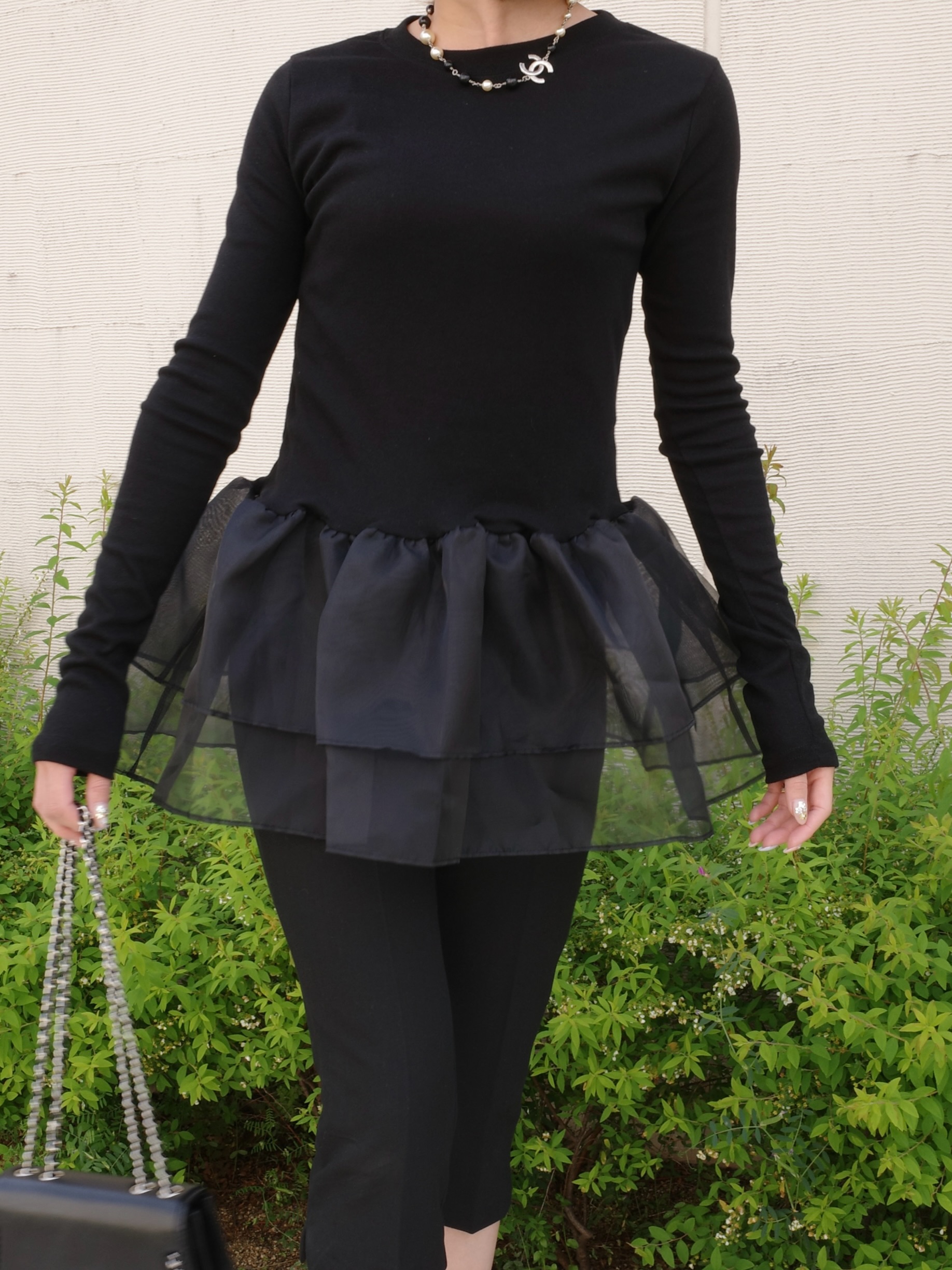※こちらの商品を単体で1点のみご注文頂いた場合、ネコポス配送(385円)にて発送が可能です。ご希望の方はご注文時にメッセージ欄にネコポス希望とご記入をお願いします。オーガンジーの立体的なフリルが目を引くトップス。ボディ部分は肌にしっとりと馴染む伸びの良い着心地のいい素材。ペプラムデザインが大人可愛い1枚です。シンプルなボトムスに合わせるだけで視線を奪う華やかなコーディネートが完成。ブラックとホワイトの2カラーです。ペプラムシルエットとヒップの隠れる着丈で体型もカバーしてくれます。STAFF:158cm【サイズ】(平置き採寸)着丈65cm 身幅51cm 袖丈68cm【素材】本体部分 ポリエステル60%,レーヨン35%,ポリウレタン5% フリル部分 ポリエステル100%■クロネコ代金後払いをご利用のお客様■商品到着後に請求書(払込用紙)が到着します。14日以内にお支払いをお願いします。全国の主要なコンビニで、請求書をレジに持っていくだけでお支払いが可能です。全国の郵便局でも同じ請求書でお支払いできます。※ご請求書が圧着ハガキタイプの場合、郵便局でのお支払いはできません。※弊社の銀行口座宛にお振込頂くものでは御座いません。ご注意下さい。