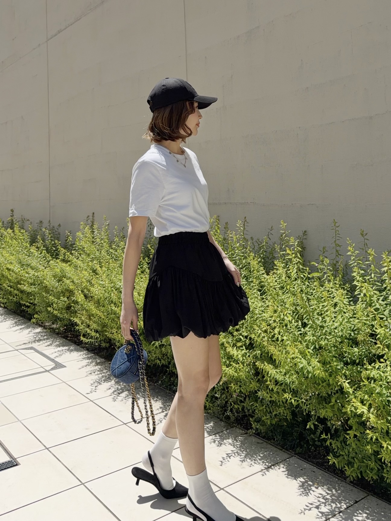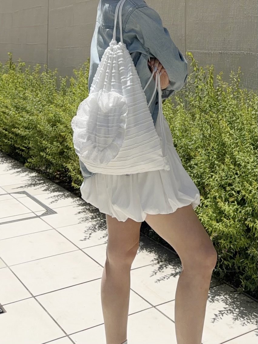 オーバーサイズのトップスに合わせて裾をチラ見せさせても可愛いです。