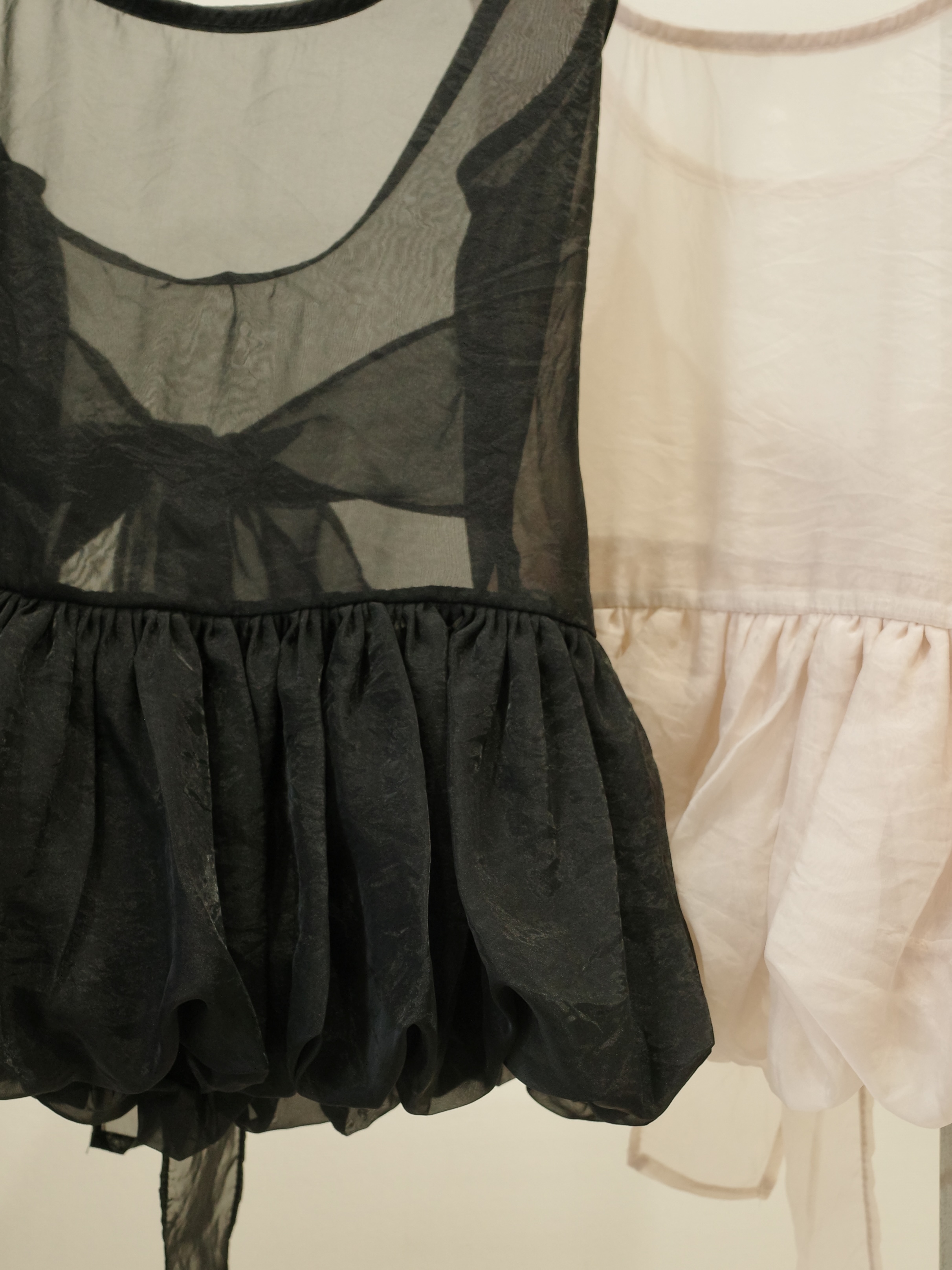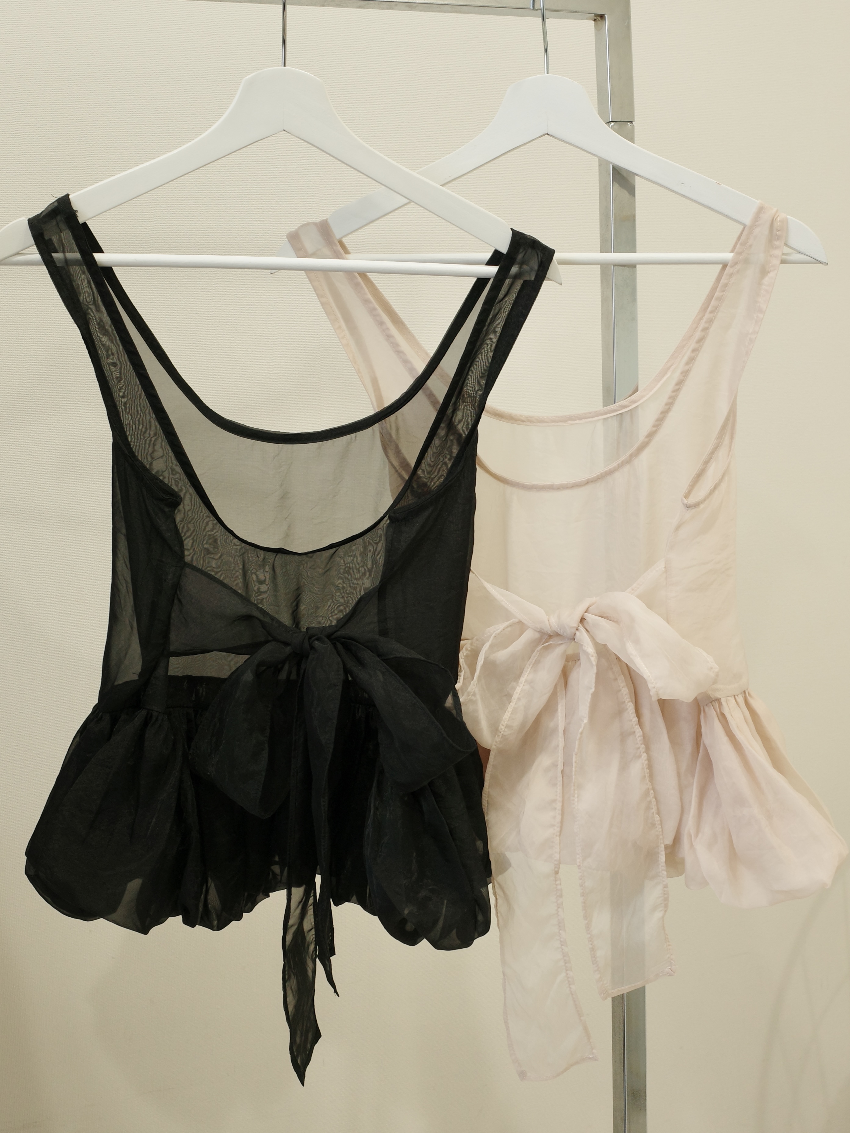 着映え間違いなしのシアー素材が涼しげなバックリボントップス。