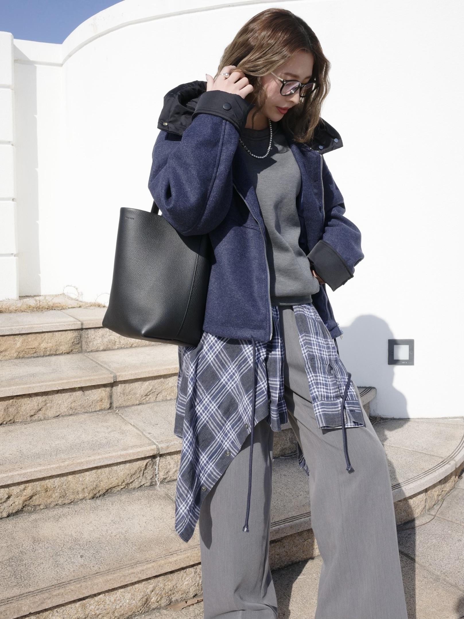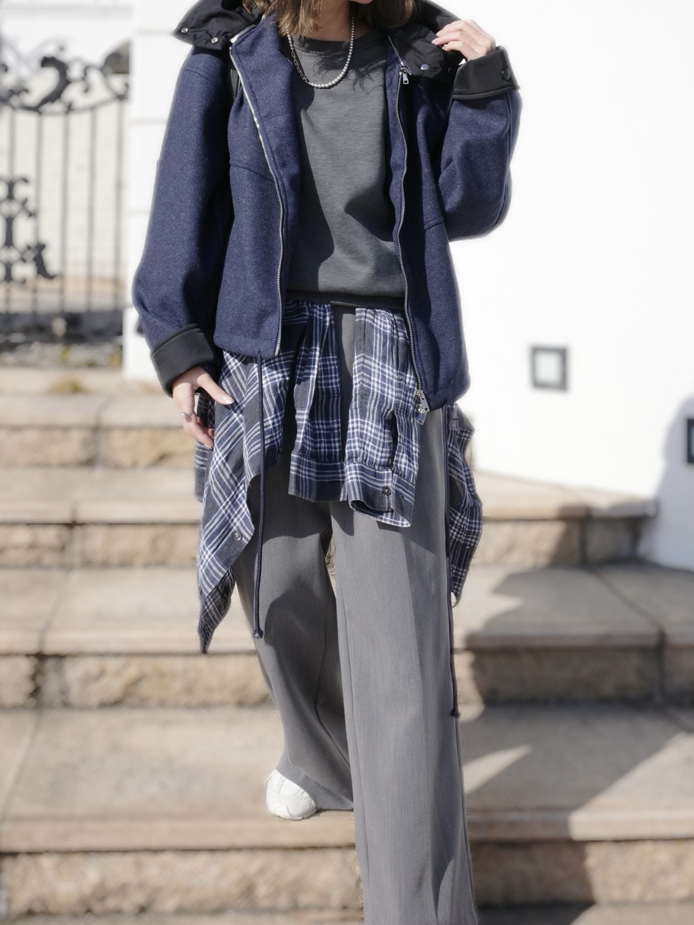 Mix chain pearl necklace(WHT/GRY)