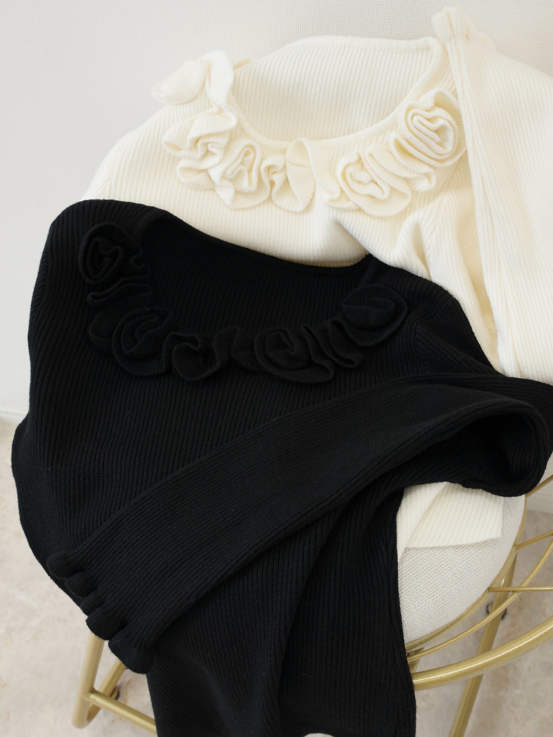 Decollete frill knit(BLK/IVO)