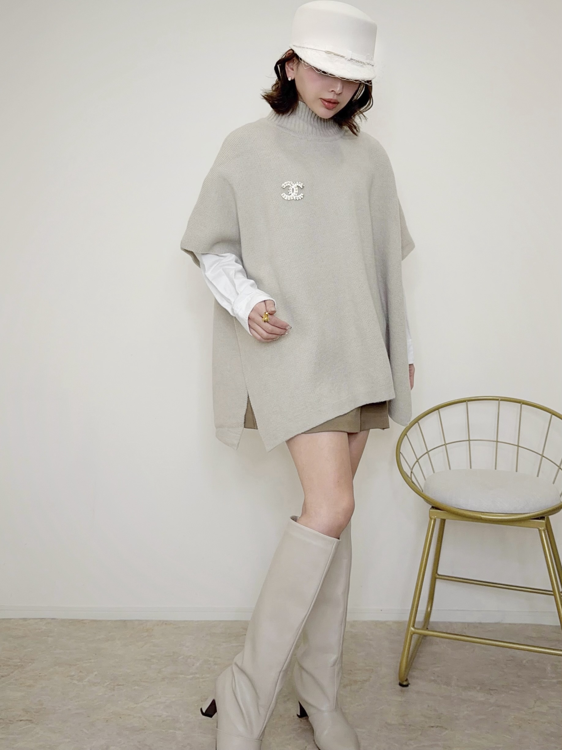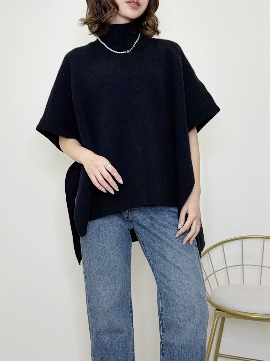 Poncho flare knit(BLK/BEG)