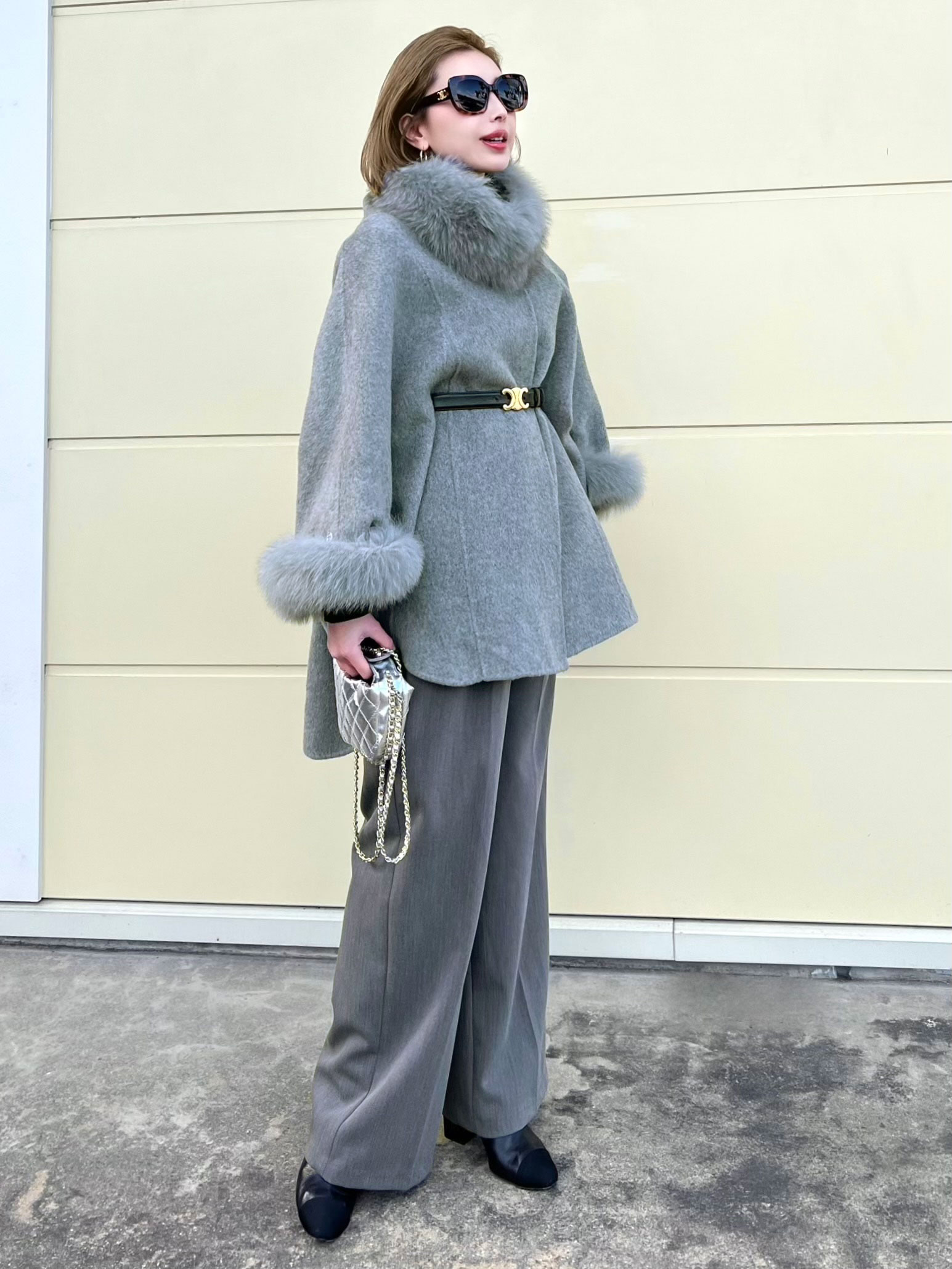 【30%OFF】Fox fur wool cape coat(GRY/BRN/IVO)
