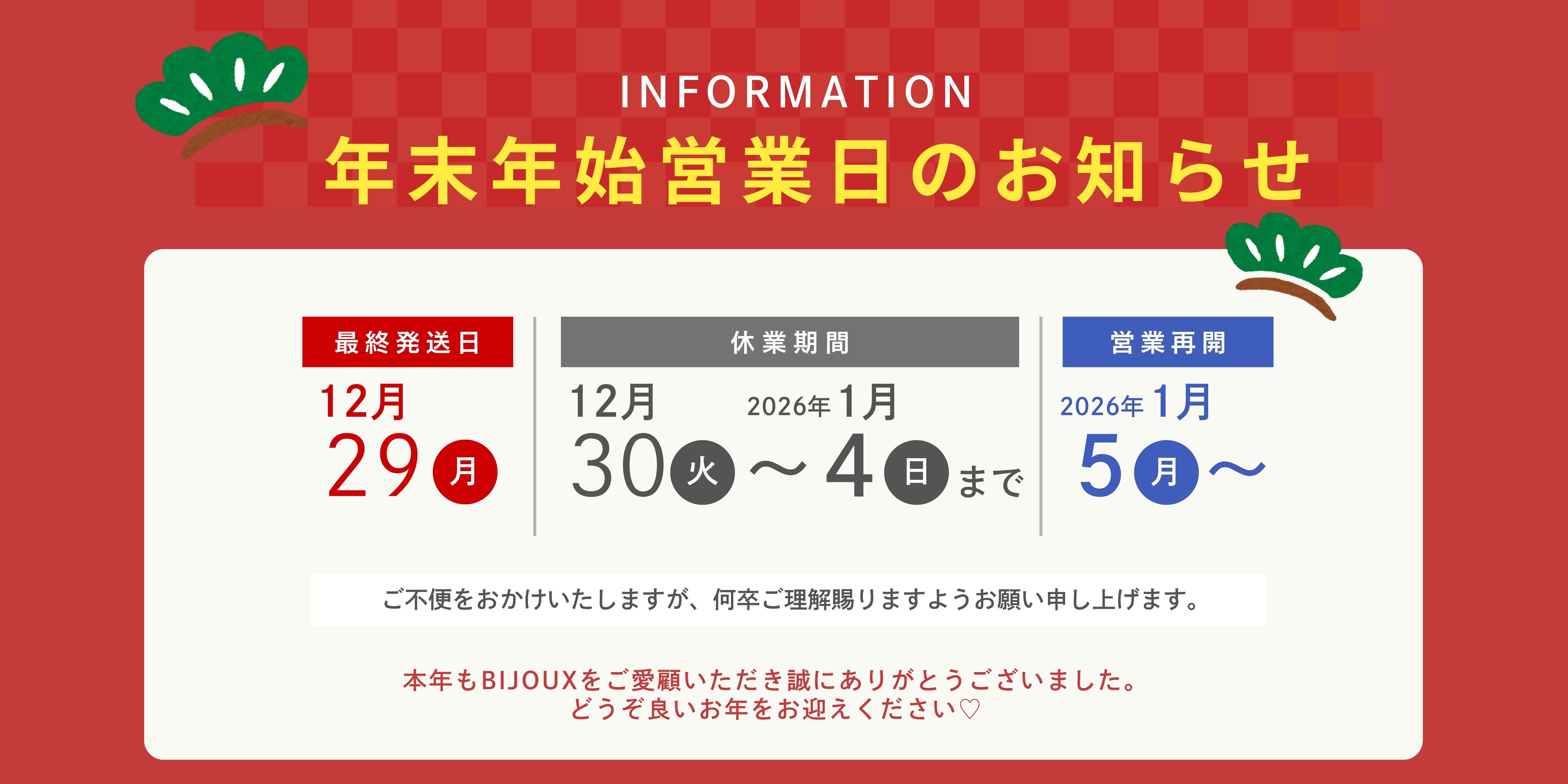 ■年末年始の配送に関して■年内の最終配送は28日となります。年始は1/6より順次配送させて頂きます。