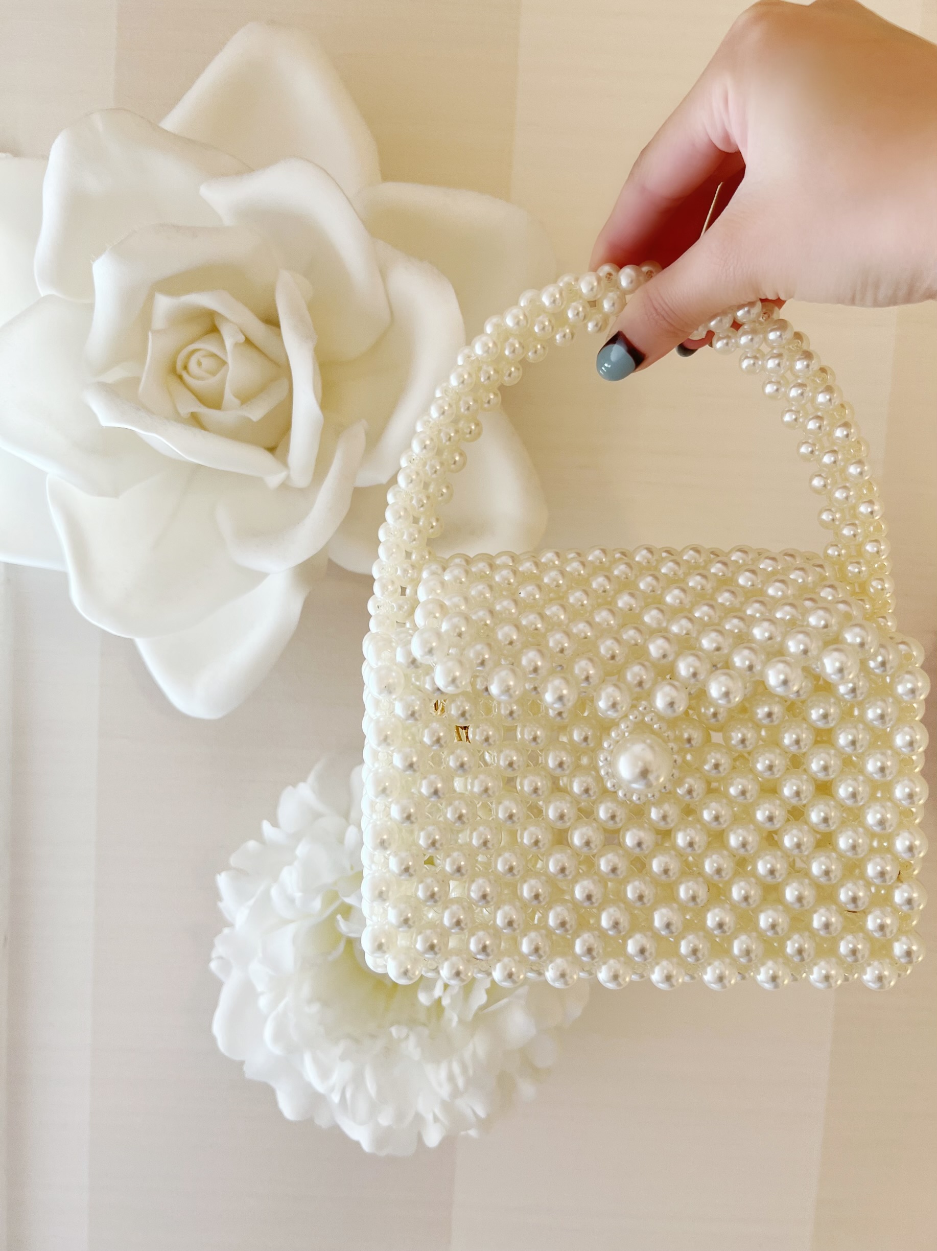 かちっとしつつも、ころんとしたフォルムが可愛いパールバッグ。