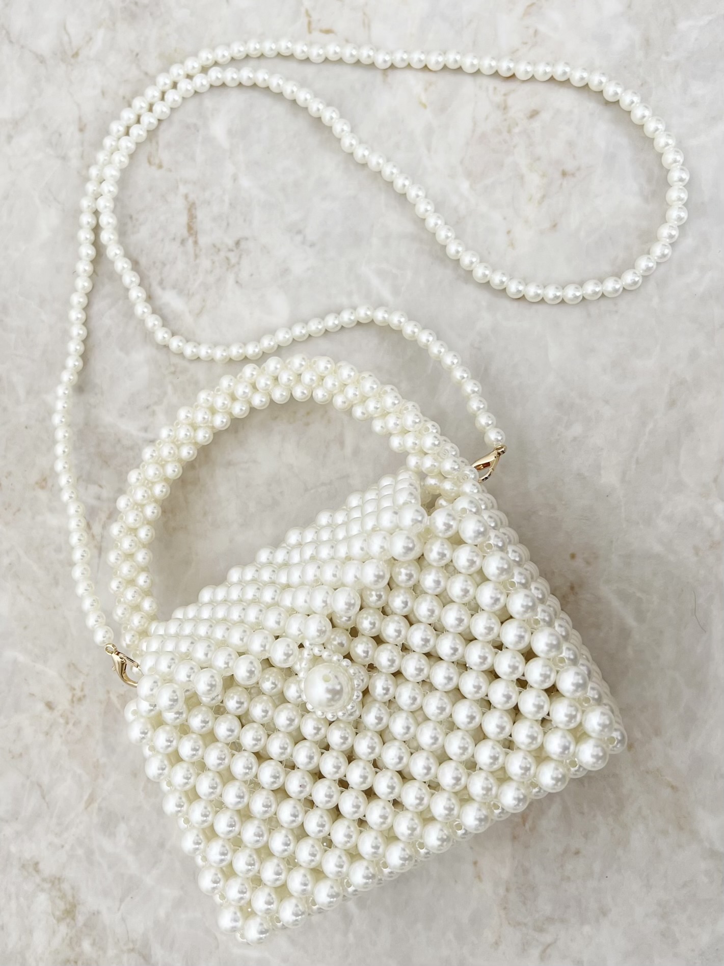 かちっとしつつも、ころんとしたフォルムが可愛いパールバッグ。クロスボディとしても、ハンドバッグとしてもお使い頂ける2way仕様です。見た目以上の収納力で、小さめの財布、鍵、リップ等のアイテムも収納可能。しっかりとしたパールビーズで高級感たっぷりです。ショルダーストラップはクリア糸に通してご装着下さい。【サイズ】(平置き採寸/約)縦11cm(ハンドル含む21cm) 横15cm マチ8cm チェーン全長113cm■代金後払いをご利用のお客様■商品到着後に請求書(払込用紙)が到着します。14日以内にお支払いをお願いします。全国の主要なコンビニで、請求書をレジに持っていくだけでお支払いが可能です。全国の郵便局でも同じ請求書でお支払いできます。※ご請求書が圧着ハガキタイプの場合、郵便局でのお支払いはできません。※弊社の銀行口座宛にお振込頂くものでは御座いません。ご注意下さい。