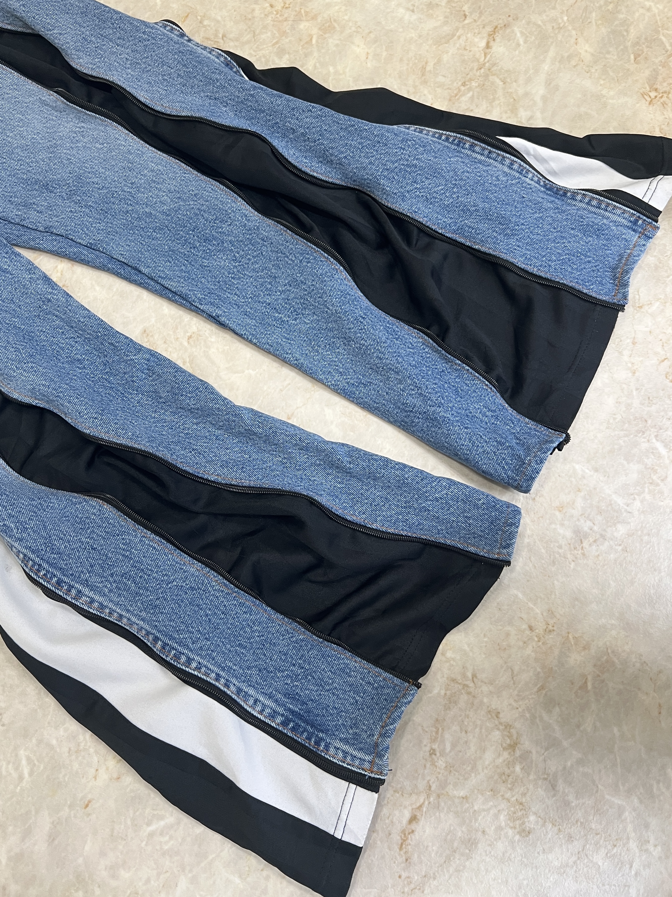 Wranglerのデニムをadidasのジャージを組合せたリメイクデニム。