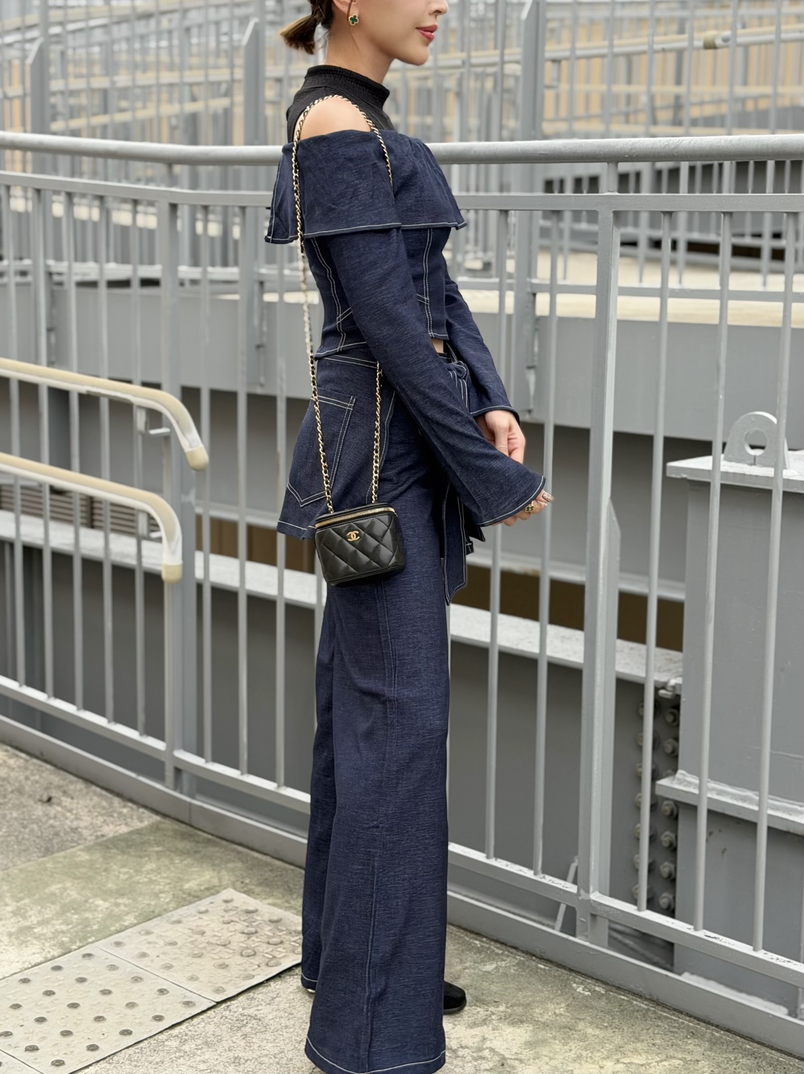 個性的なデザインが目を引くこと間違いなしのデニムセットアップ。